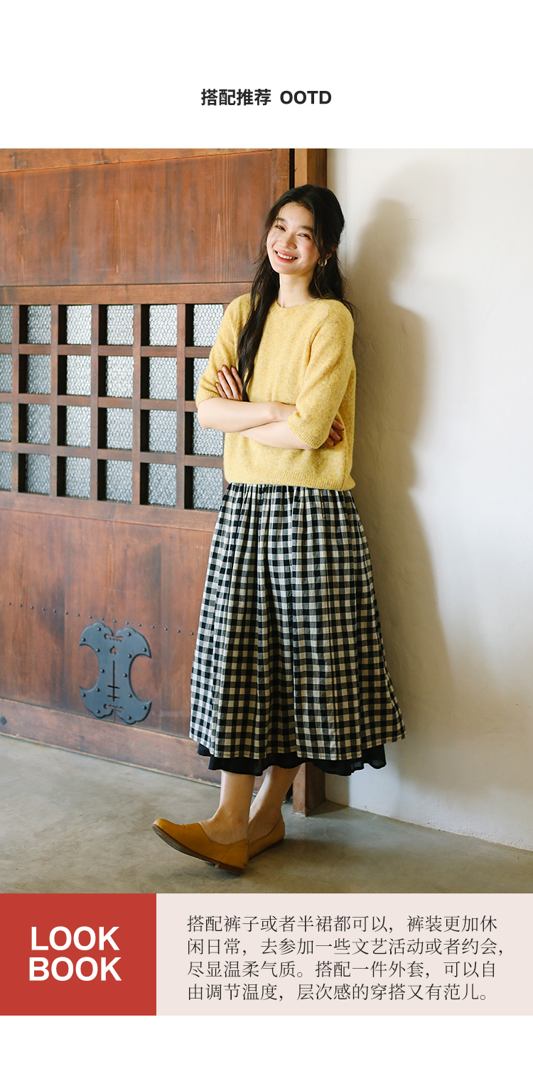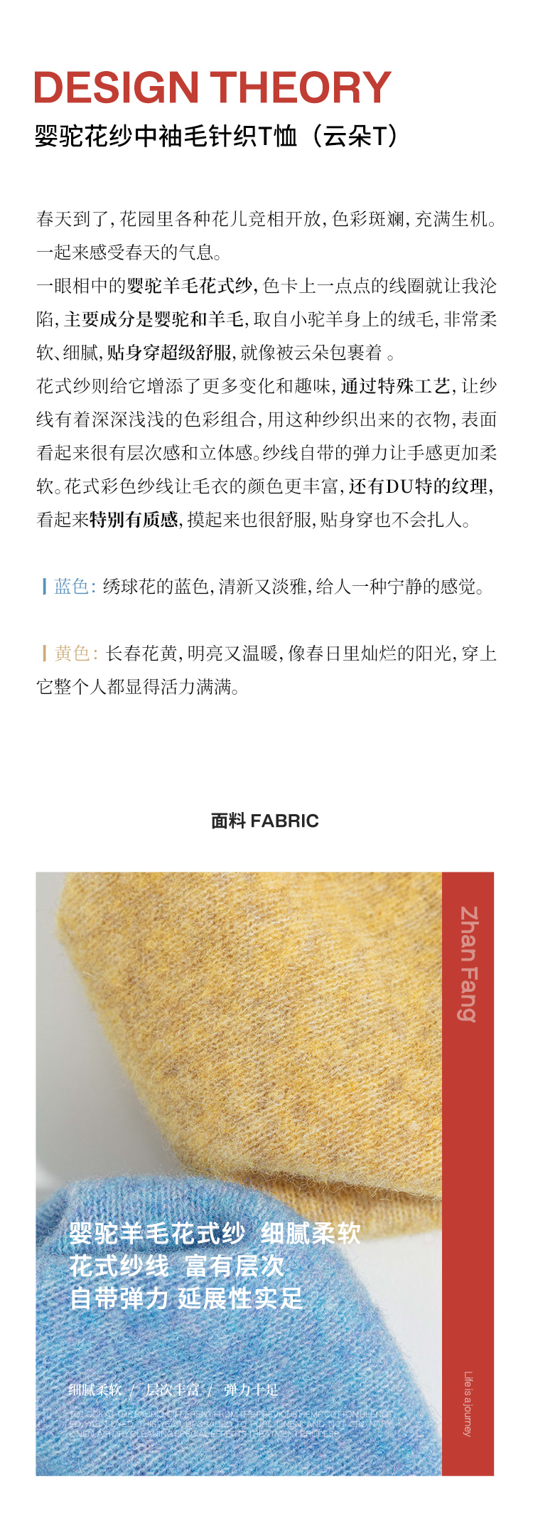 绽放077朵/云朵T恤春季羊毛花式弹力纱圆领马鞍肩短袖套头毛衣