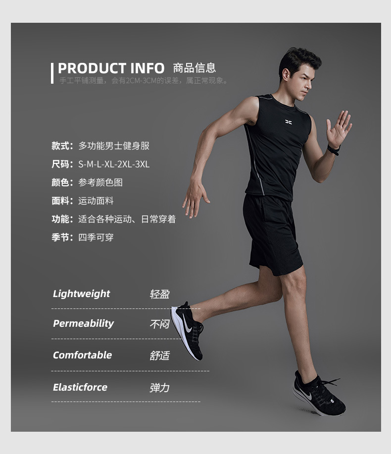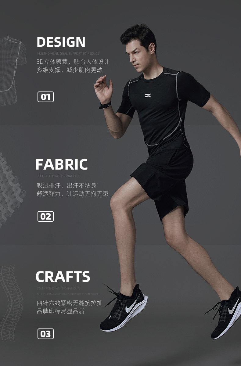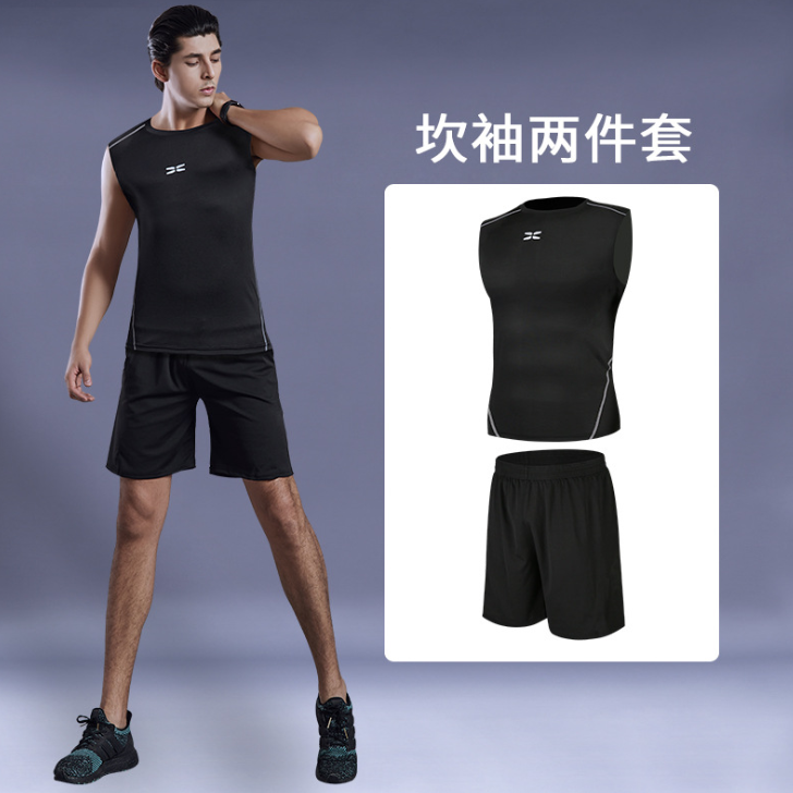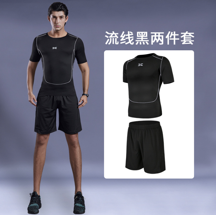 【强度保护 无惧摩擦】全新升级黑科技男士夏季运动健身套装 高弹舒适、透气干爽 速干男士运动跑步健身服