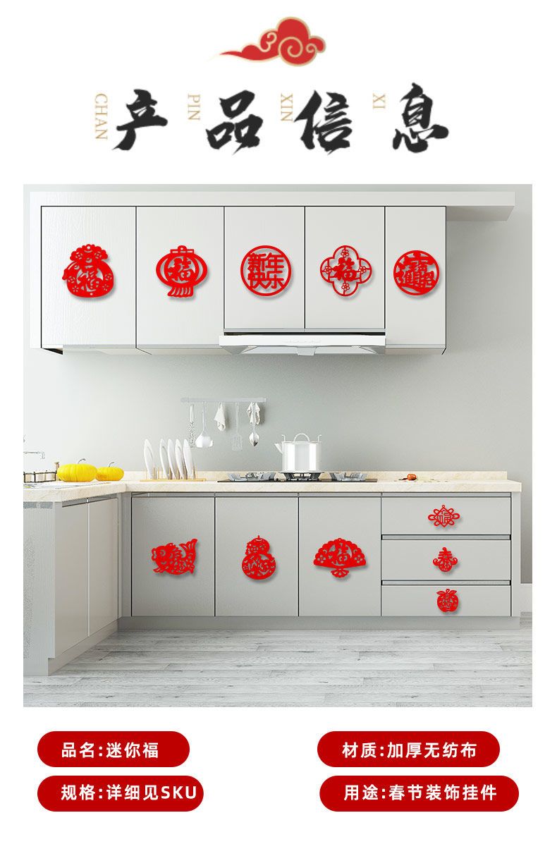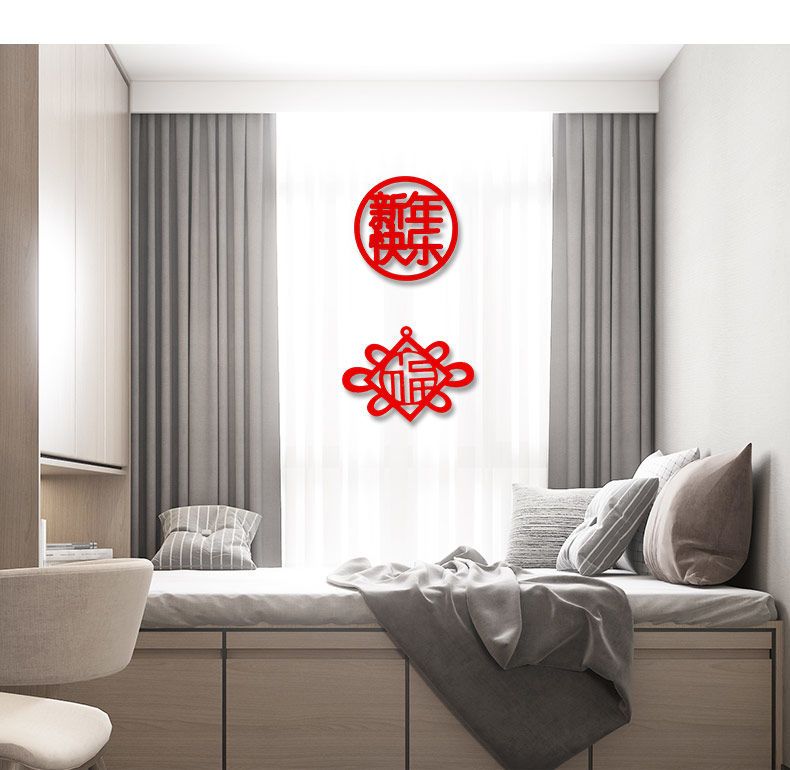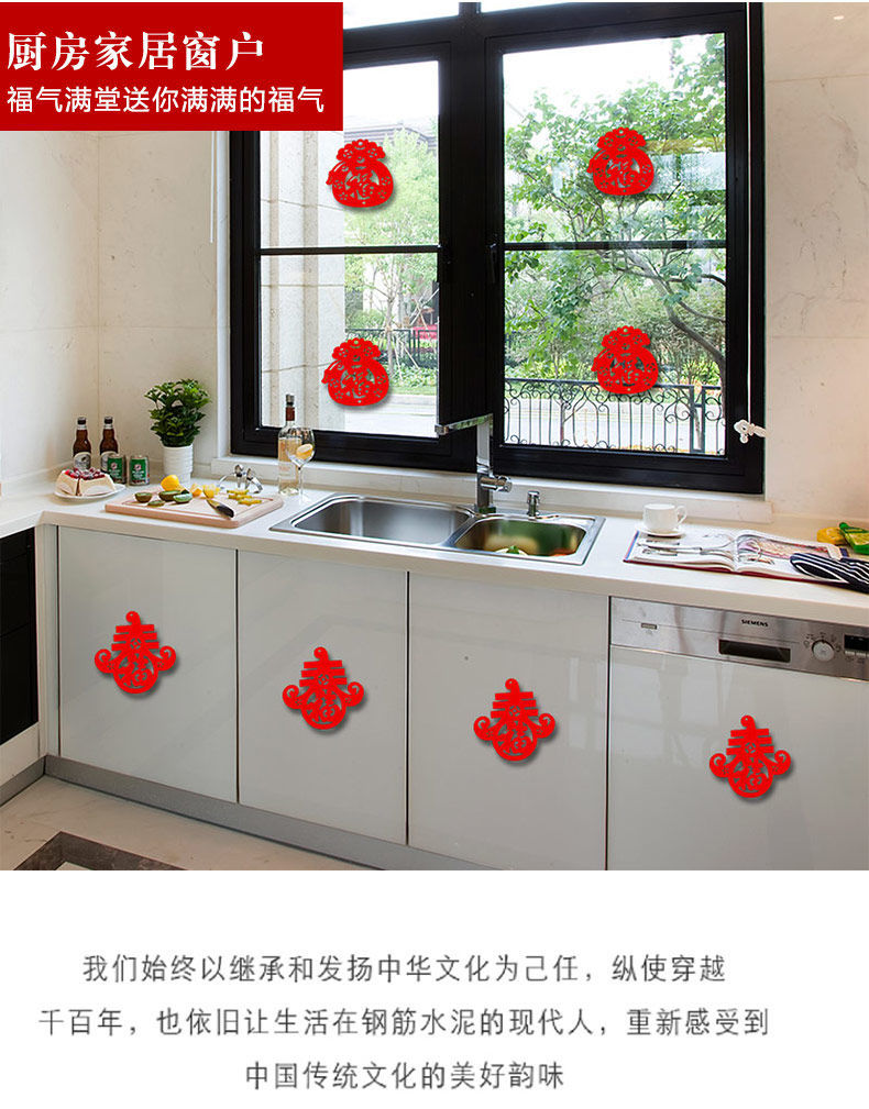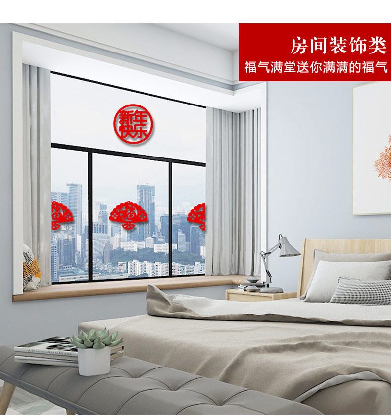 2023兔年福字门贴任意贴橱窗玻璃贴剪纸客厅春节装饰新年场景布置
