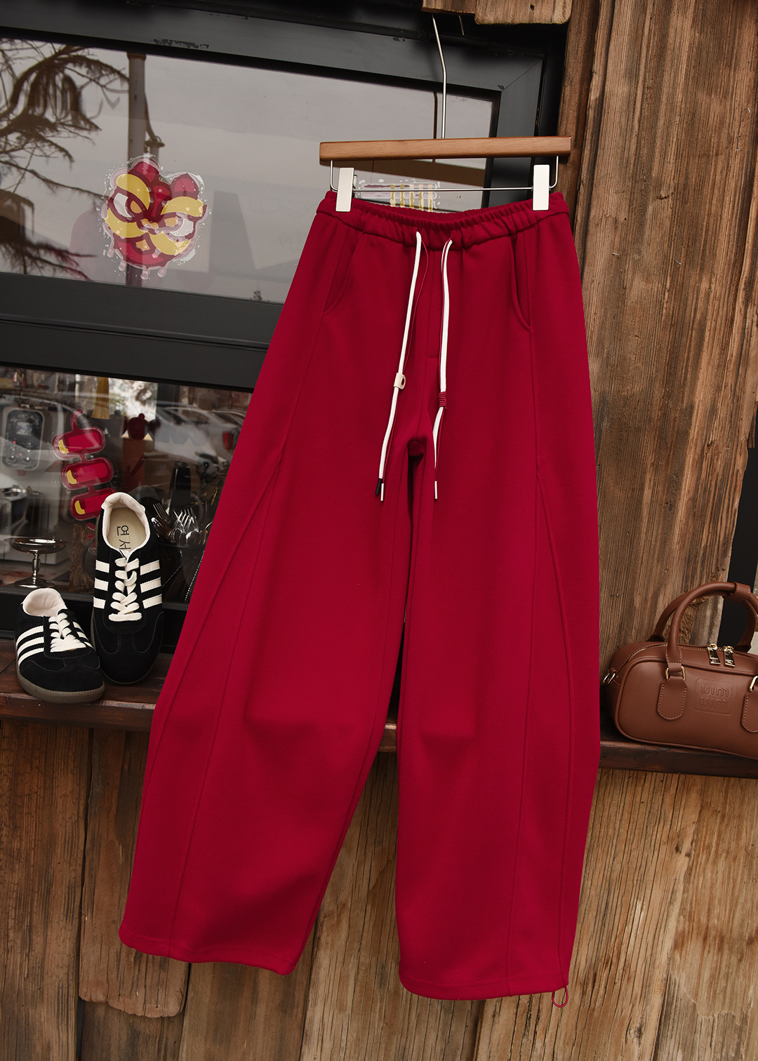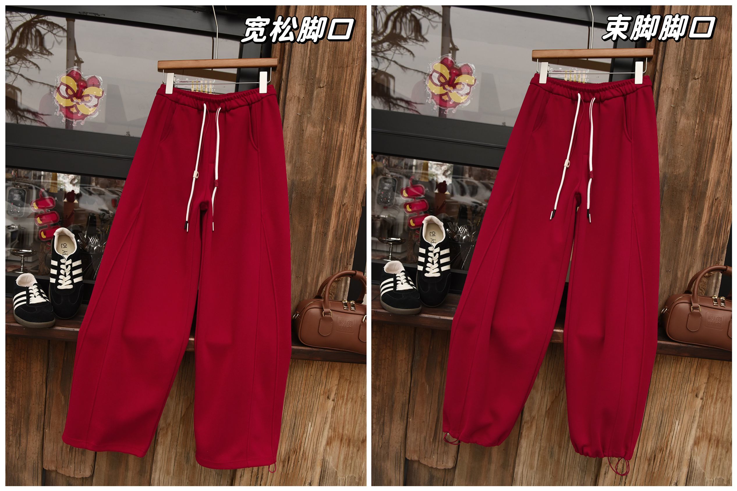 L:松紧腰,臀围112cm,裤长101cm
