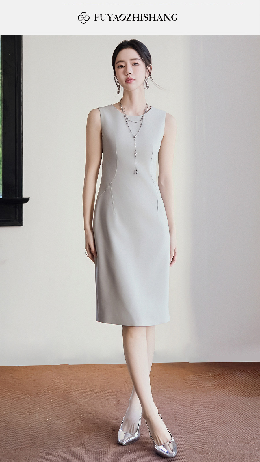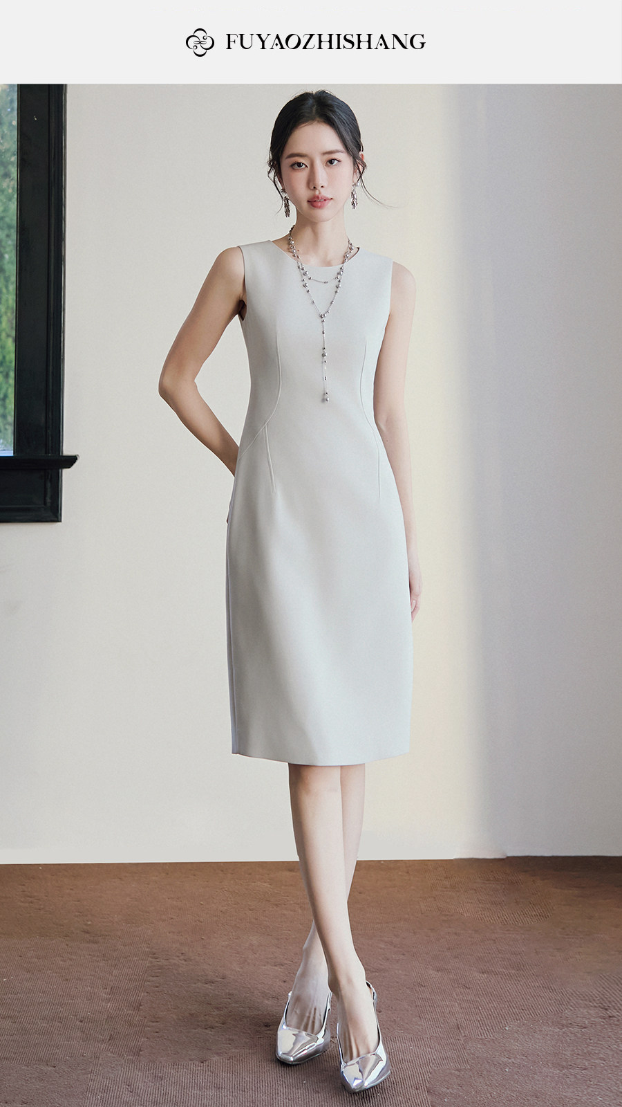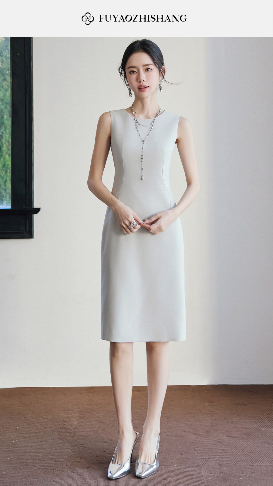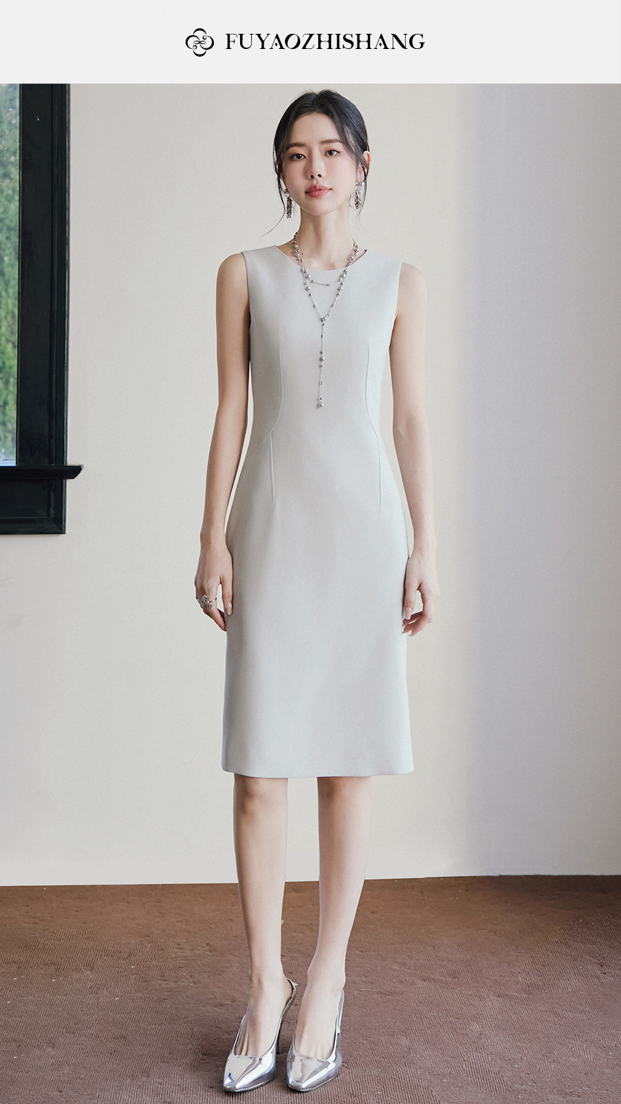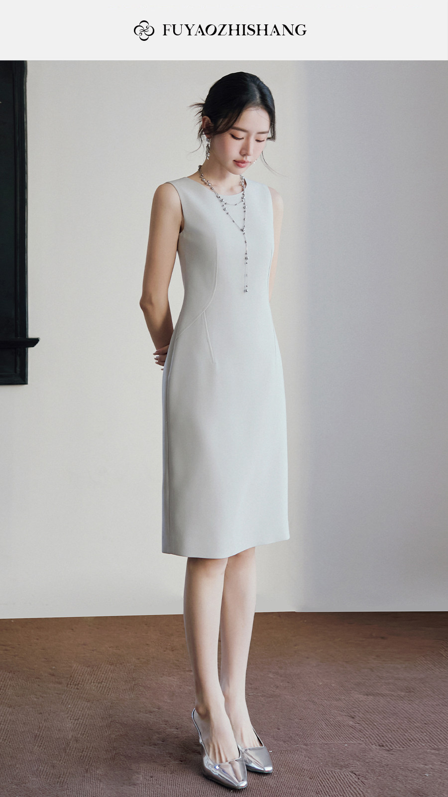 FUYAO扶摇直上 漫游松弛无袖连衣裙女通勤背心裙轻奢修身型旗袍裙