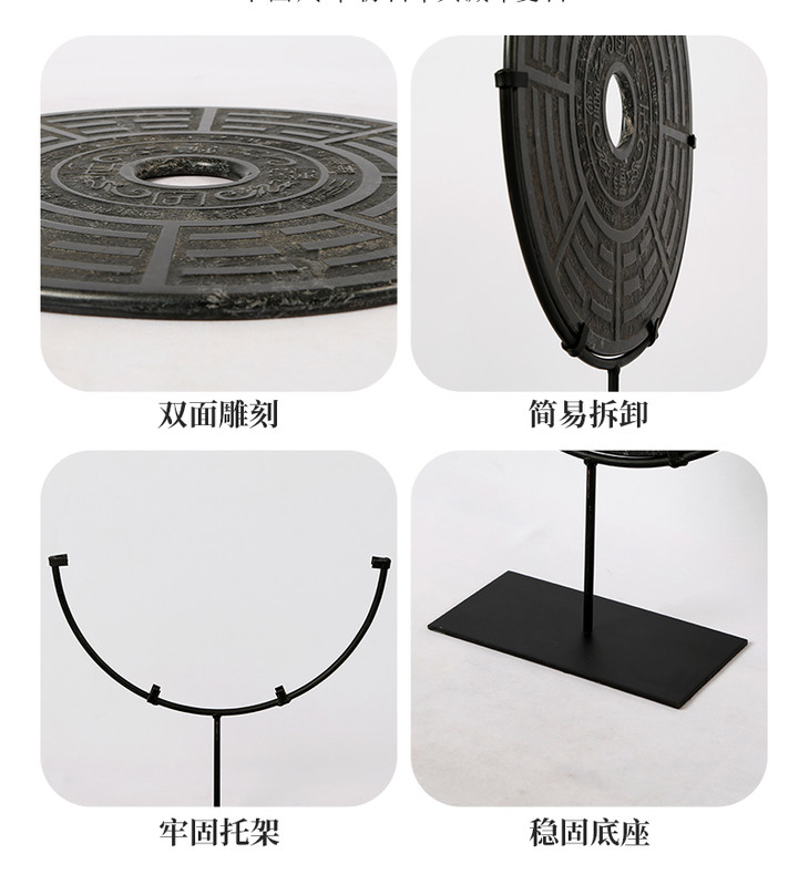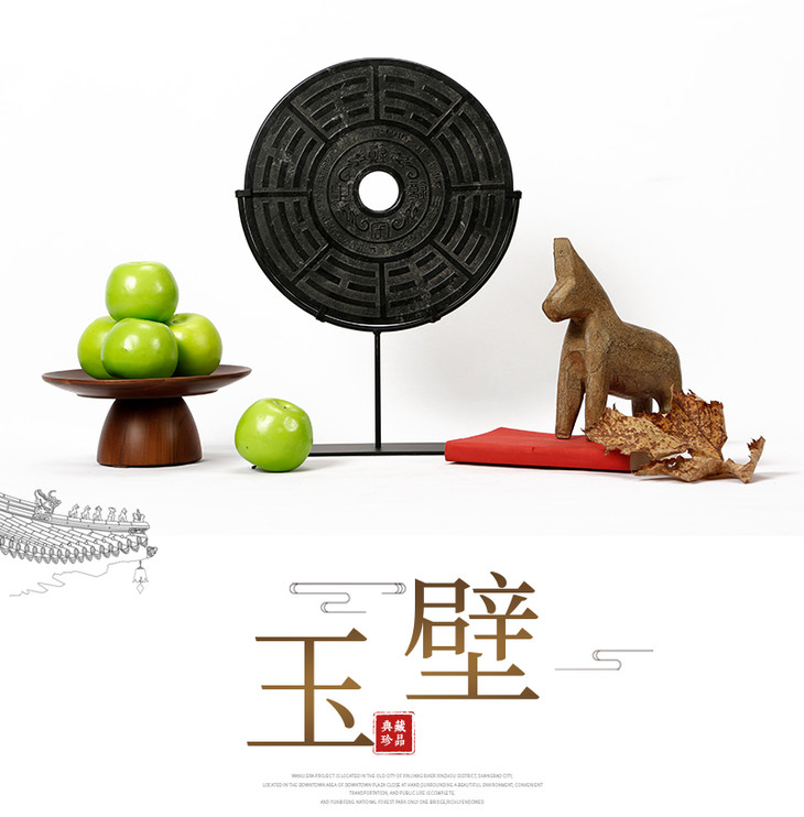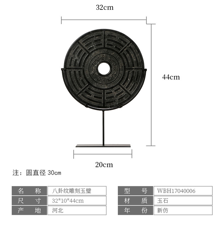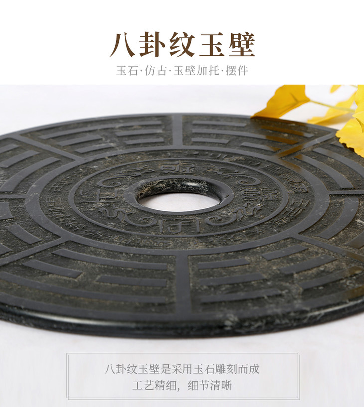 八卦玉片 复古摆件 岫玉神兽 Disk with stand