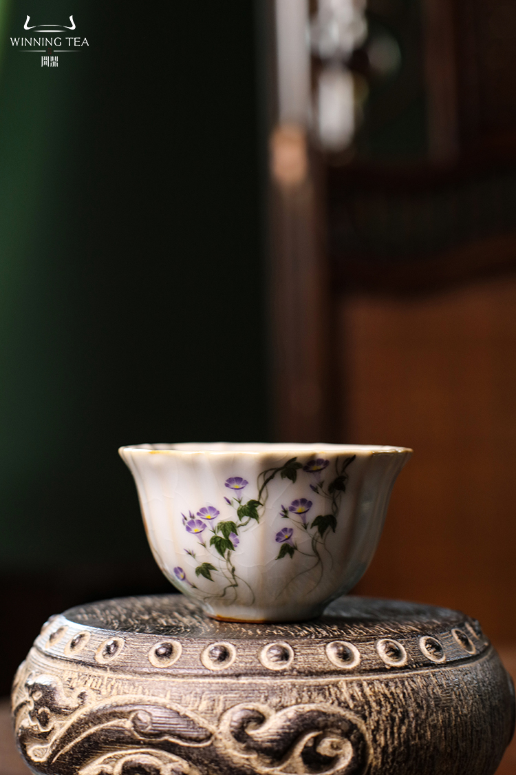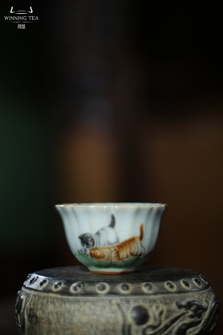 问鼎汝瓷月白老款沐菊杯(千伶百俐)(猫咪)(缺货)