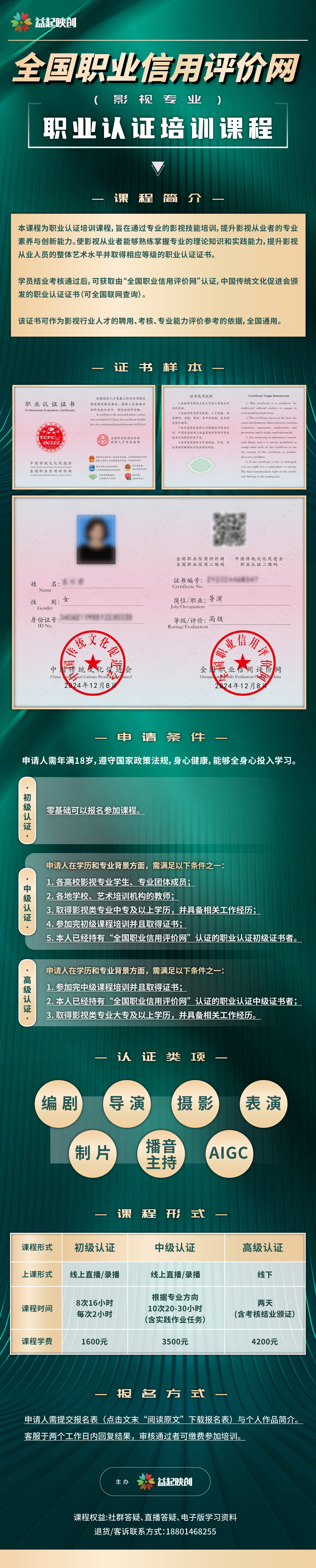 全国职业信用评级网(影视专业)职业认证课程 商品缩略图0