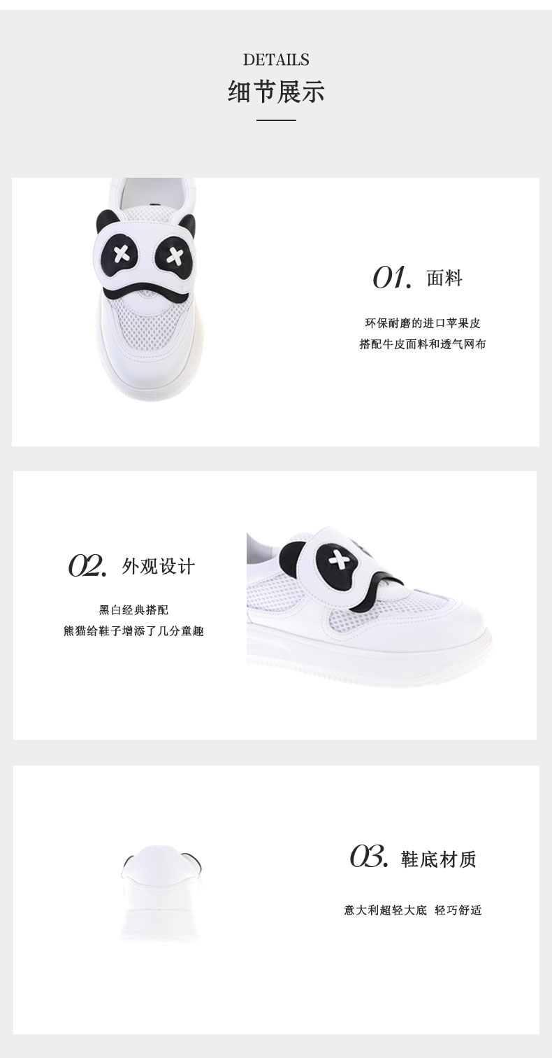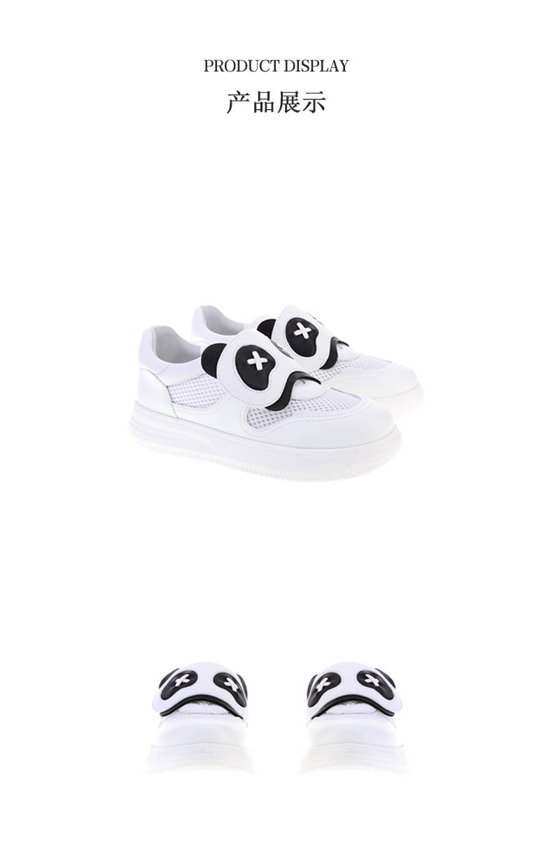 sheme环保耐磨皮料搭配透气网布萌萌哒熊猫设计男女童鞋可定制