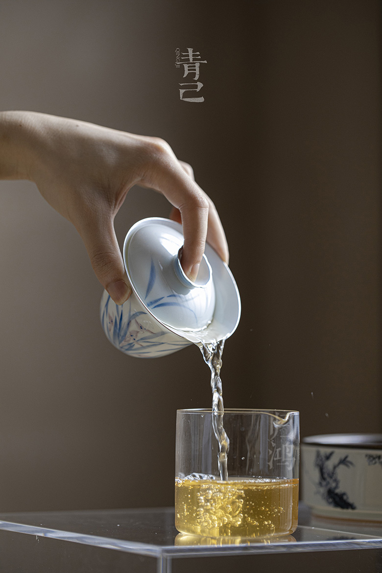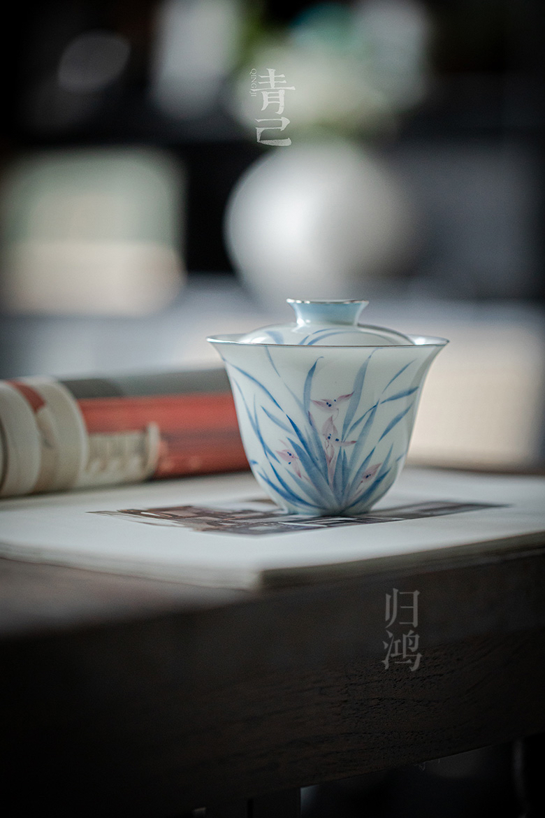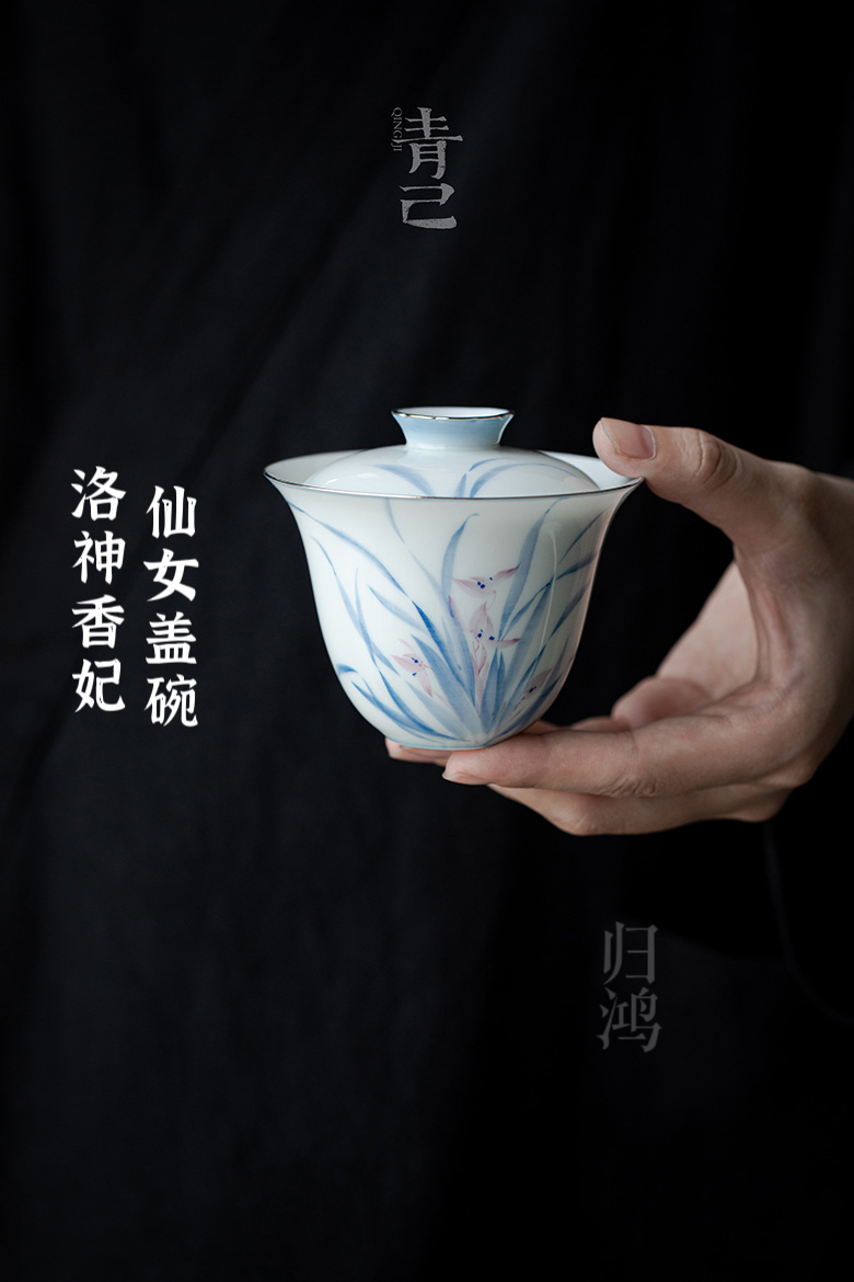永利汇青己手绘粉彩蝴蝶瓷盖碗盖碗家用功夫茶茶具盖碗中式盖碗茶具套装