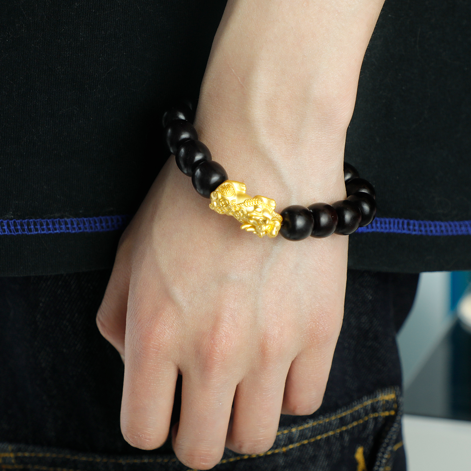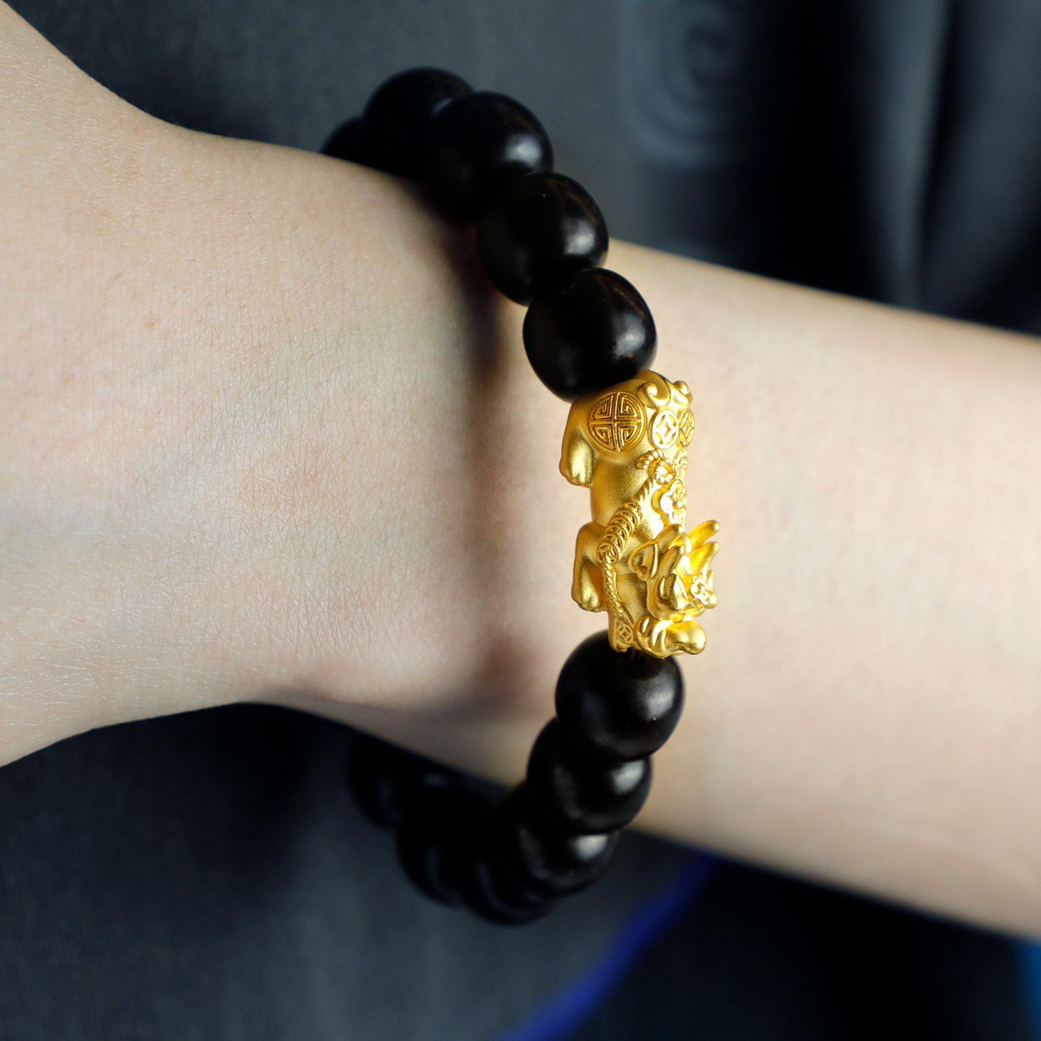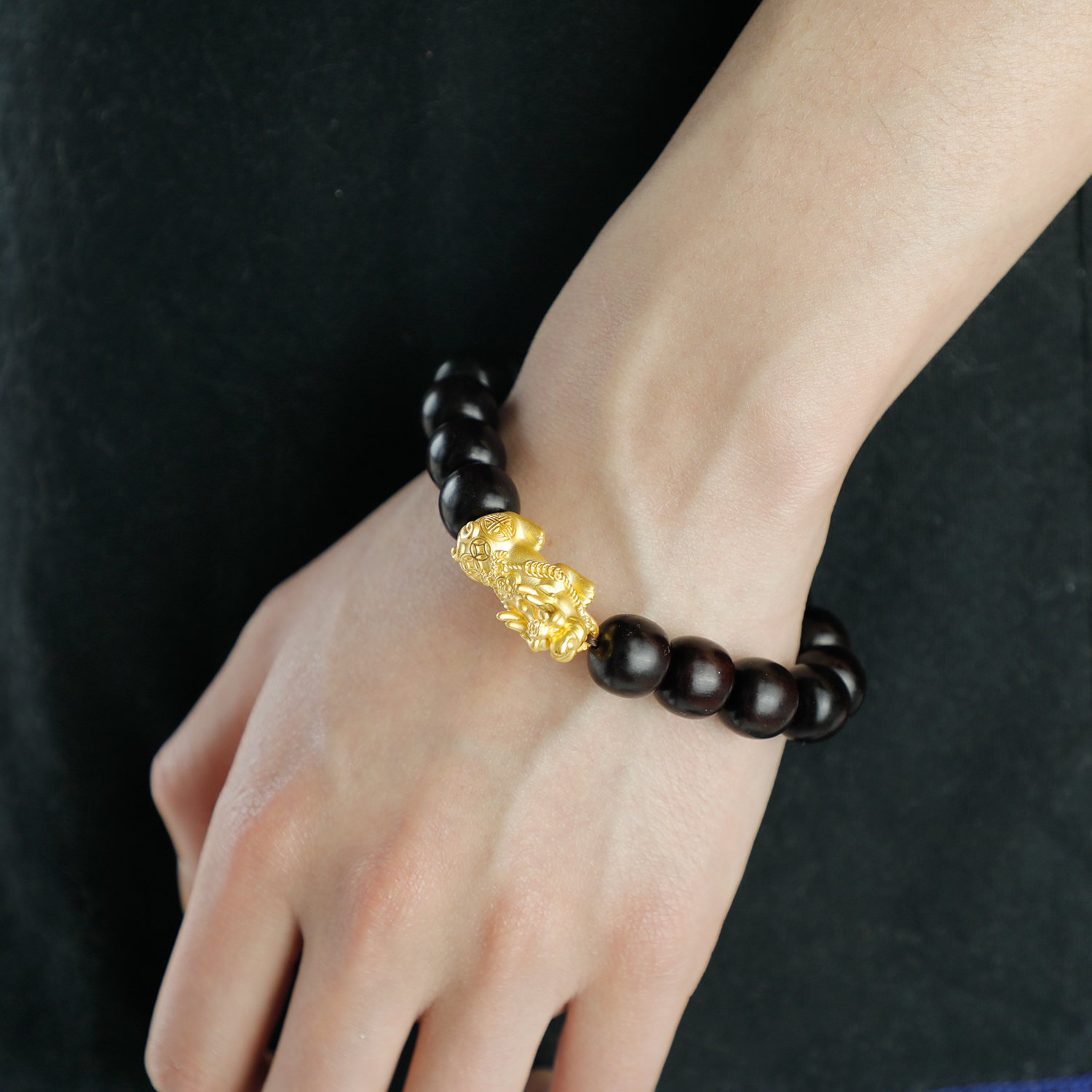 手串是由纯正的印度小叶紫檀+纯金2.7克左右貔貅组成!