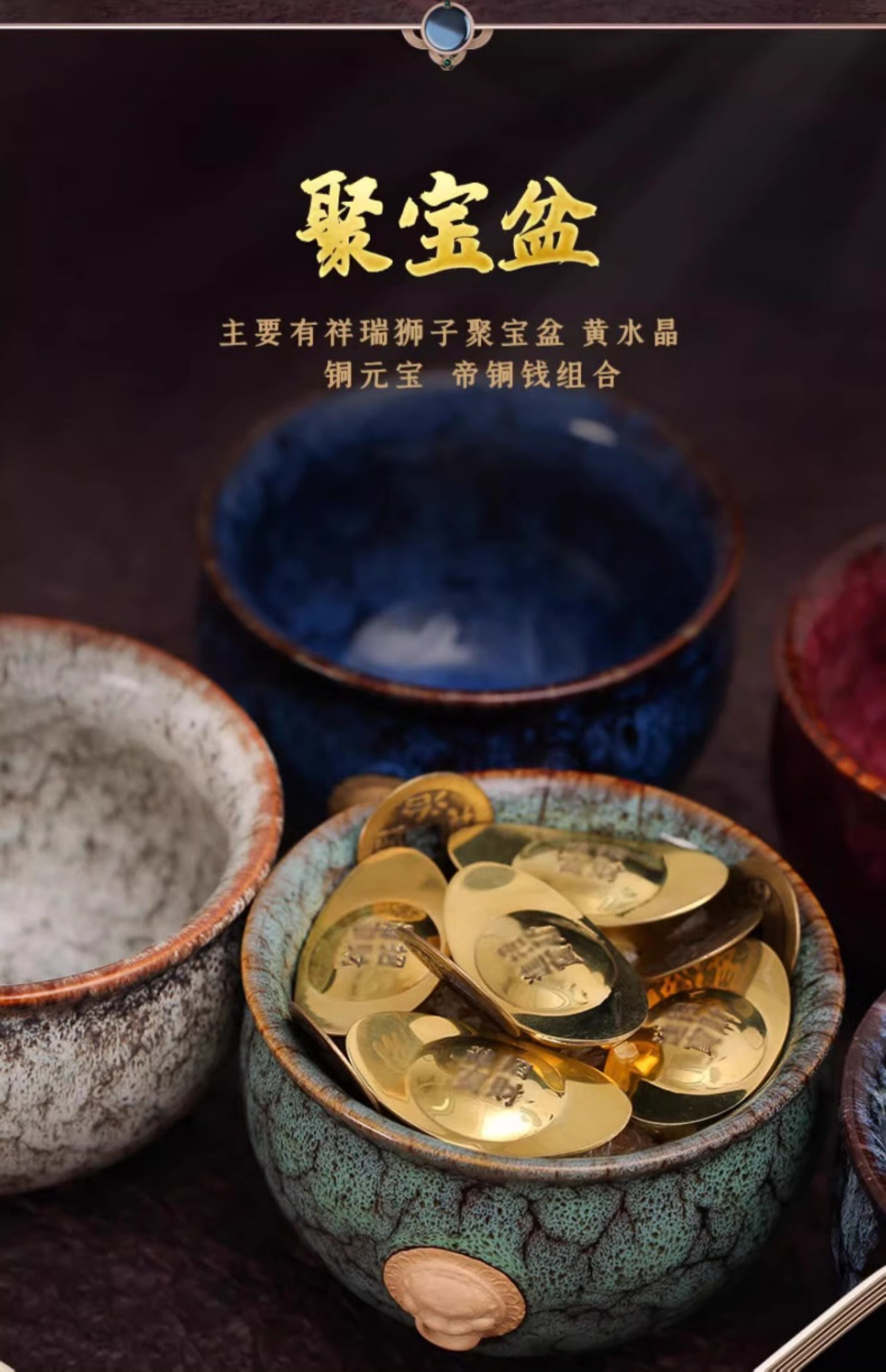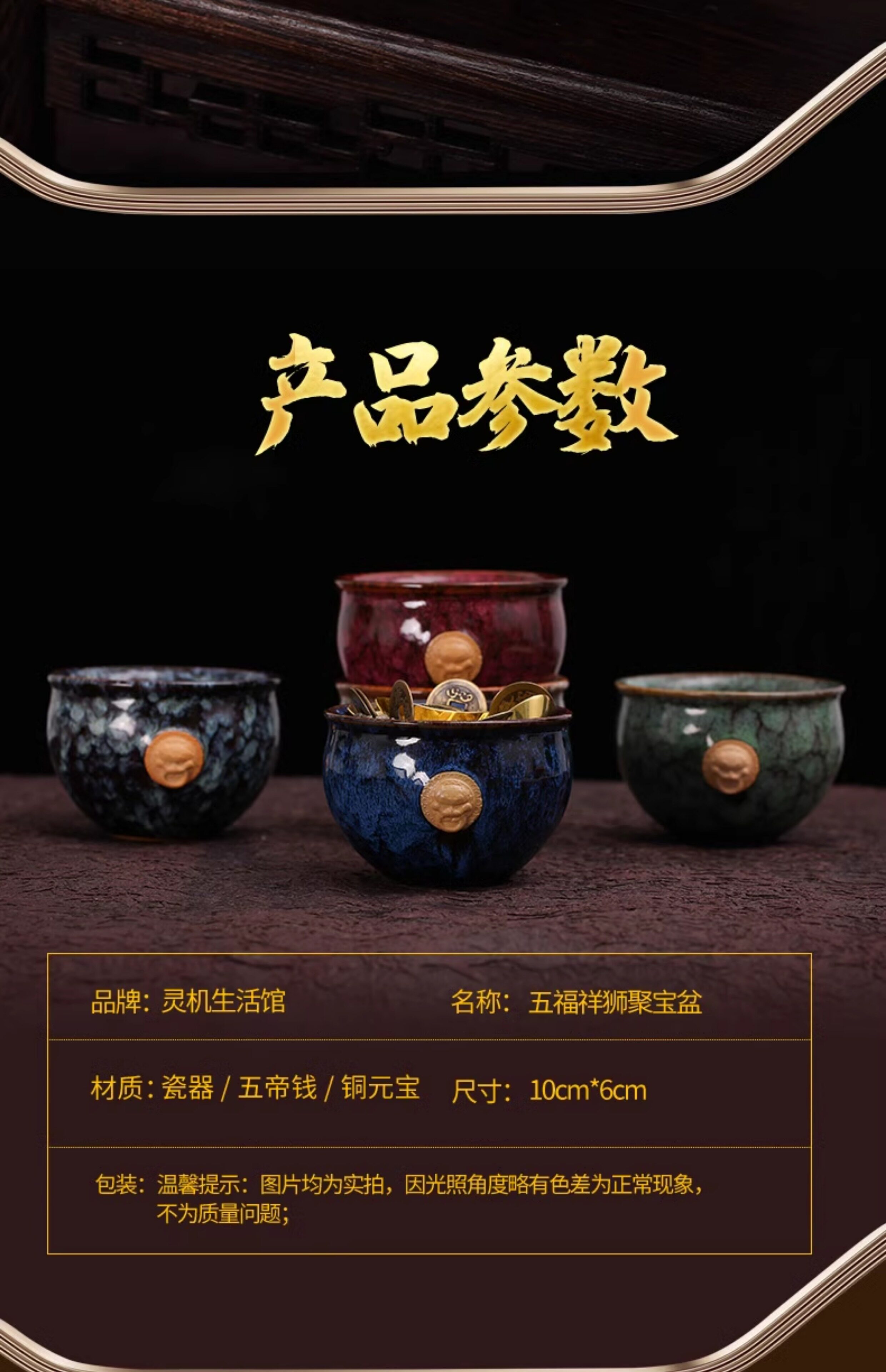 【祈愿吉品】聚宝盆摆件狮子黄铜元宝客厅办公室店铺开业送礼