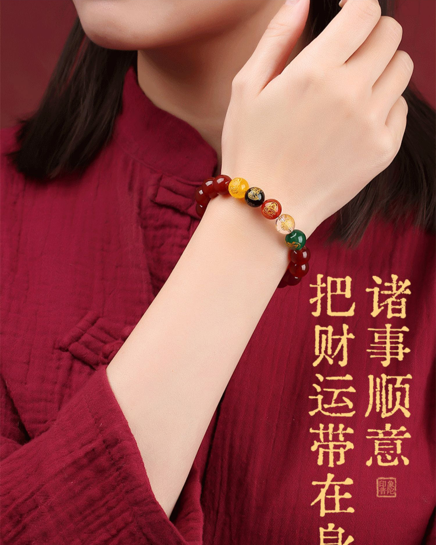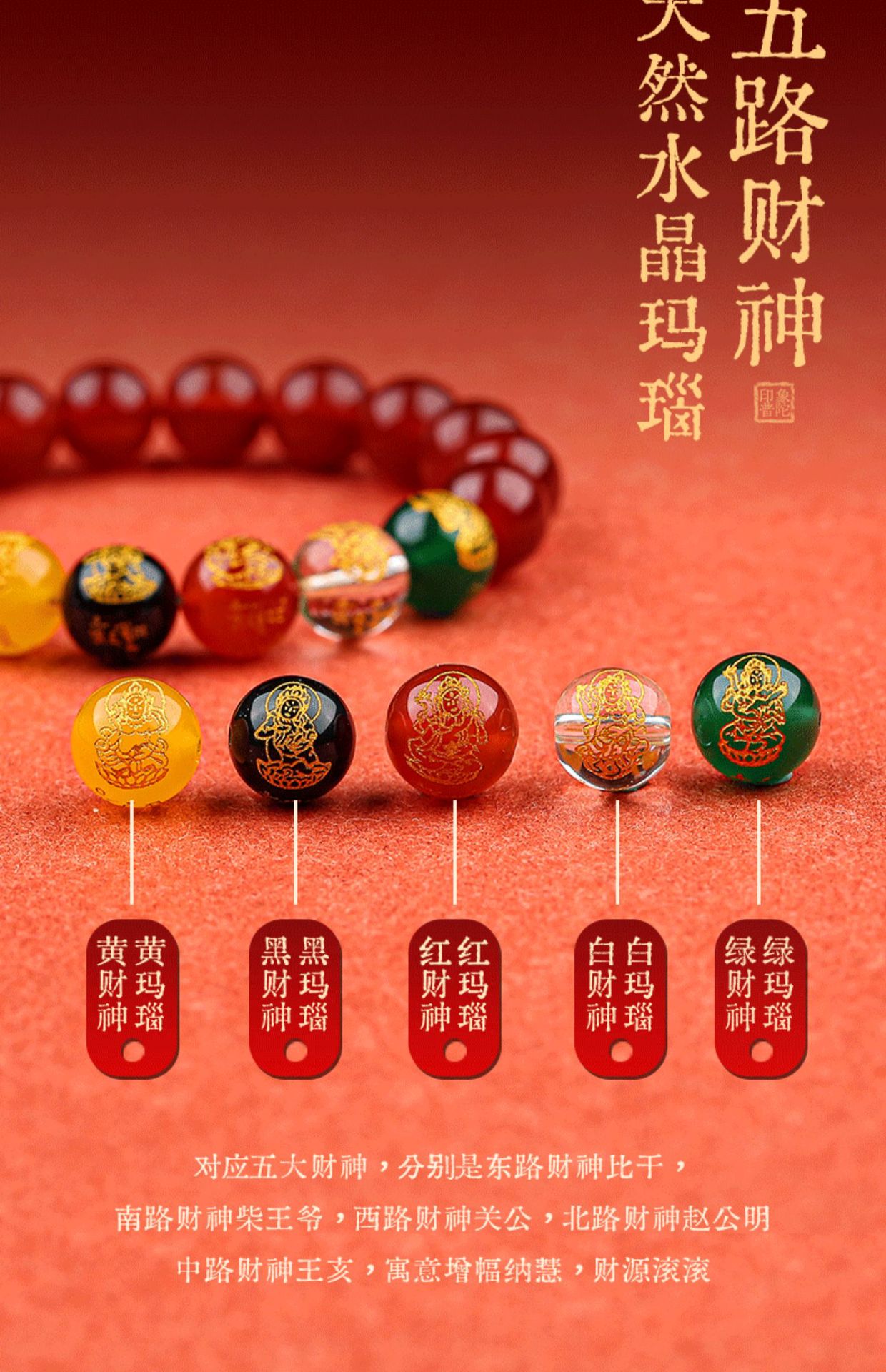 【蓝禧老师推荐】玛瑙五路财神手串