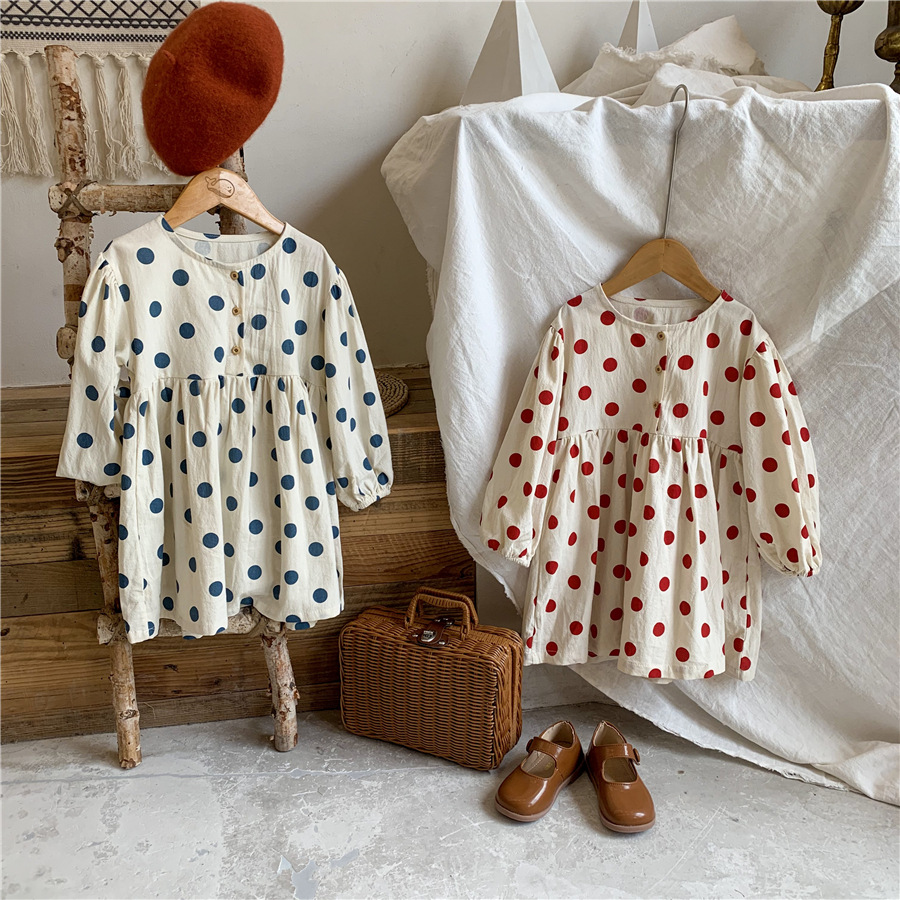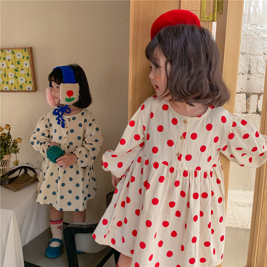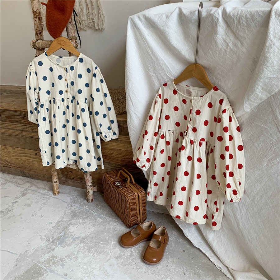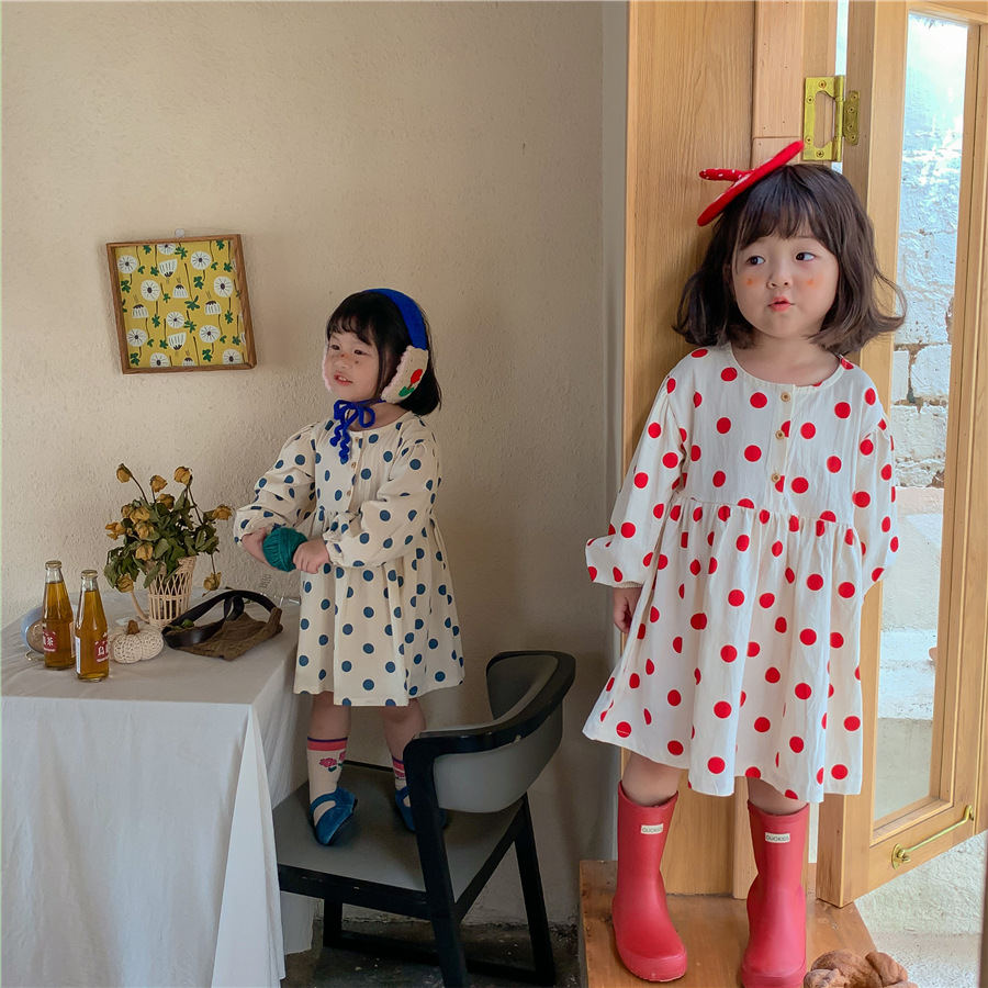 【母婴】新款连衣裙女童时尚韩版波点裙长袖可爱圆点裙子