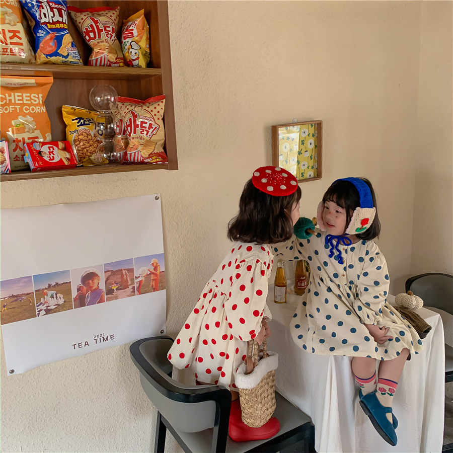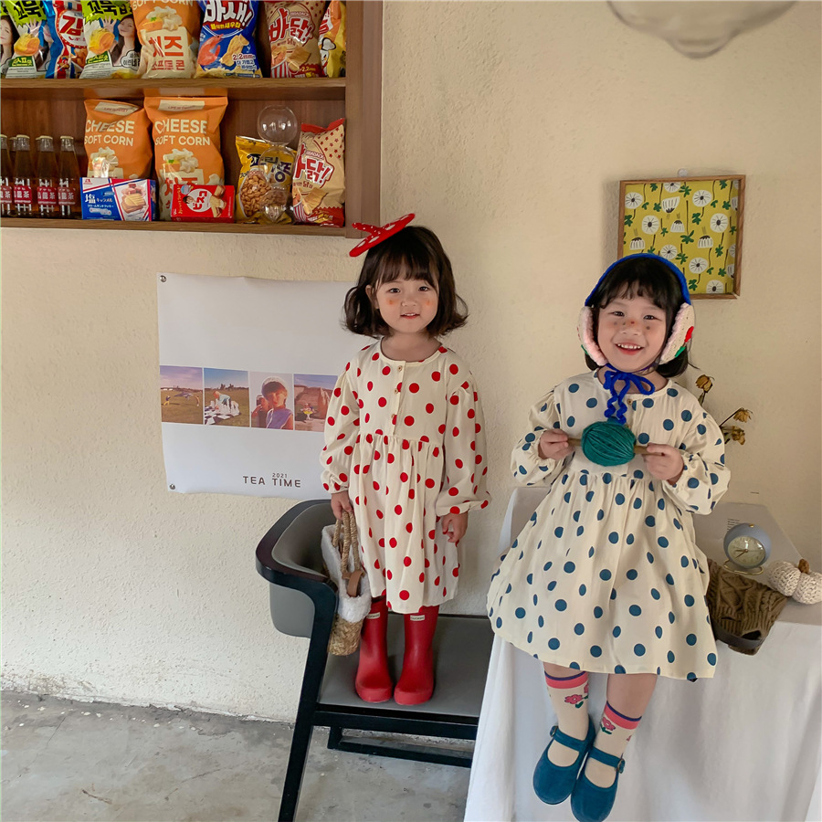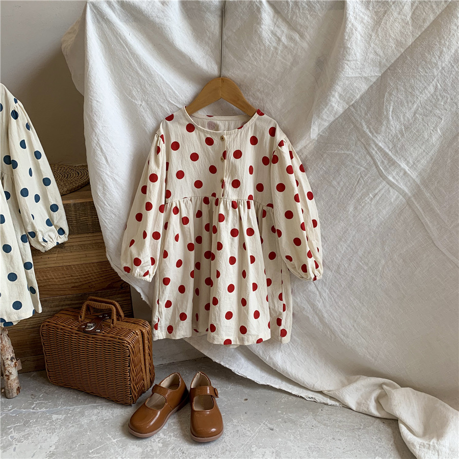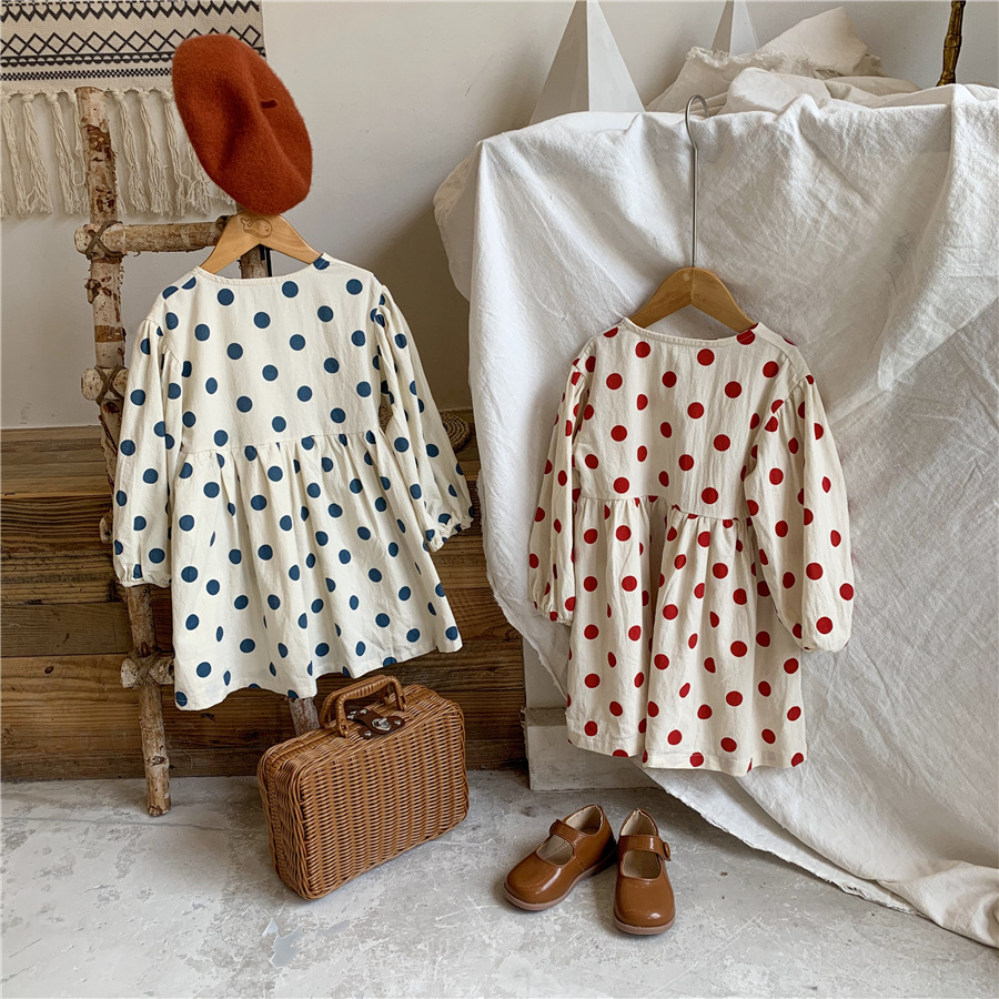 【母婴】新款连衣裙女童时尚韩版波点裙长袖可爱圆点裙子