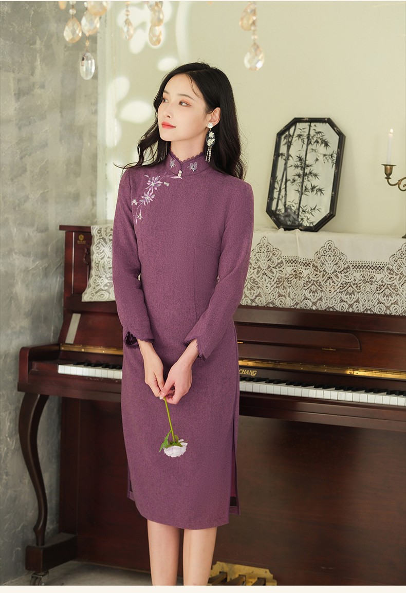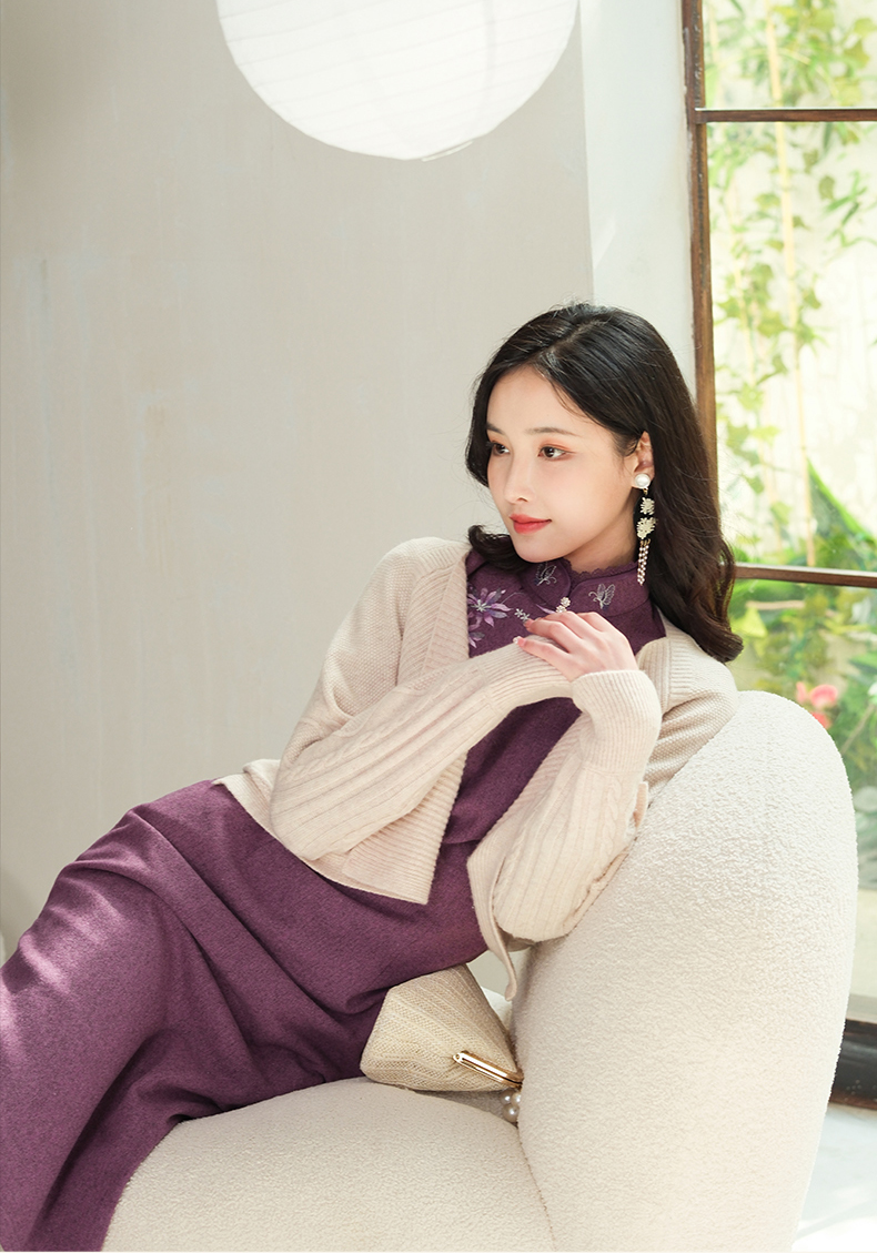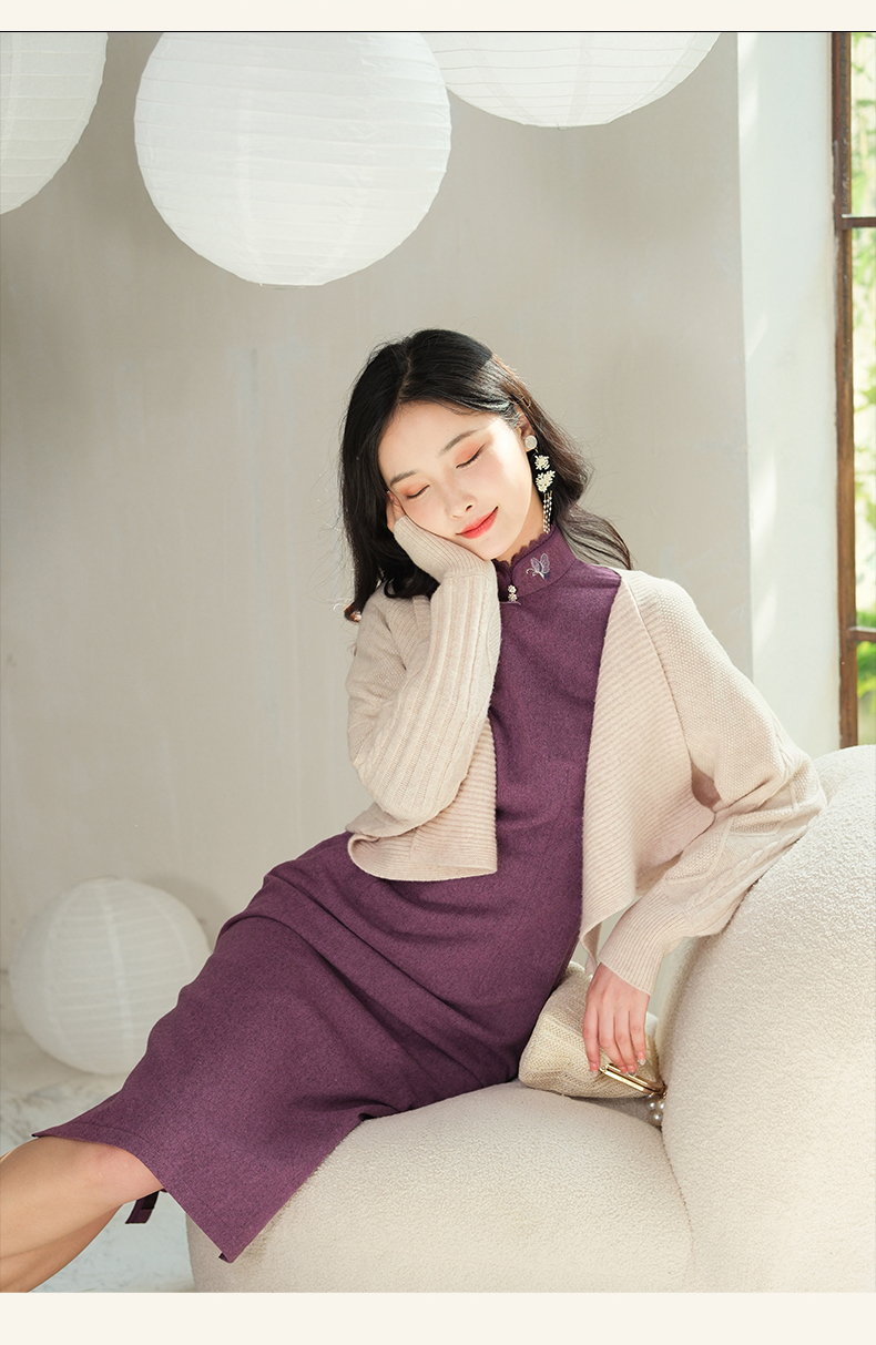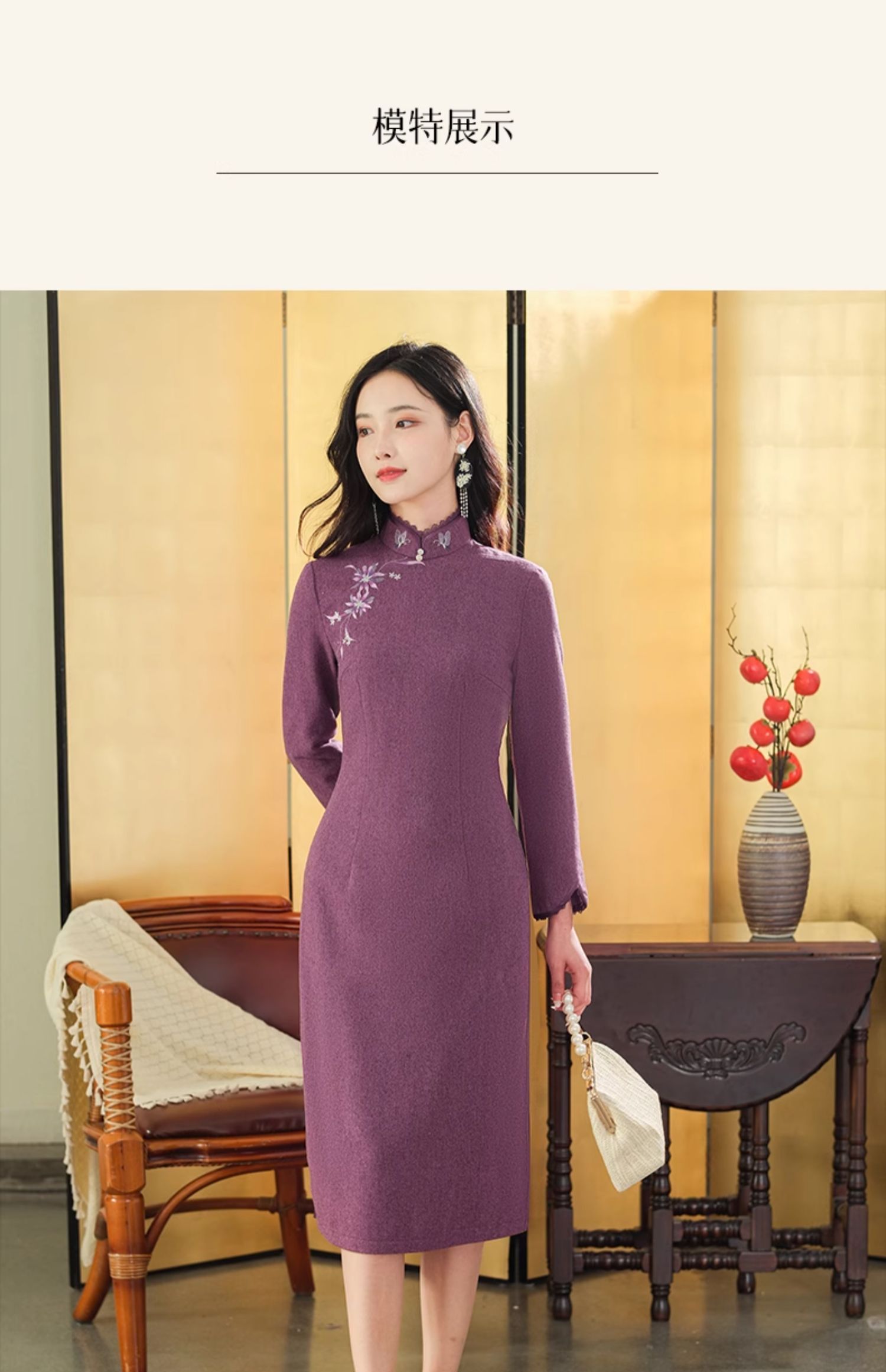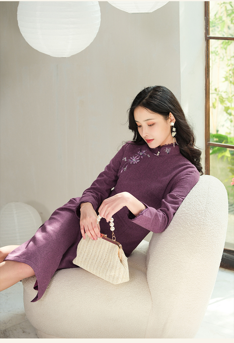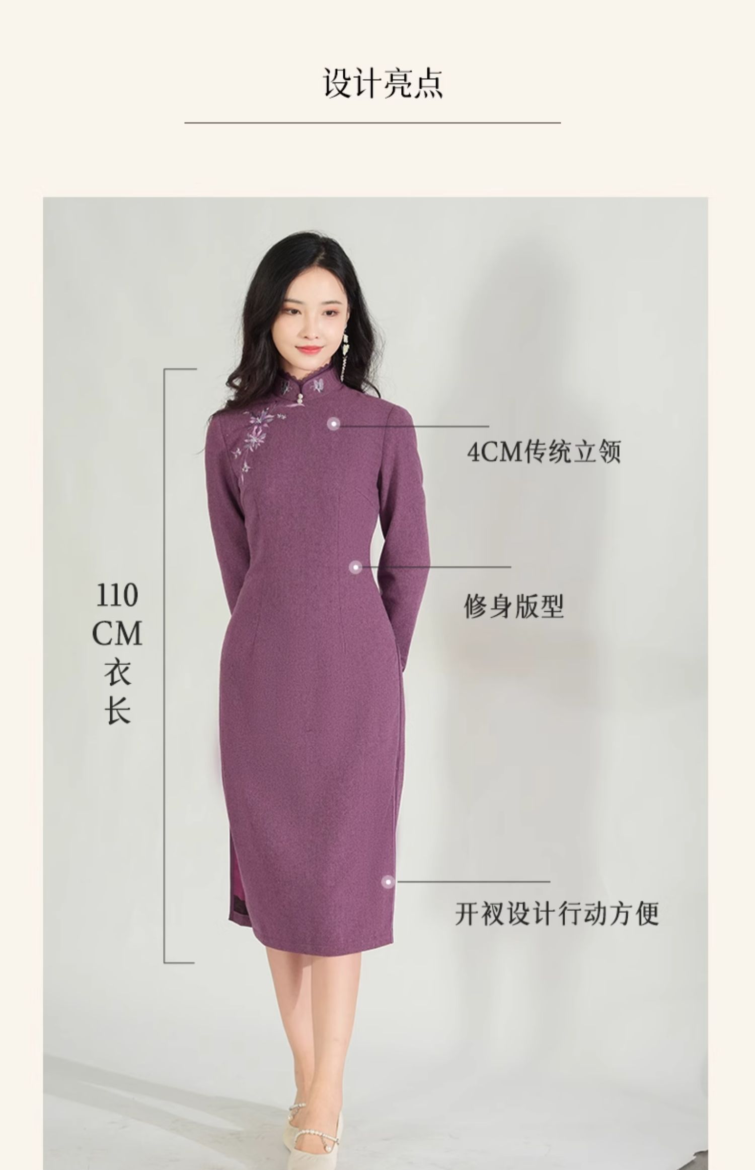 上海逸红颜潇湘2025年春装新品毛呢改良旗袍连衣裙女气质款