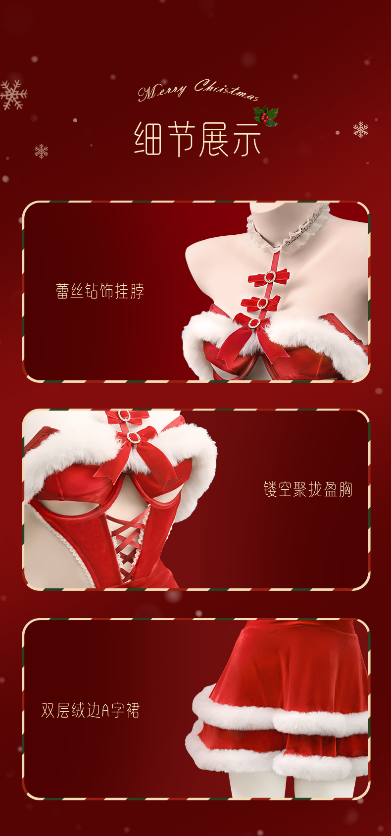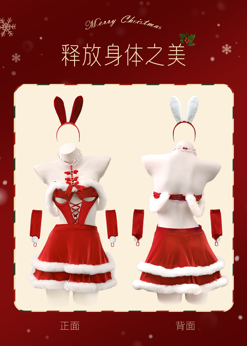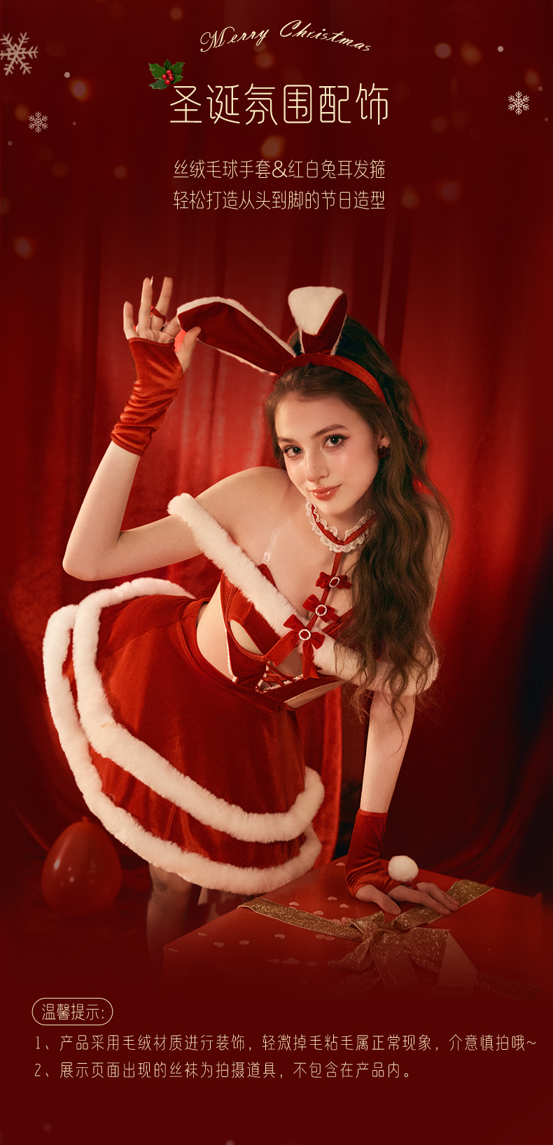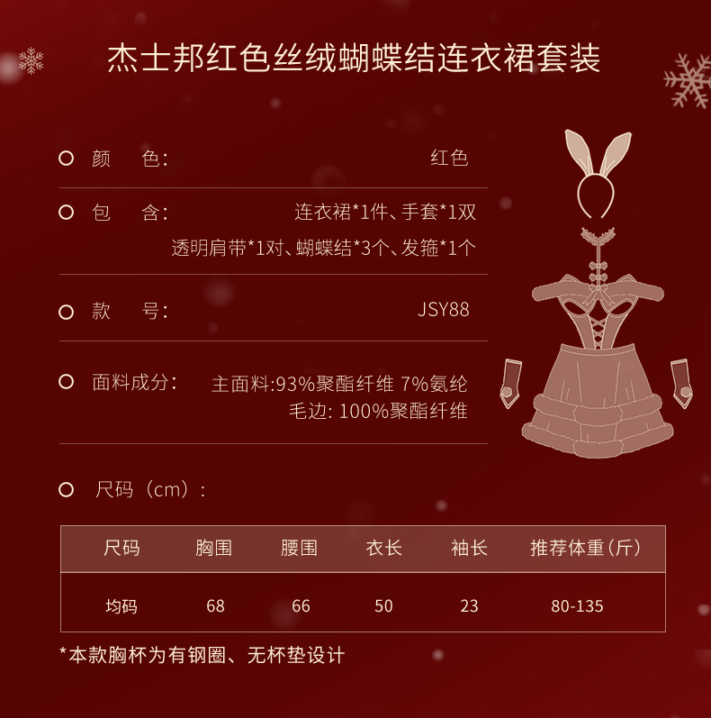 杰士邦红色丝绒蝴蝶结连衣裙套装