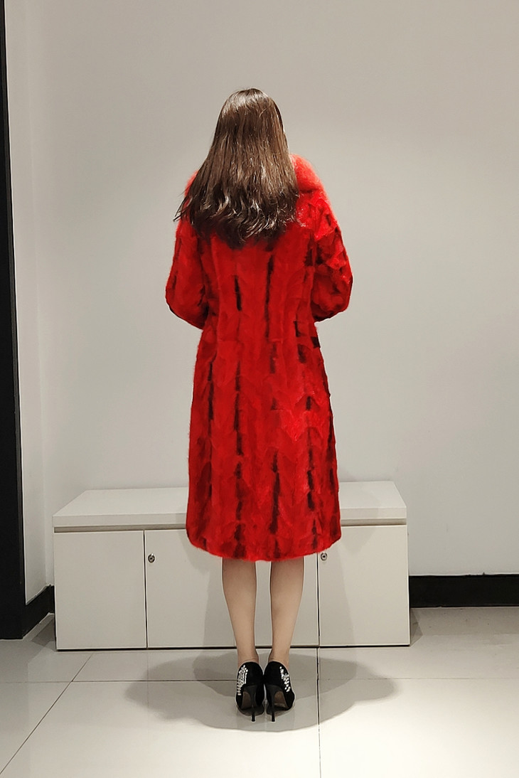 206PC091--红色狐狸毛拼貂毛款皮大衣--《冬季时尚系列》