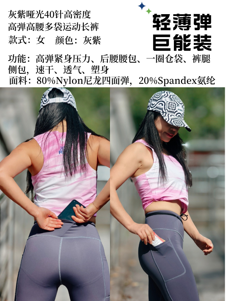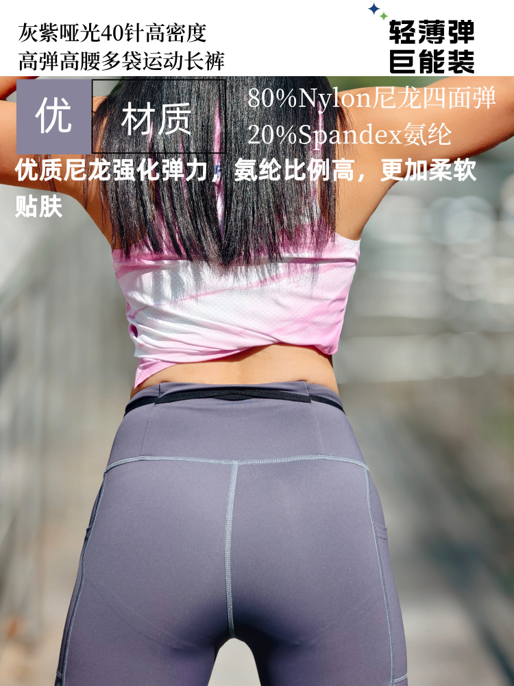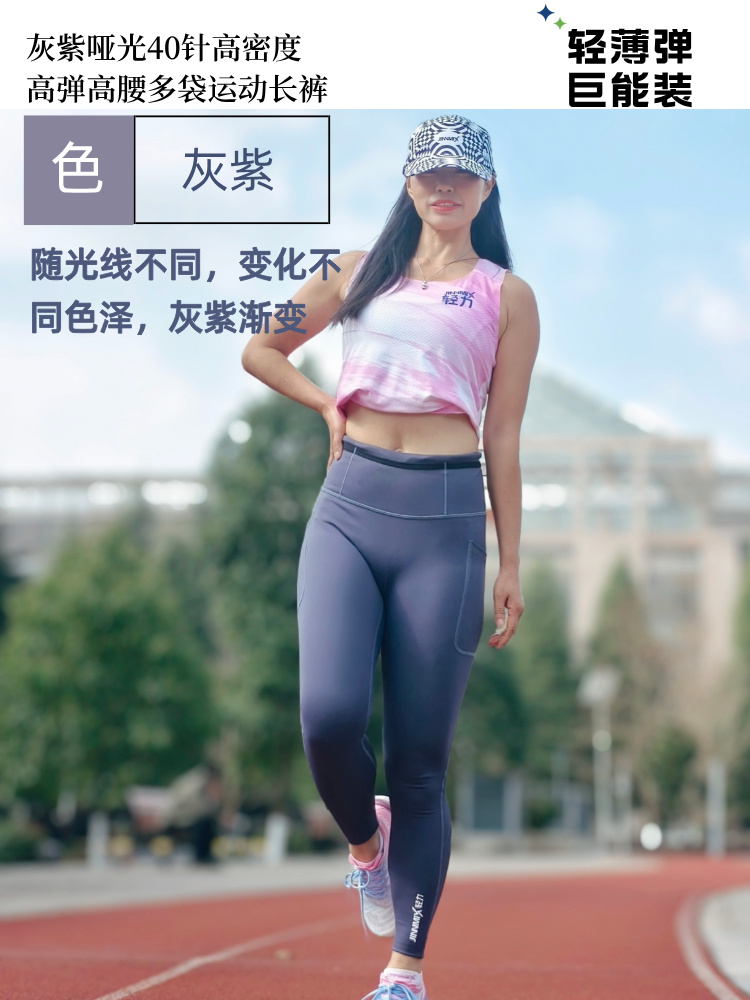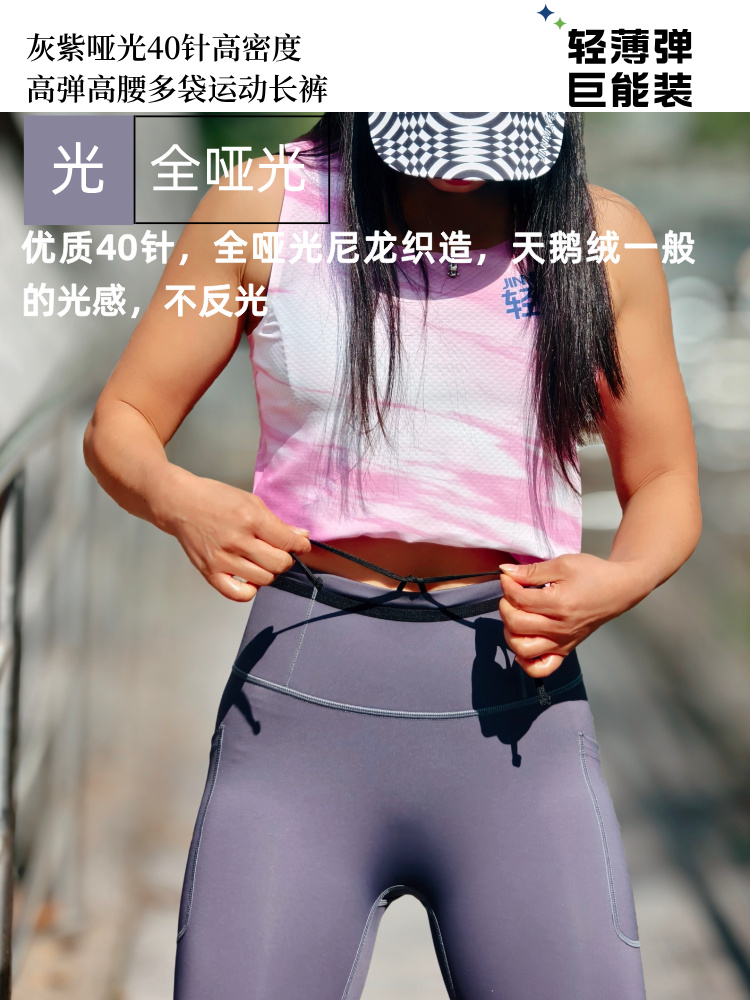 灰紫40针哑光高弹紧身巨能装运动长裤女马拉松越野跑步瑜伽
