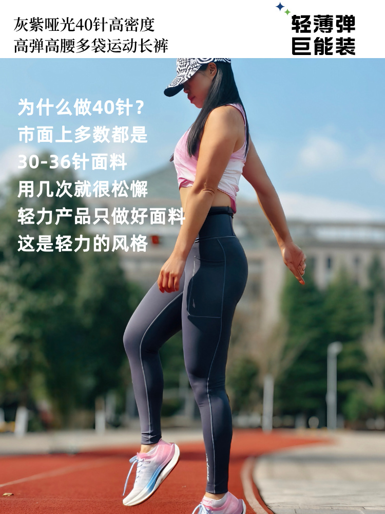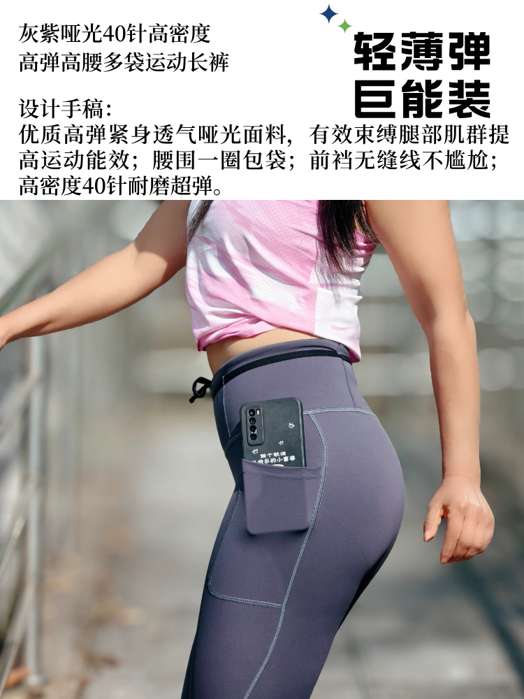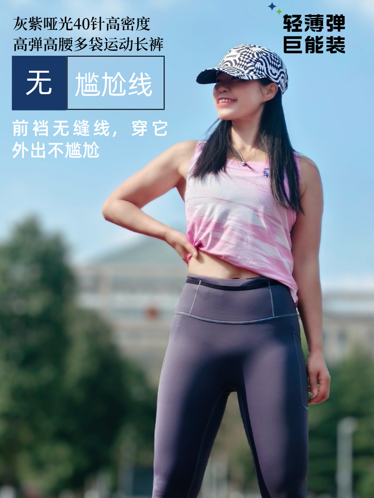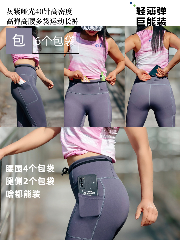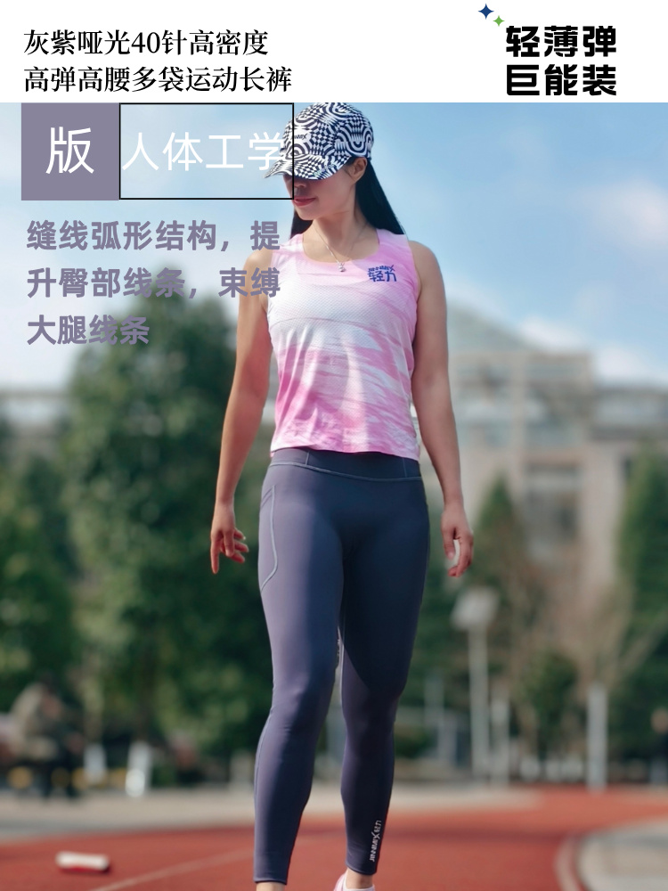 灰紫40针哑光高弹紧身巨能装运动长裤女马拉松越野跑步瑜伽