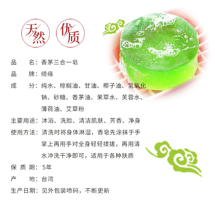 台湾绮缘抹草净身皂 三、六合一皂户外旅行沐浴草本植物