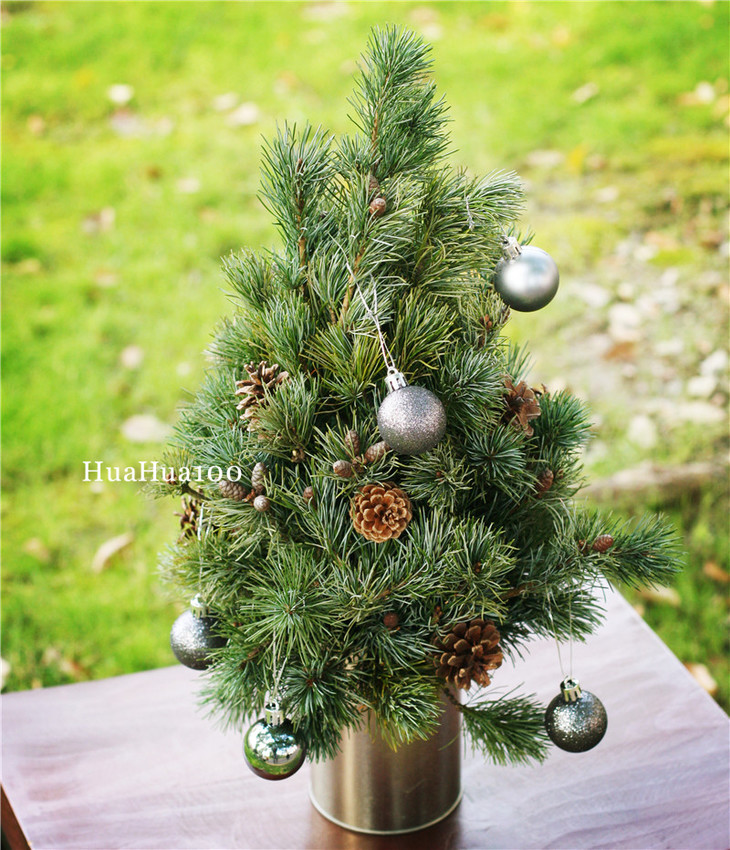 主花:松枝、7~8个银色小球、8~9个松果