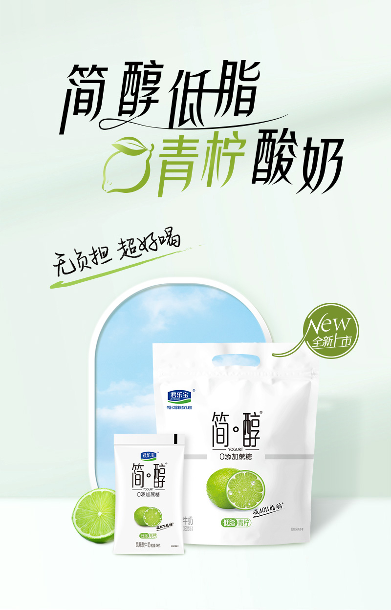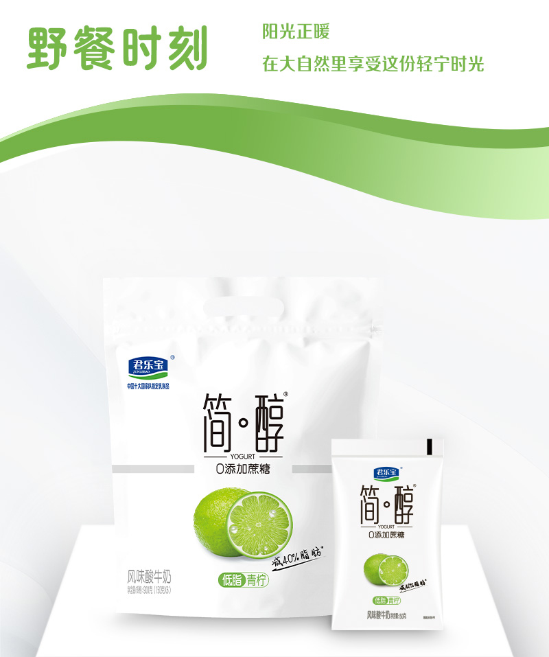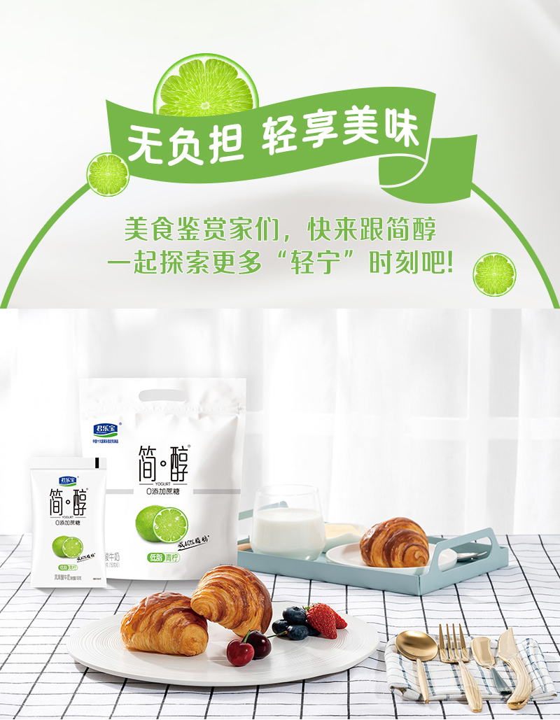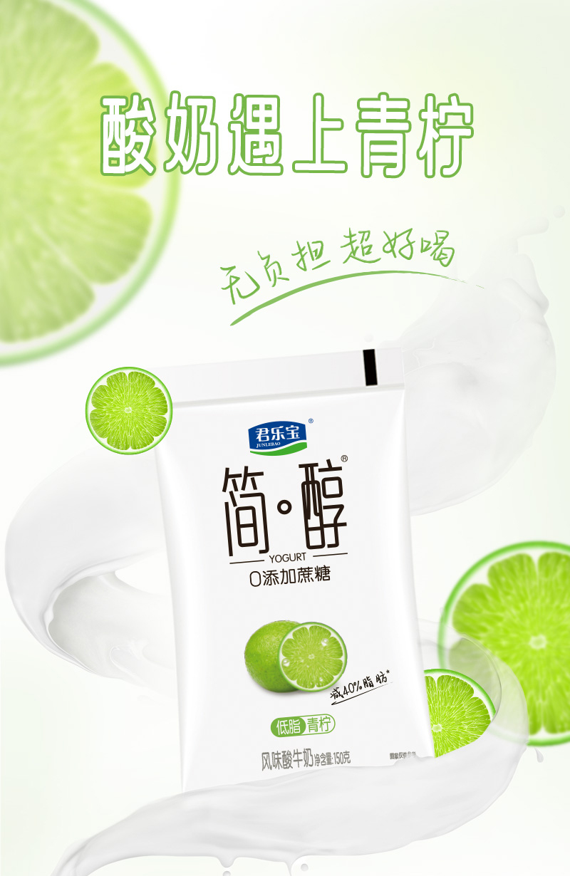 君乐宝简醇青柠酸奶 150g包 0添加蔗糖青柠果味袋装风味酸牛奶