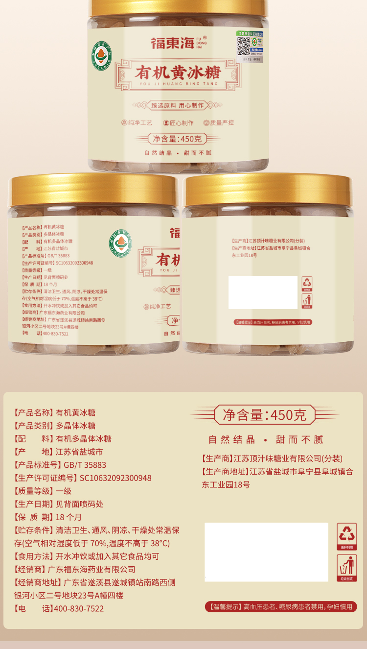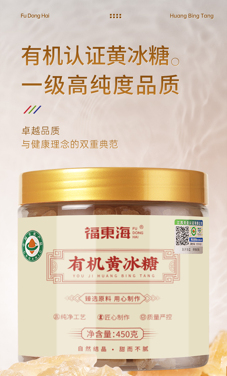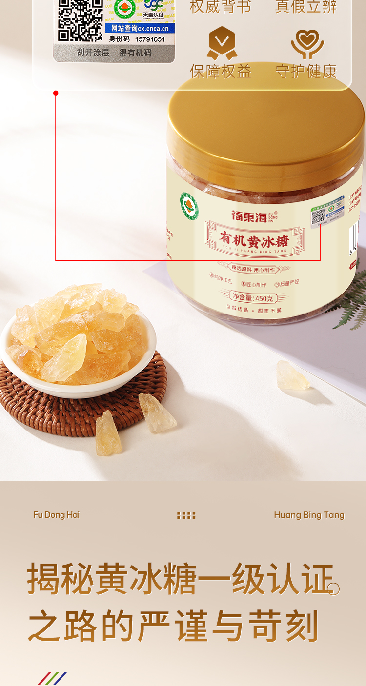 福东海 有机黄冰糖450克 多晶老冰糖正宗甘蔗冰糖块泡酒茶家用