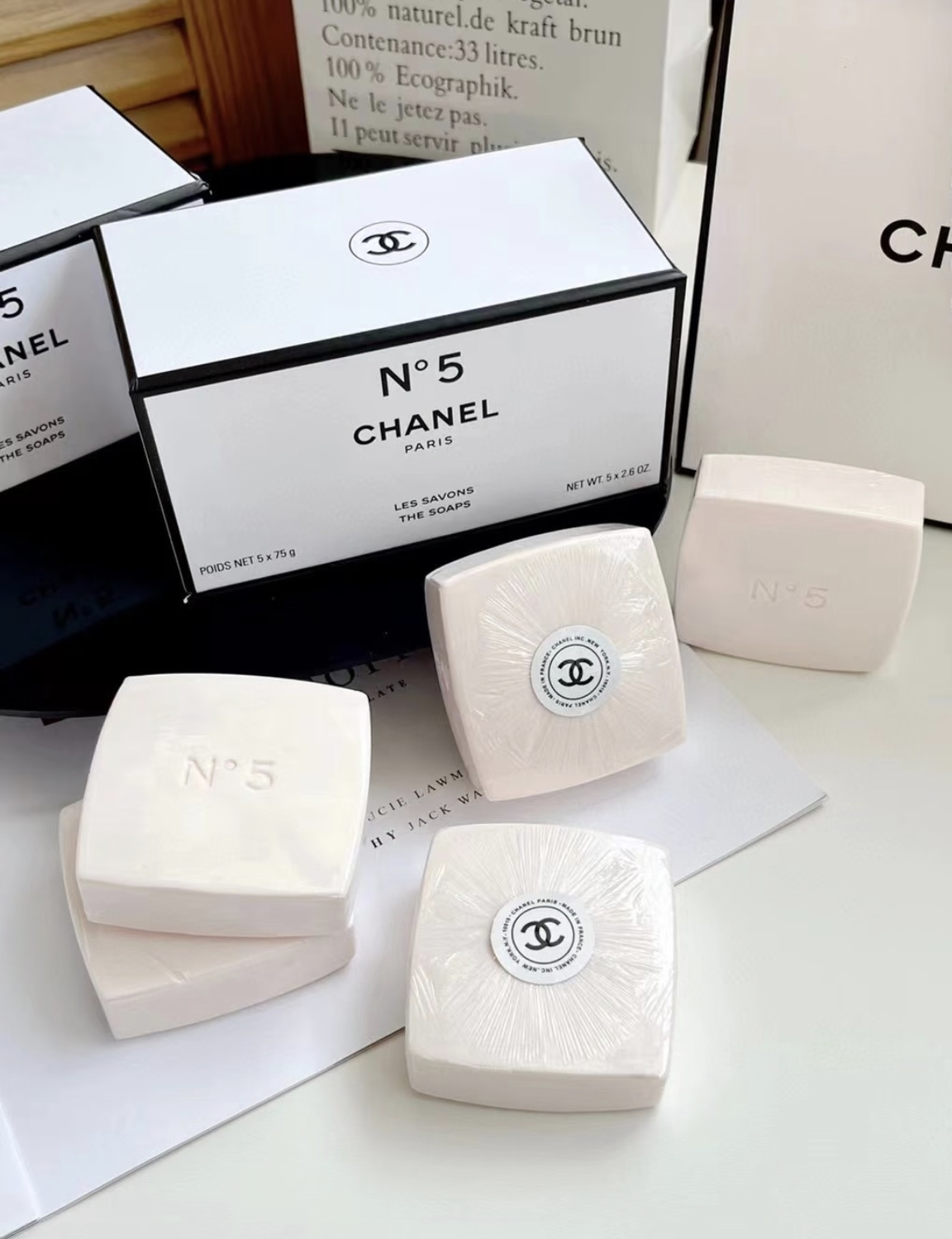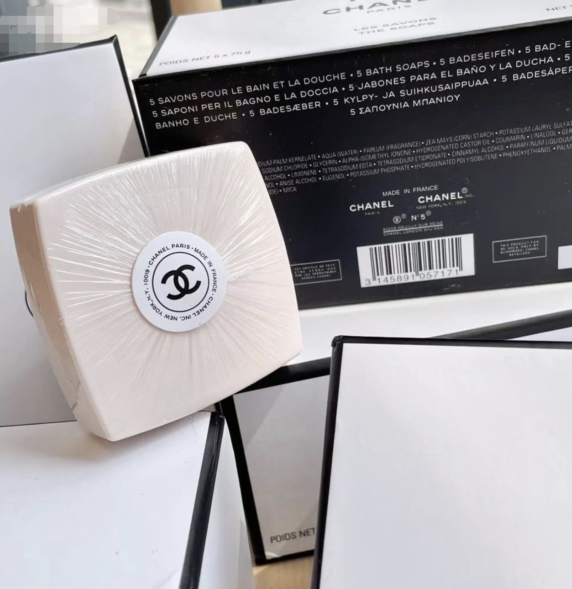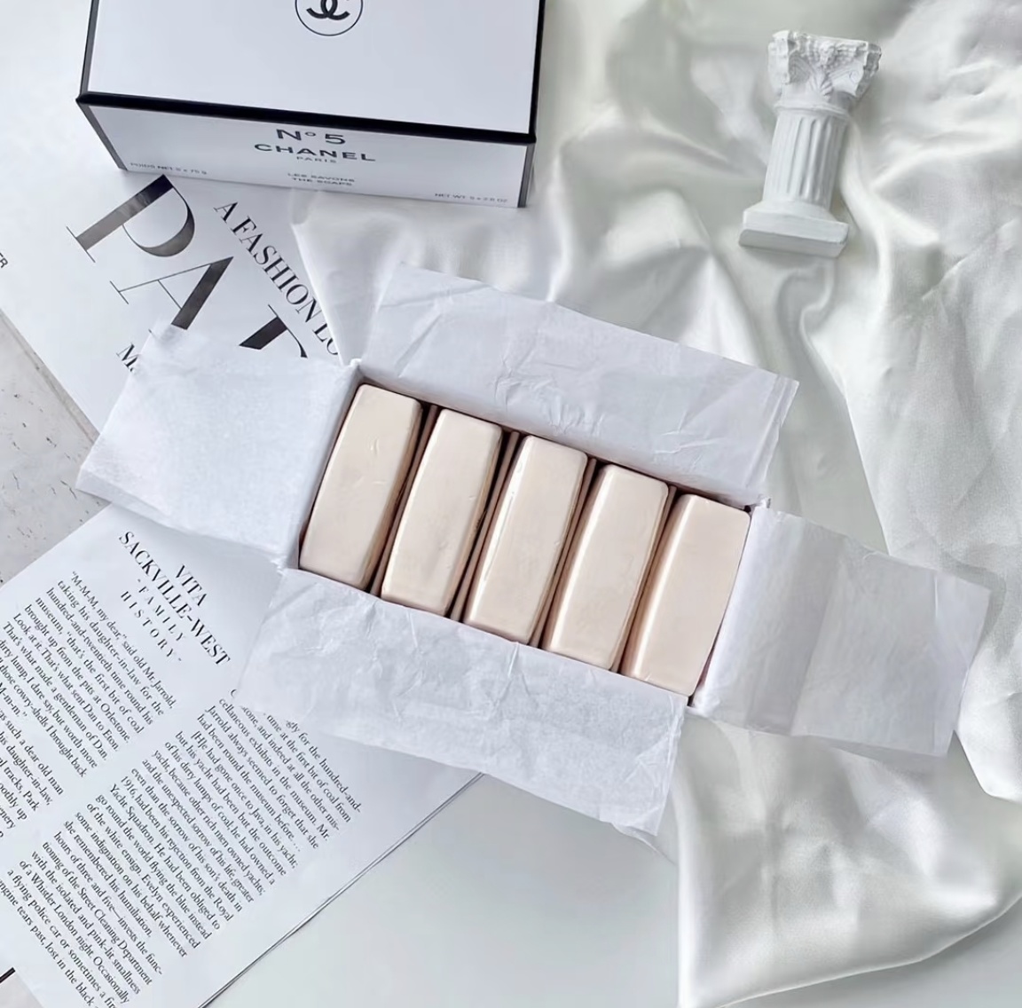 限量!限量!限量!【CHANEL N°5 限量版香水皂 礼套盒】❤你永远可以相信香奈儿5号 一套5块x75g,粉嫩的颜色很可爱呀 沉甸甸一盒很有分量?盒子里有小分隔不怕受潮