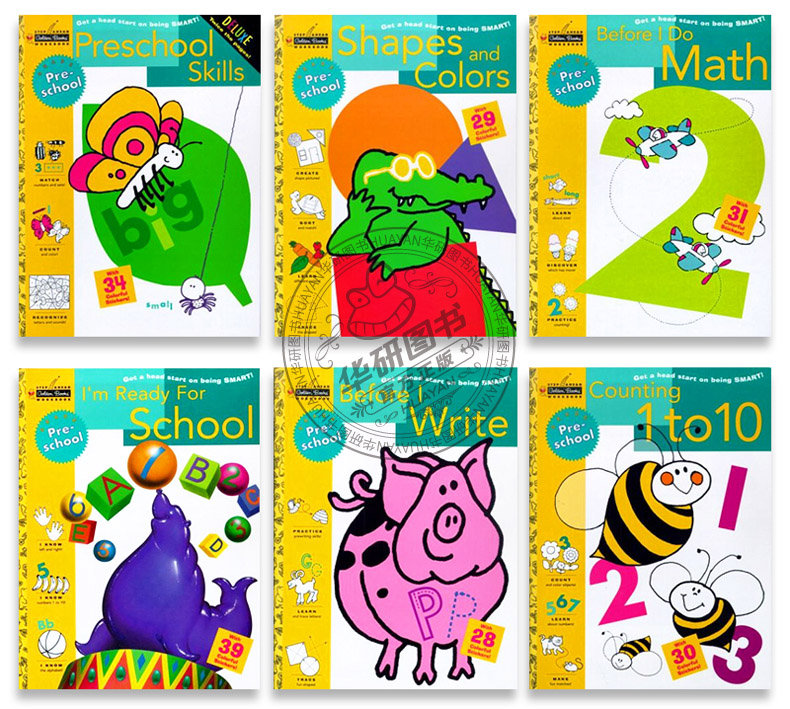 正版 数学 写作 数字 形状 颜色认知 学习能力 英文原版 Preschool 兰登美国学龄前儿童练习册6册 Golden Book 进口金色童书