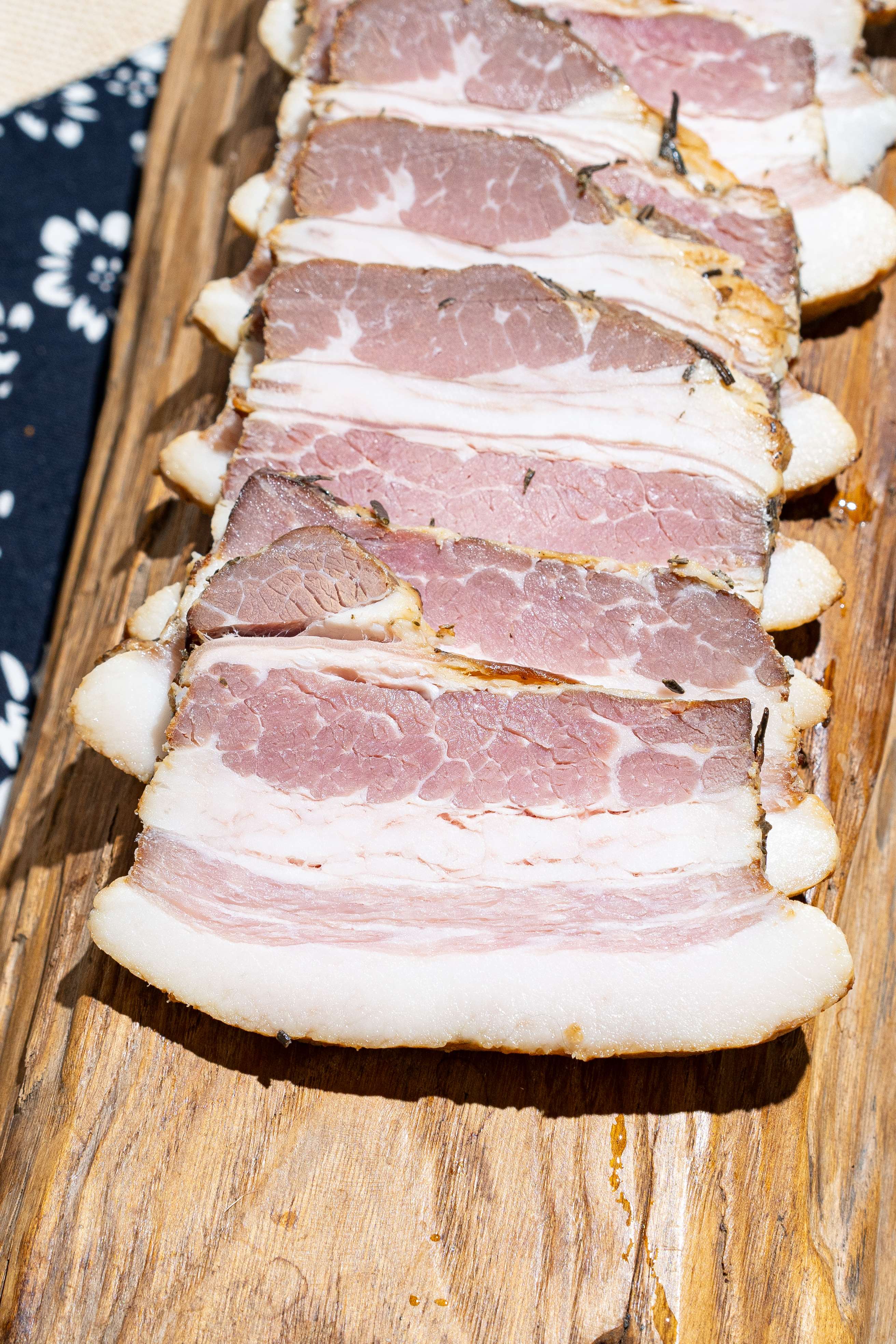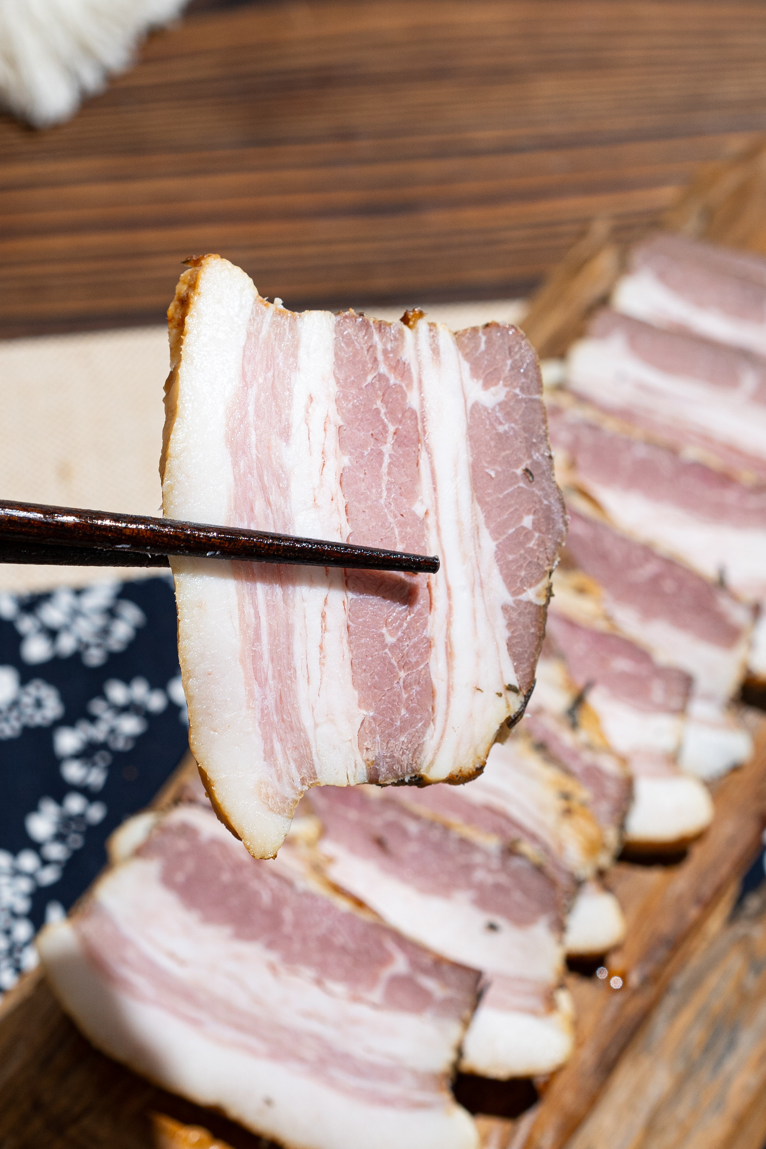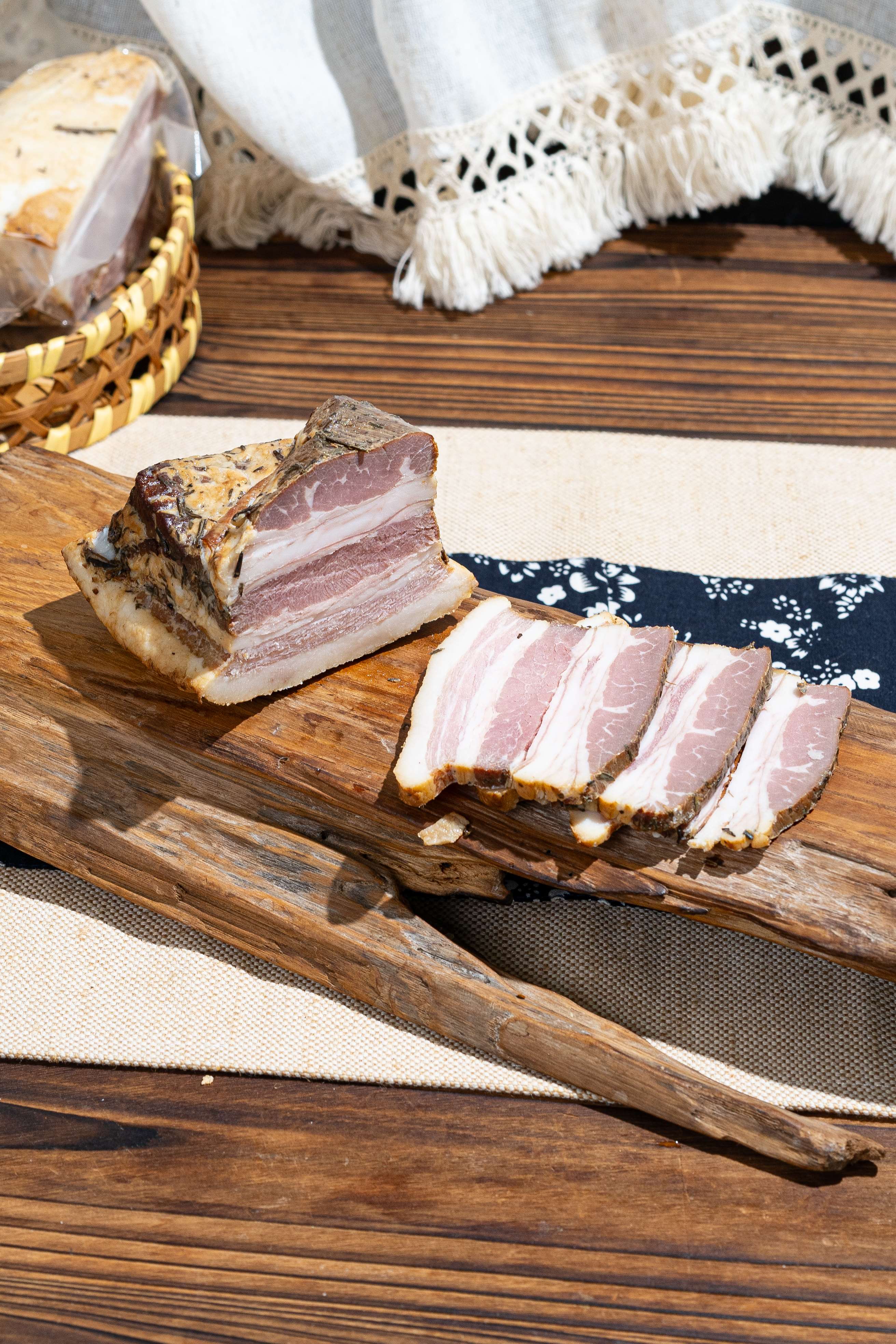 中式整切培根丨低盐配方,果木烟熏工艺,咸香有嚼劲,配料干净,跑山黑猪肉制作,整切花肉,肥度较高,介意慎拍⭐️顺丰/京东随机发