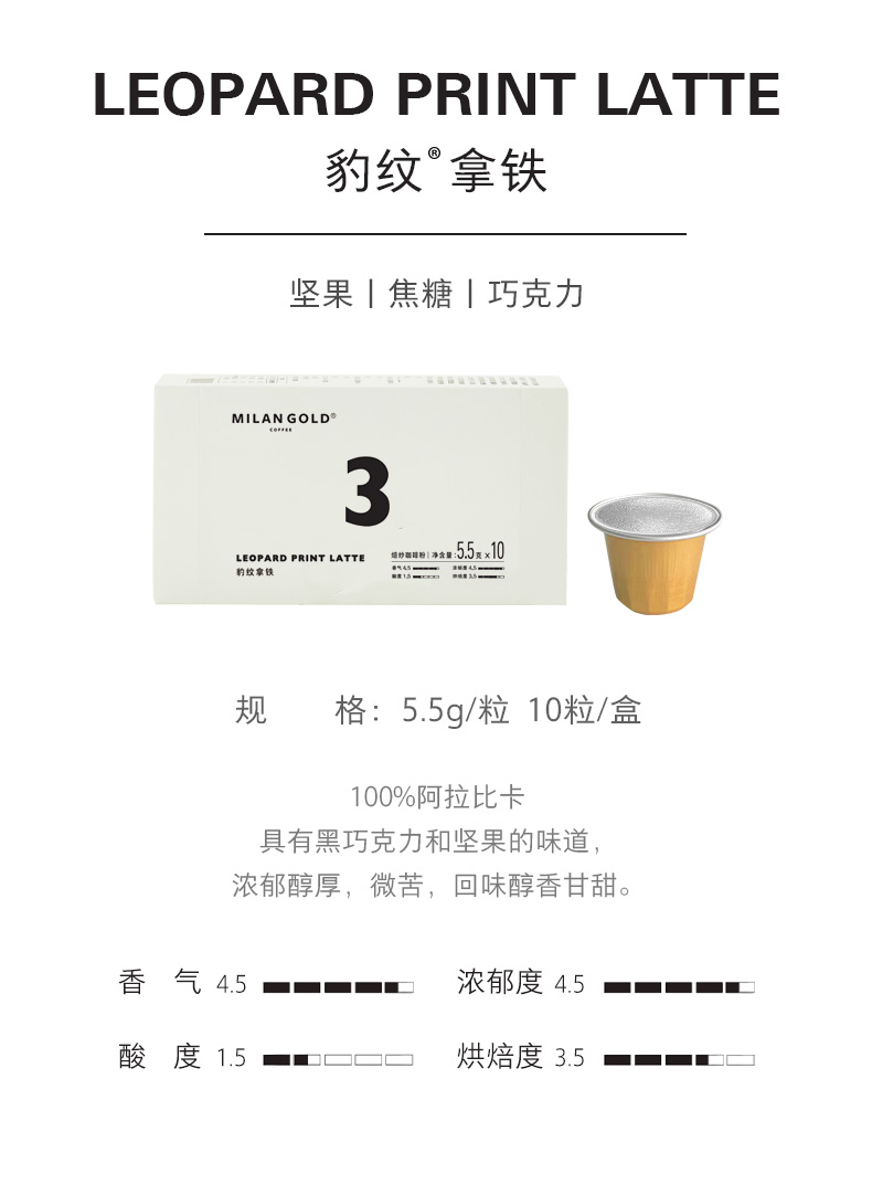 金米兰咖啡胶囊咖啡|豹纹拿铁5.5g×10颗