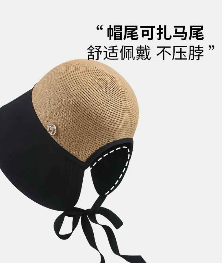 硬核防晒!超大檐!2026法式遮阳帽女出游大头围度假可扎马尾渔夫帽显脸小!