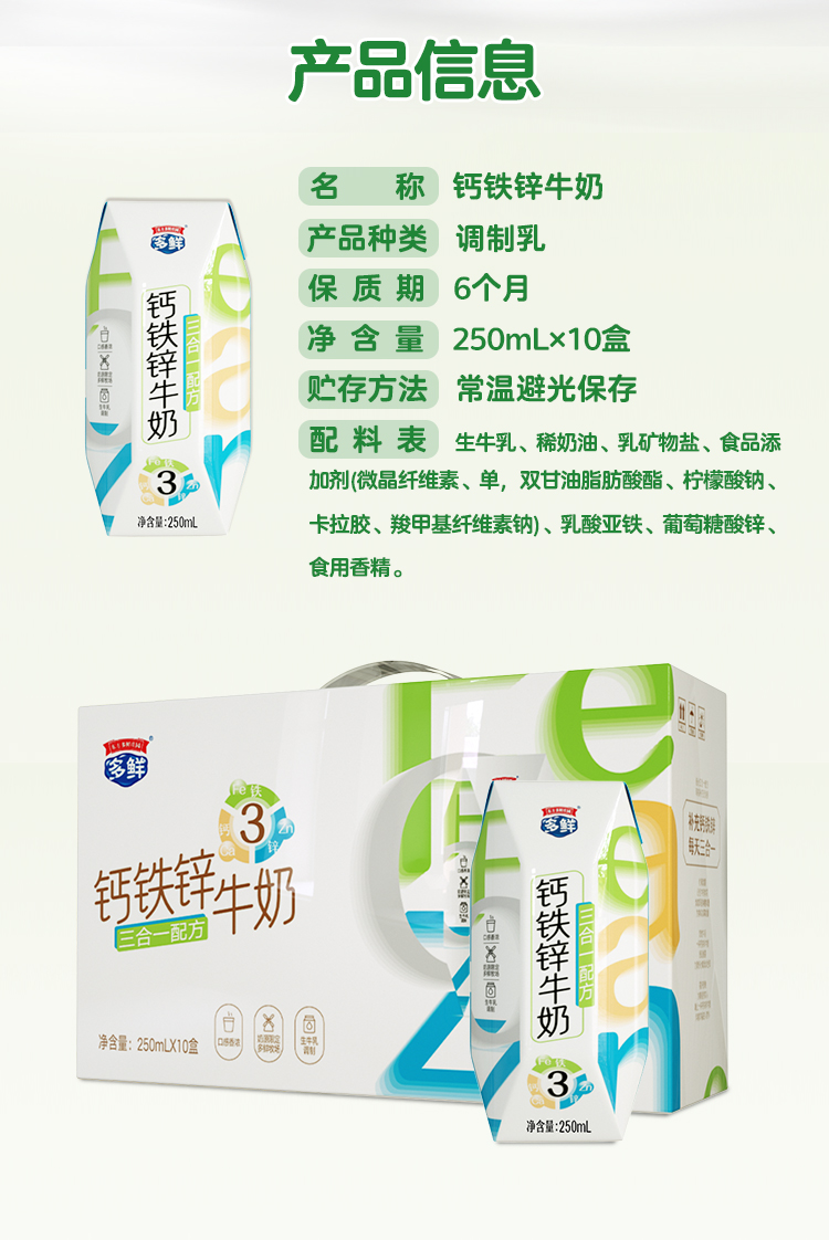 钙铁锌牛奶三合一配方礼盒装(250ml*10盒/箱)