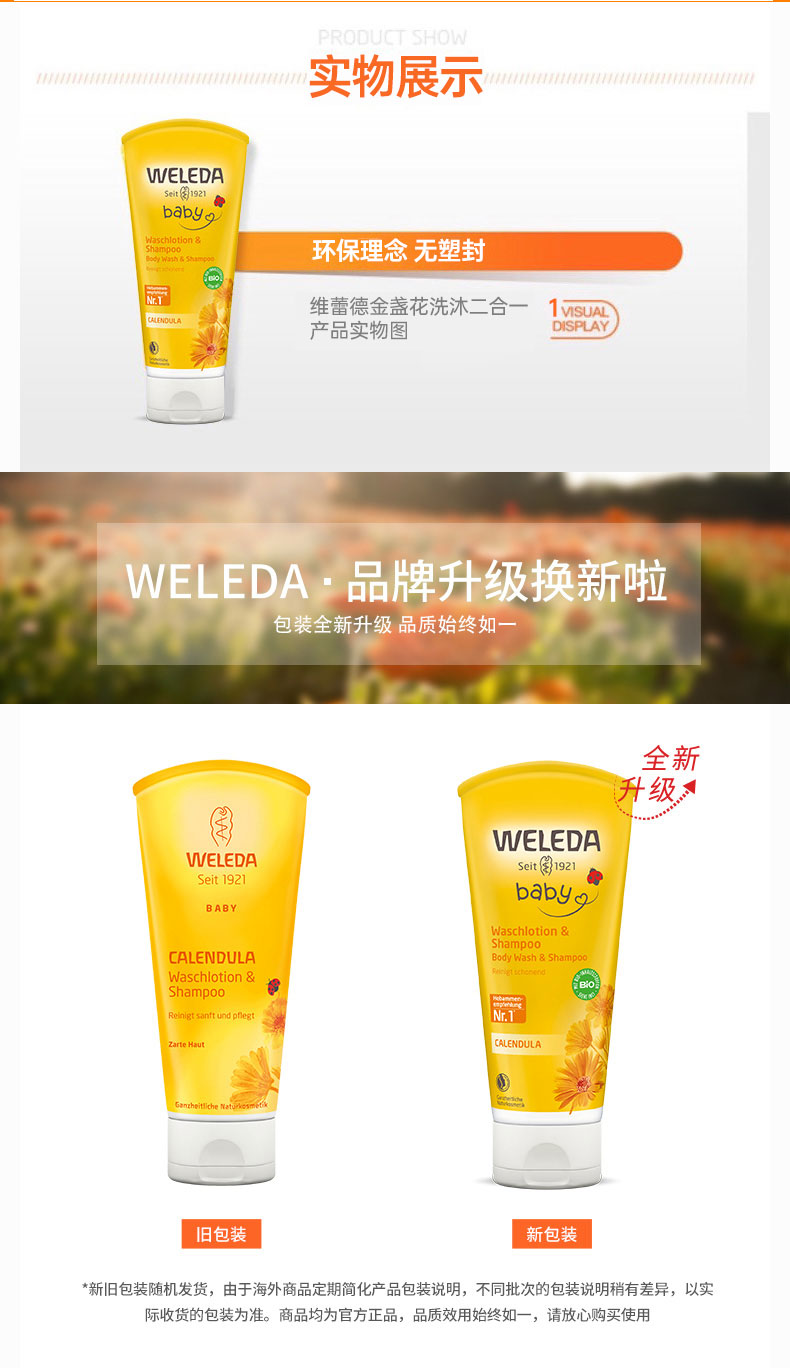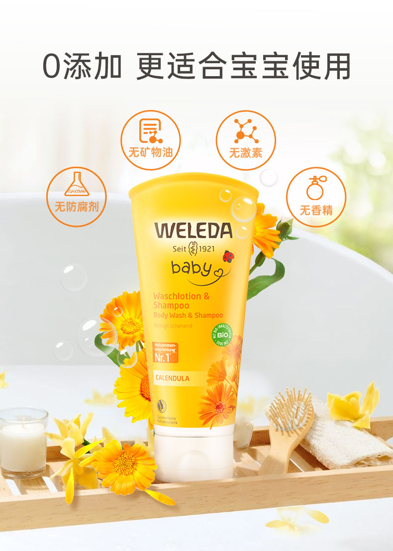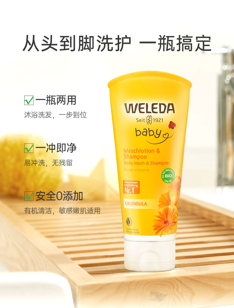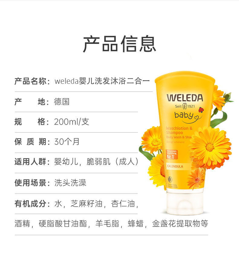 【品牌旗舰】Weleda维蕾德 金盏花婴儿洗发沐浴二合一乳液 无泪配方 400ml