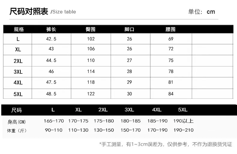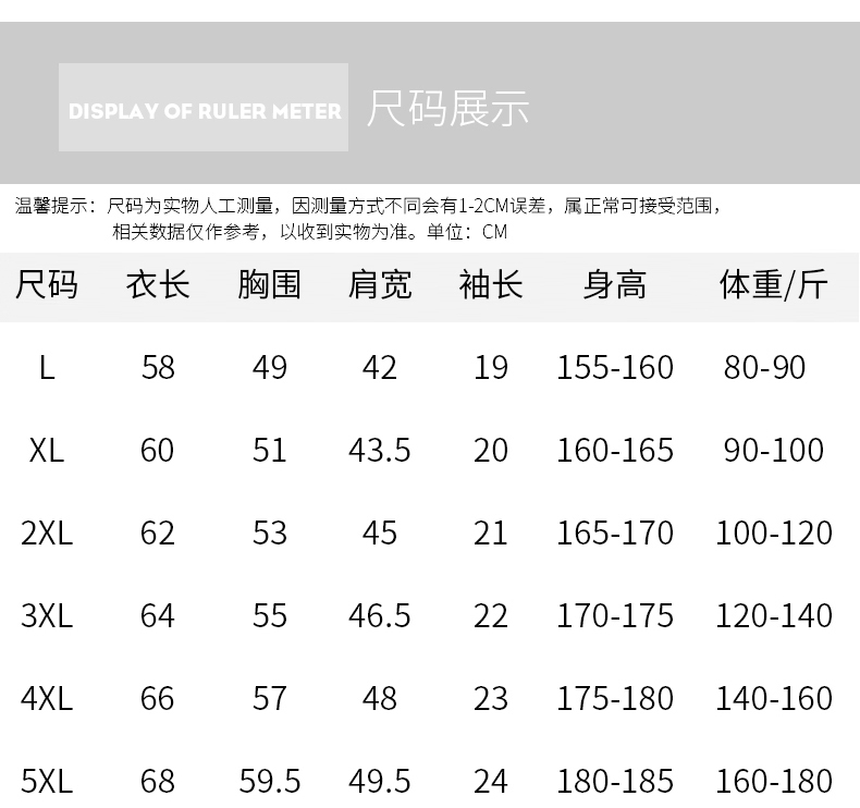 尺码:L(建议80-90斤),XL(建议90-100斤),2XL(建议100-120斤),3XL(建议120-140斤),4XL(建议140-160斤),5XL(建议160-180斤)