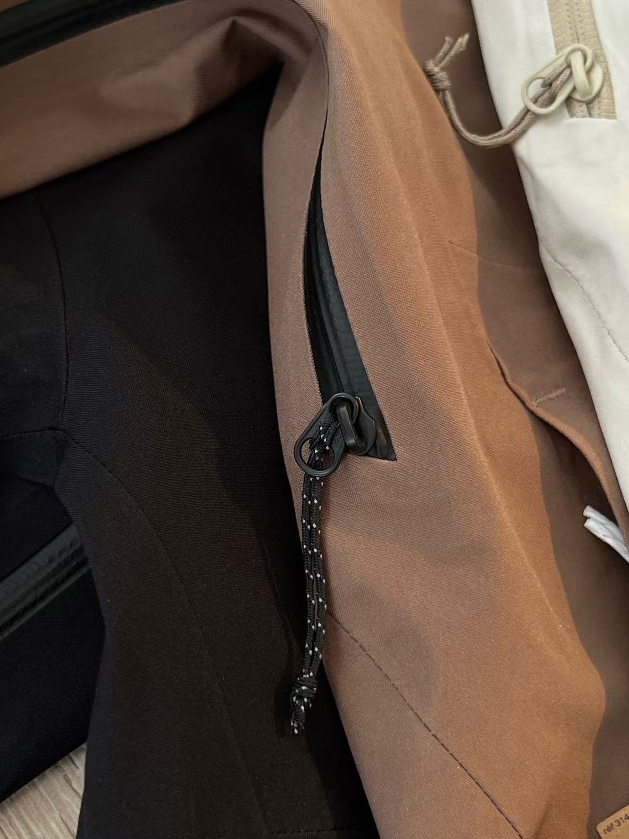 整体是立体的对块剪裁 采取了冲锋衣的设计 上身的感觉更利落 更显成熟干练味道