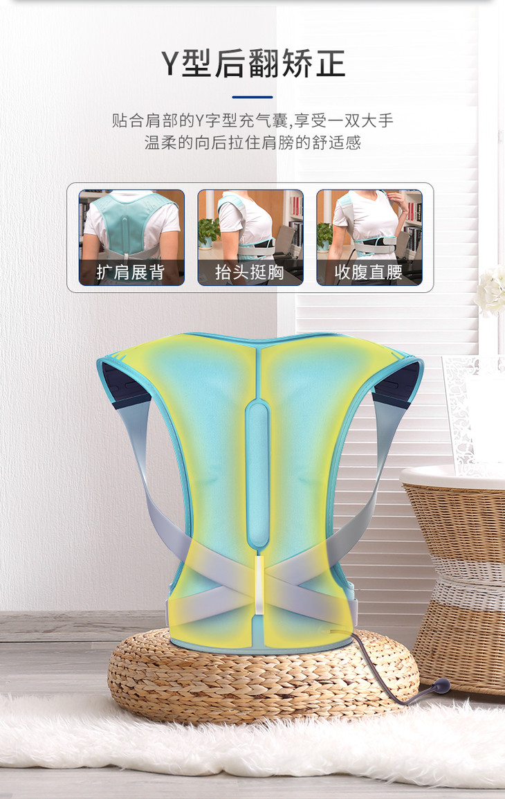 何浩明充气式防驼背矫正带 儿童透气纠正衣学生背部脊椎矫正器