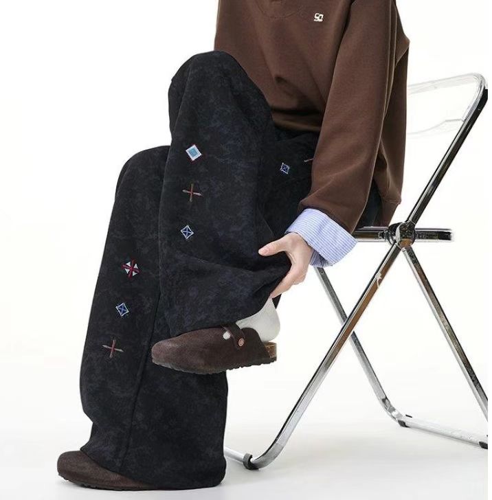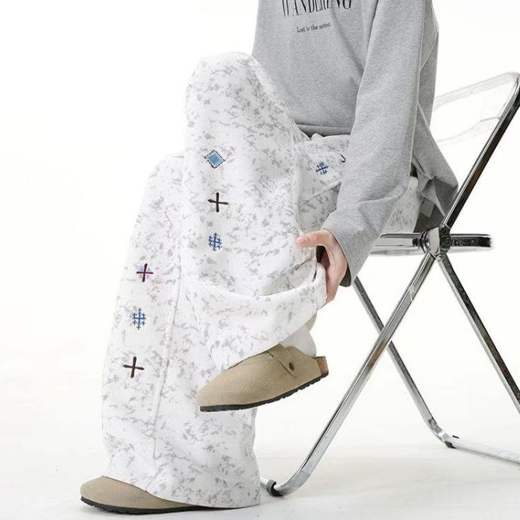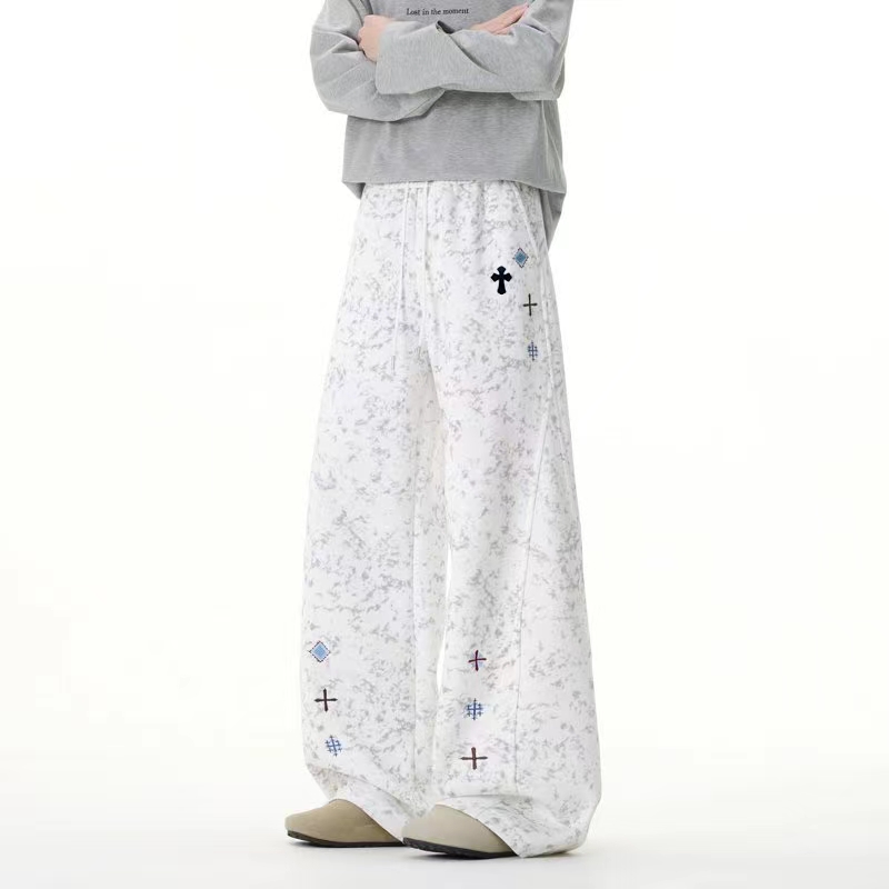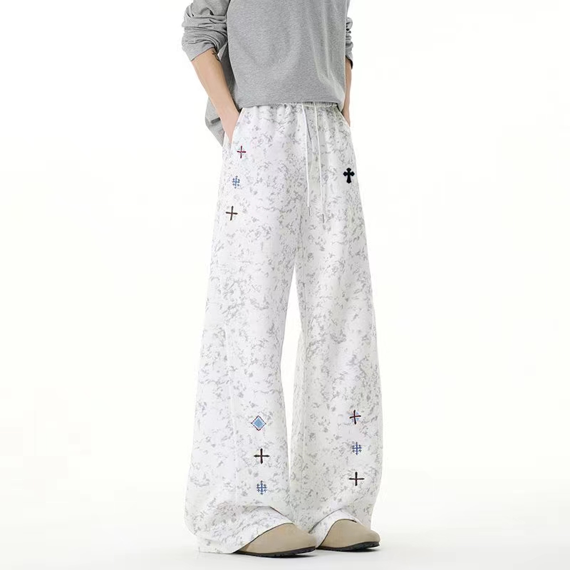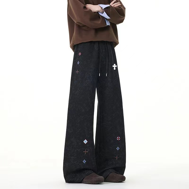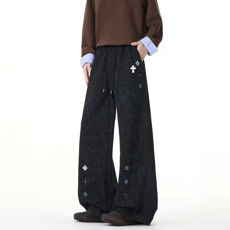 新款弯刀裤刺绣2色高品质休闲运动裤! 裤子版型宽松 全棉针织面料耐磨耐脏 立体裁剪宽松版型 进口机器印花反复水洗不会开裂脱落 男女同款情侣款