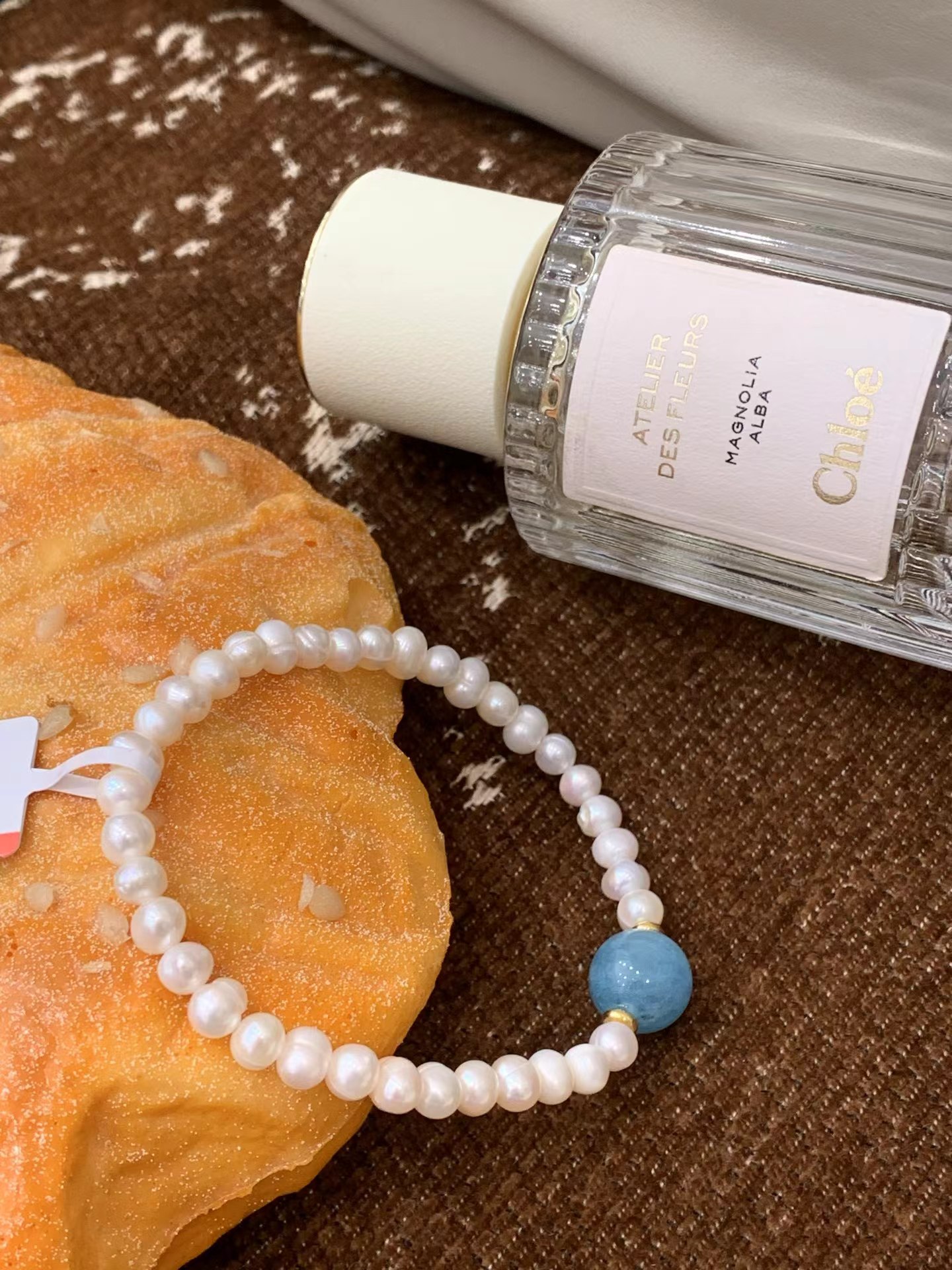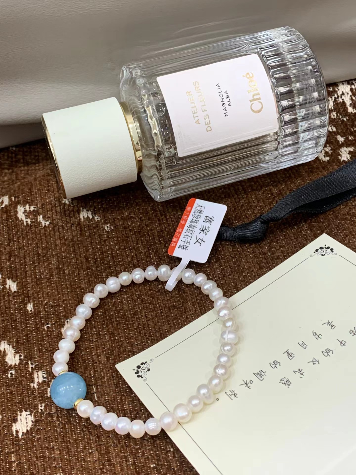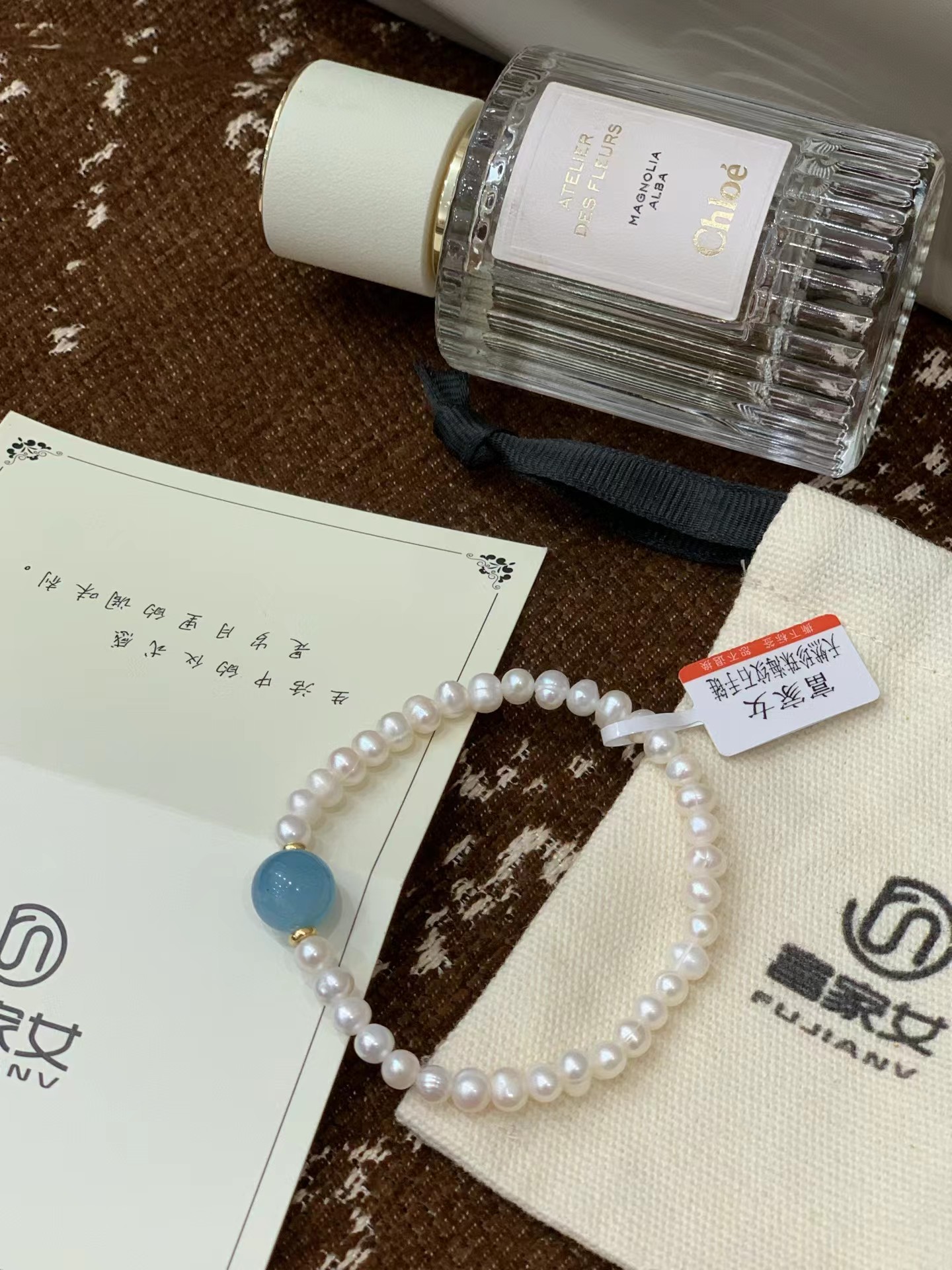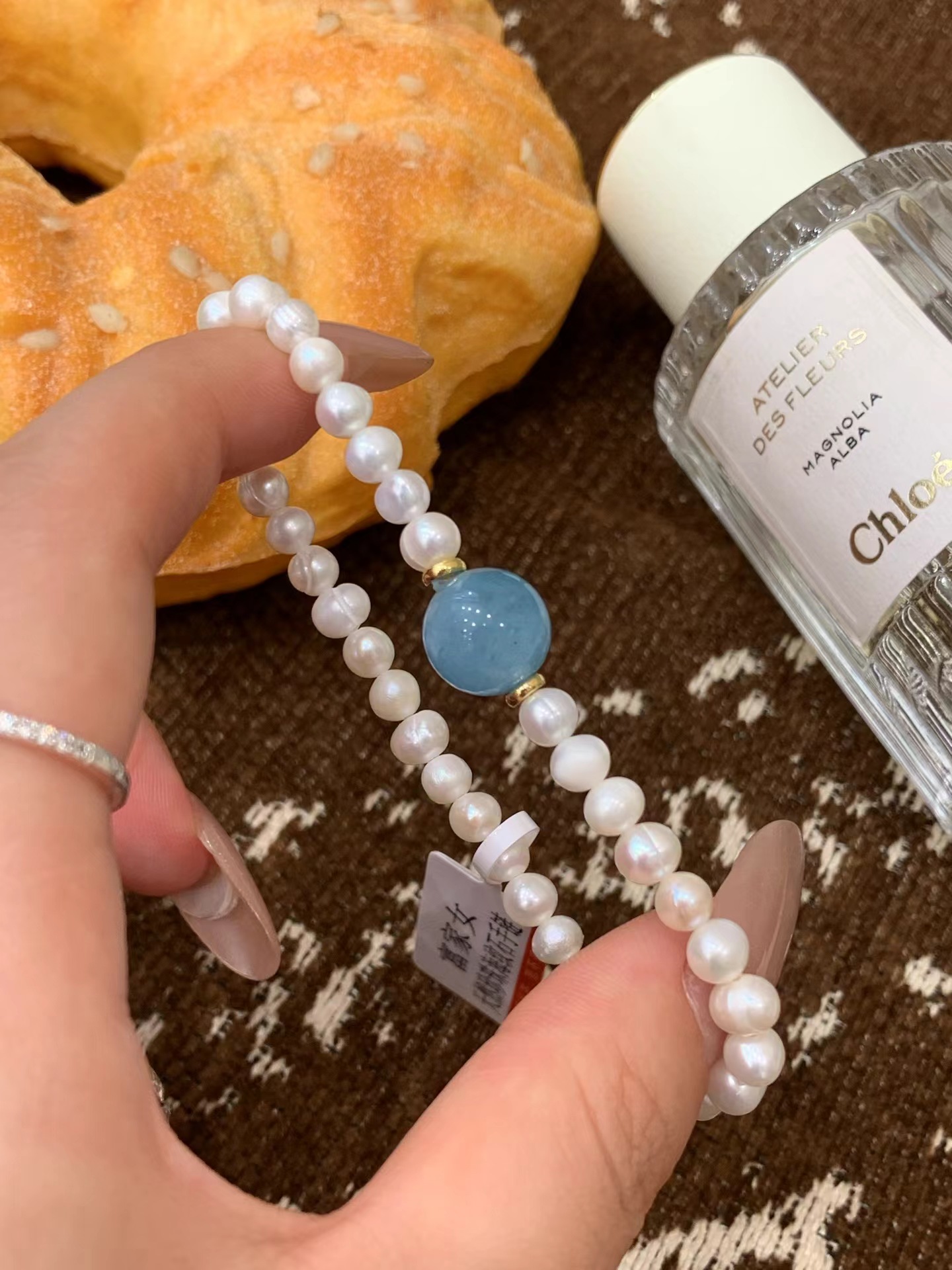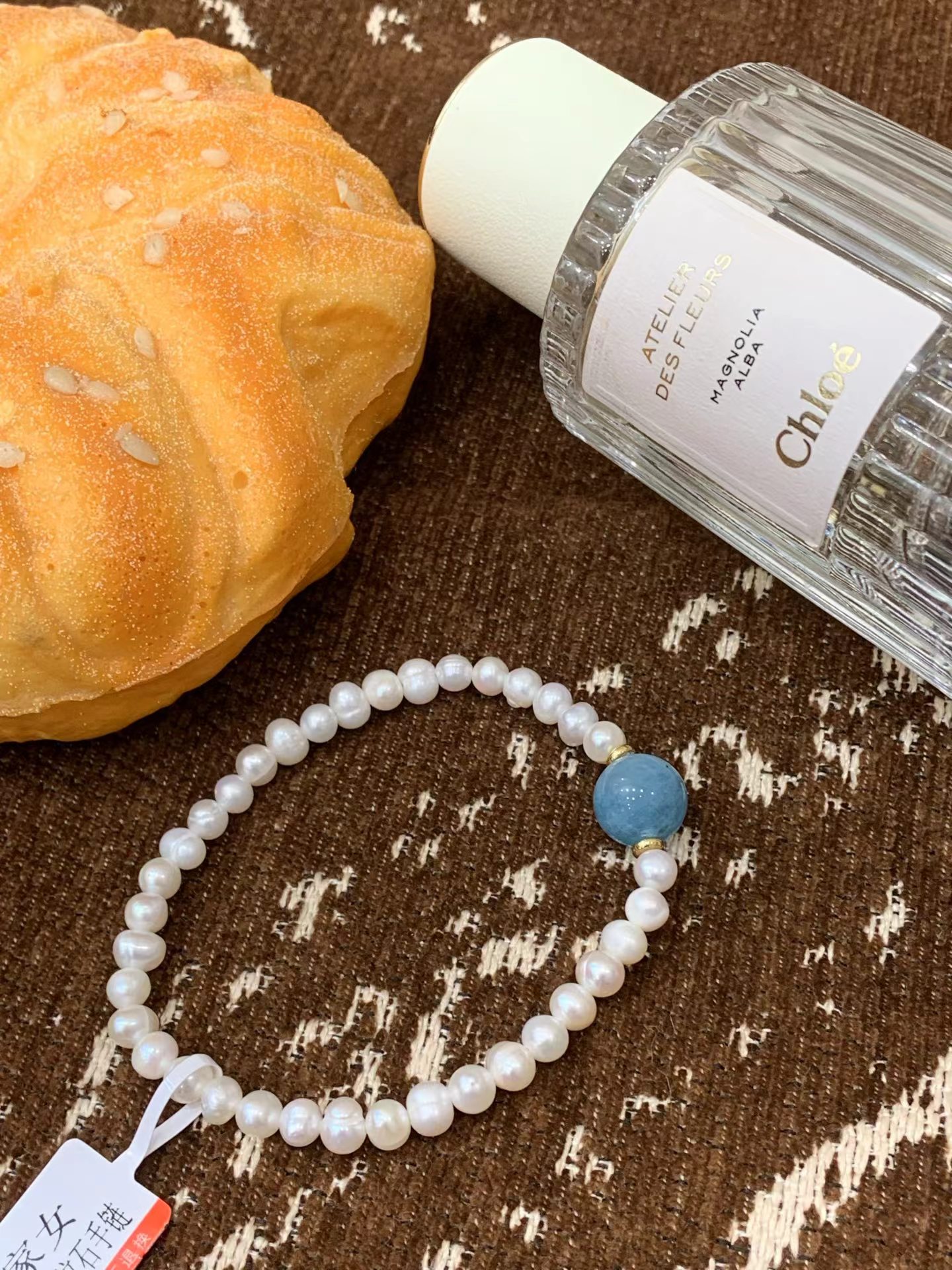 富家女天然珍珠海纹石手链配布袋海纹石搭配珍珠做手链有光划过时 表面像绸缎一样流动蓝色光彩怎么会有这么奇幻的石头哦!富家女天然珍珠海纹石手串】也太好看了吧!!珍珠是淡水珍珠 光泽度超好每一颗都圆润饱满戴在手上显得手特别白!天然珍珠搭配单颗海纹石这个搭配简直太绝啦像被海水冲刷过的蓝色纹理如海浪般流动搭配天然淡水珍珠 温润的奶白色和海纹石的冷调蓝形成绝妙对比
