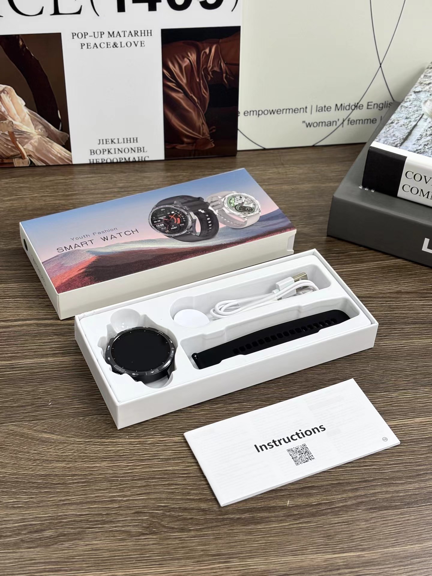 血氧心率sui时可测,健康的生活离不开一款智能运动手表!2026醉新的GT6来啦!Watch GT6同款智能运动手表,情侣款,这款外观真的太羔级了,自带奢侈感!跑步/健走/足球/羽毛球/网球/篮球/爬山/瑜伽/跳绳/健身房等十几种运动模式,功能醉全的一款运动手表!微信短信消息提醒、天气、来电提醒、数十种运动模式、计步、睡眠监测、音乐、心率、血氧、女性健康检测、吃药喝水提醒、久坐提醒、闹钟 秒表 、语音助手、全屏触控、音乐、接打电话、无线充电等各种功能只需碰一碰手机APP,一碰即达!原厂1.5inch 5D高清视网膜屏,480*480超高分辨率,双按键操作,无线充电,大容量锂电池,宇宙醉强续航的一款智能手表啦!蓝牙5.2,连接稳定的一塌糊涂,zui羔端的锌合金机身+IML底壳!多款新式菜单风格,丰富的表盘市场等你来自定义、听音乐、同步天气、多种运动模式、15国语言可设置 等更多功能随心嗨。兼容苹果和安卓,IOS8.0及以上,安卓4.4及以上!提醒:IP67生活级防水 洗澡时需摘下哦,避免长时间浸泡导致进水。
