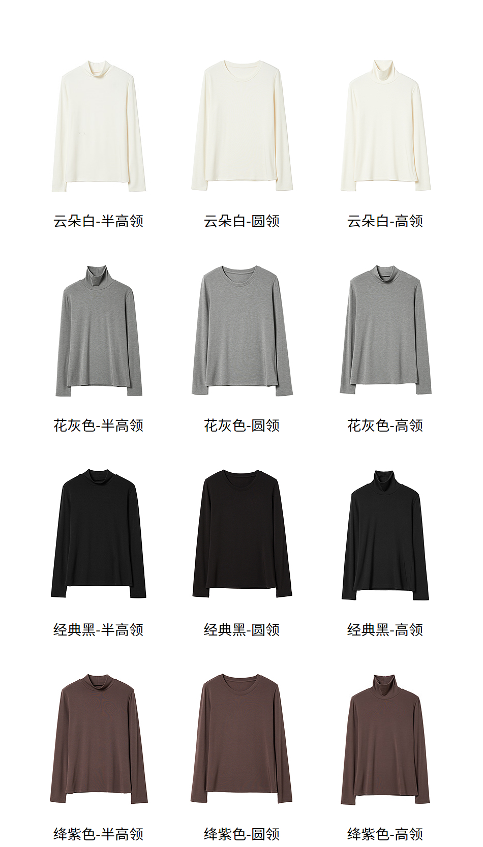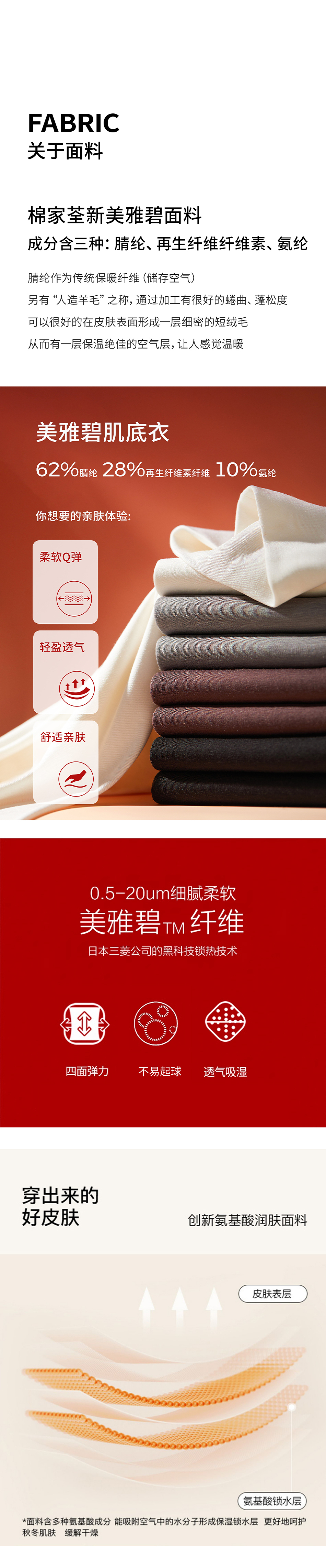 棉仓357601003-美雅碧氨基酸,SPA润肤轻暖养肤肌底衣多领型发热打底衣