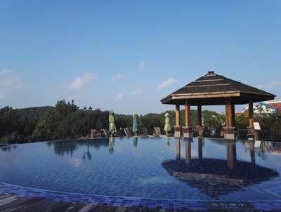海拔128米的山顶,有大型露天泳池,