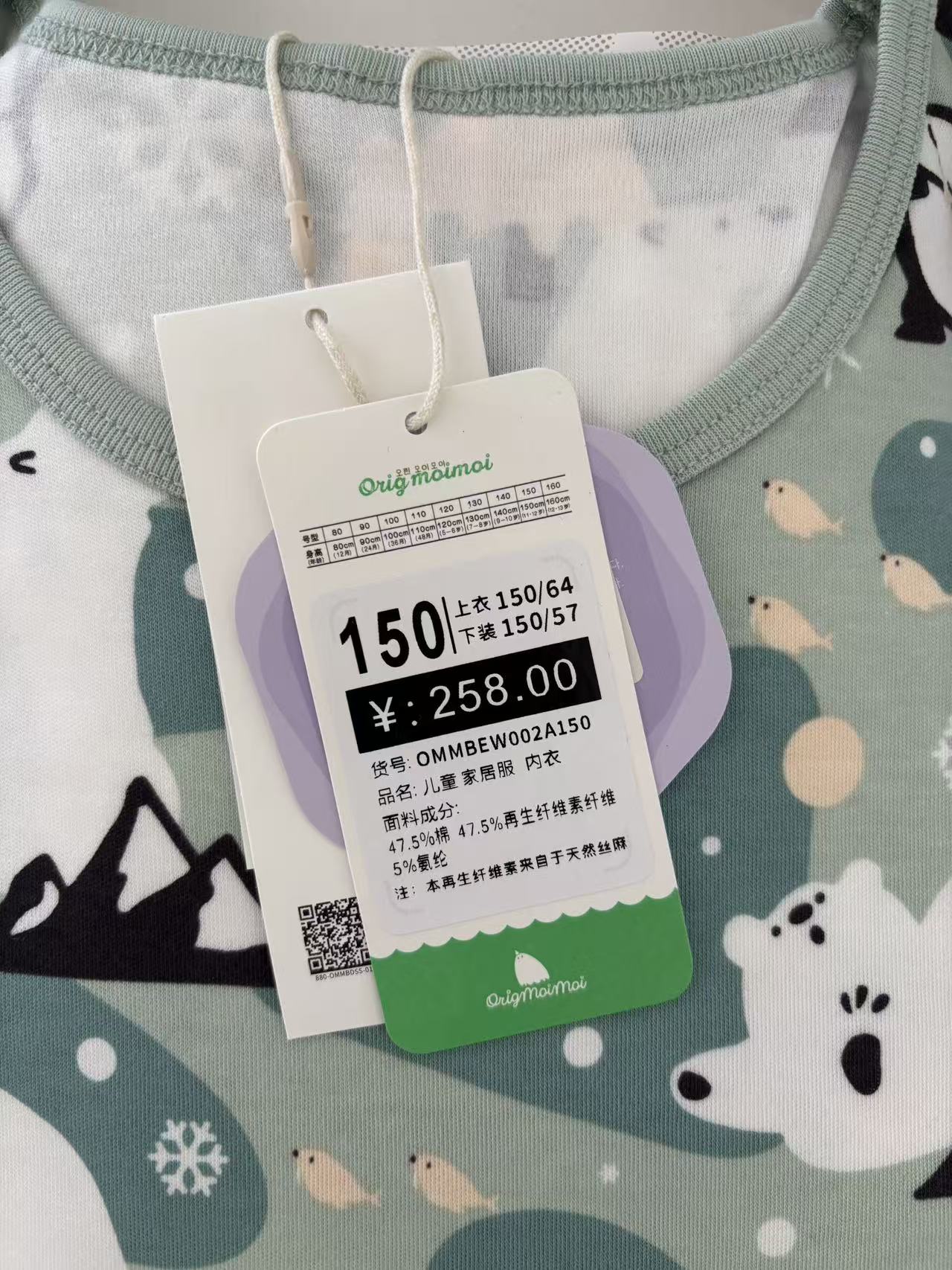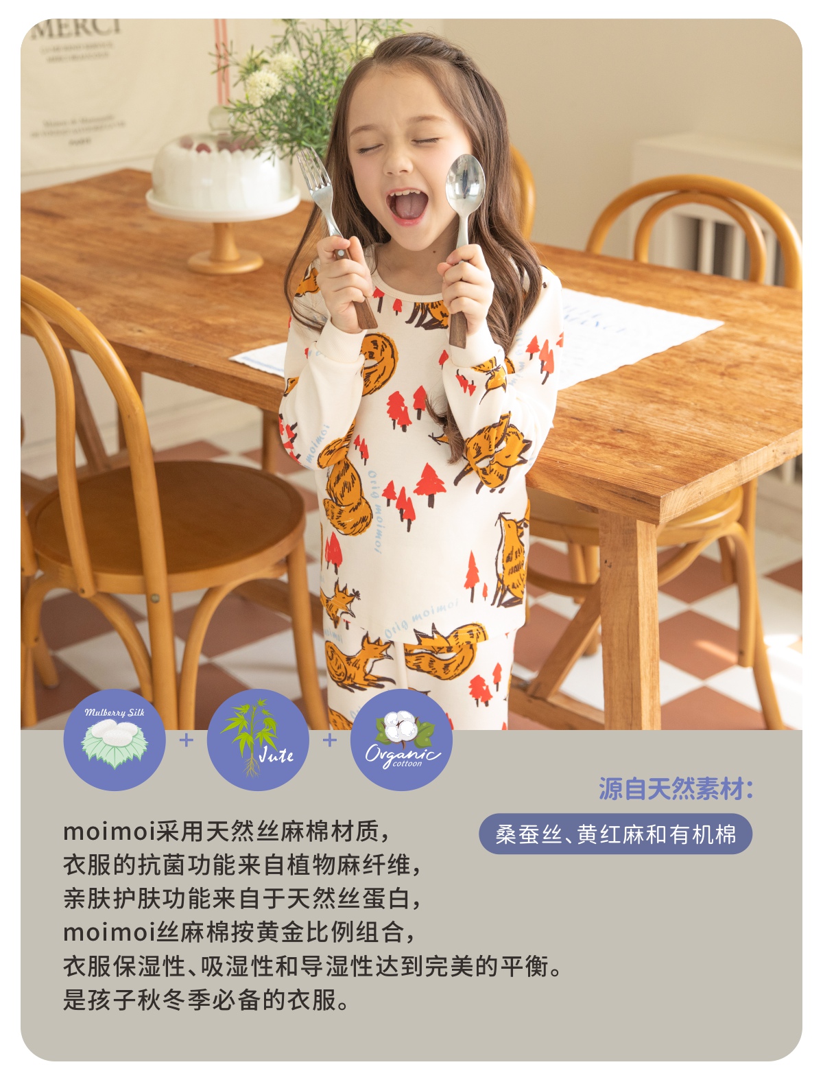 2套减10元❗️【230克丝麻棉中等厚度 】韩国moimoi儿童保暖内衣套装儿童家居服(丝麻棉中等厚度) 5A级K菌