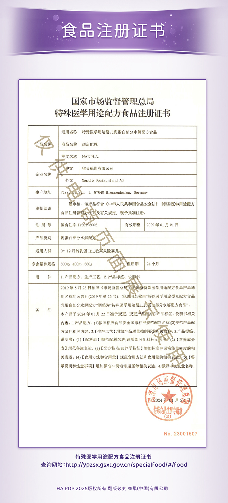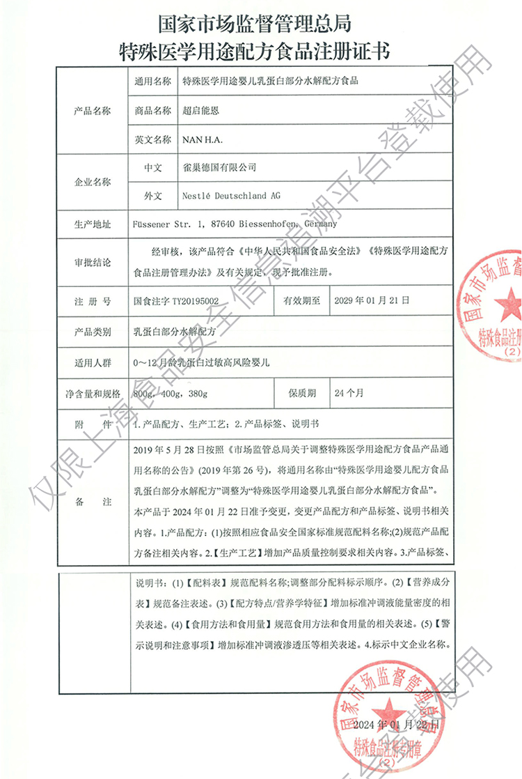 雀巢超启能恩部分水解婴儿配方奶粉 1段800g(0-6月龄)
