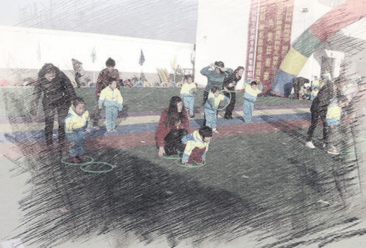 规则:亲子参与,家长和小朋友前后站立,