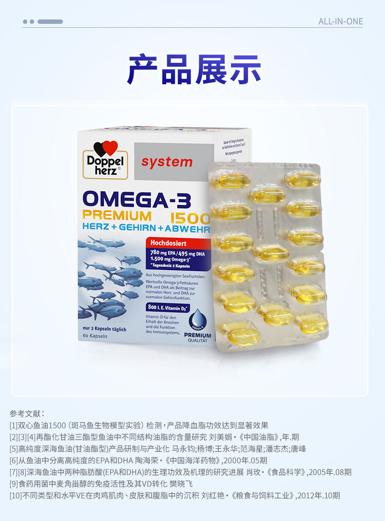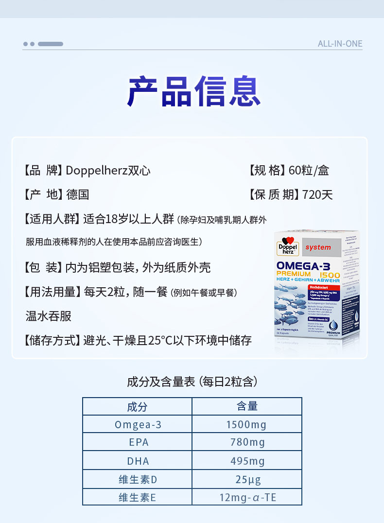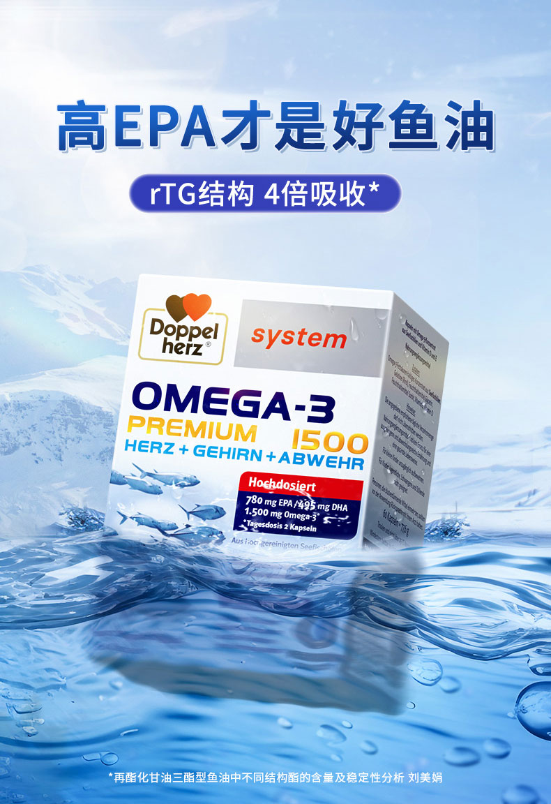德国双心rTG高浓度钻石深海鱼油omega3 1500DHA中老年成人软胶囊60粒