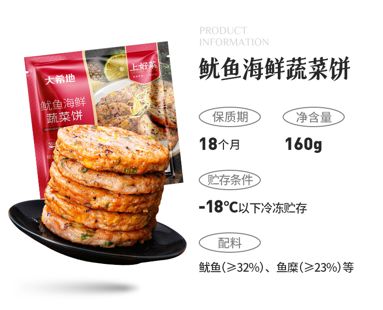 大希地鱿鱼海鲜蔬菜饼 160g*3(4个/袋)