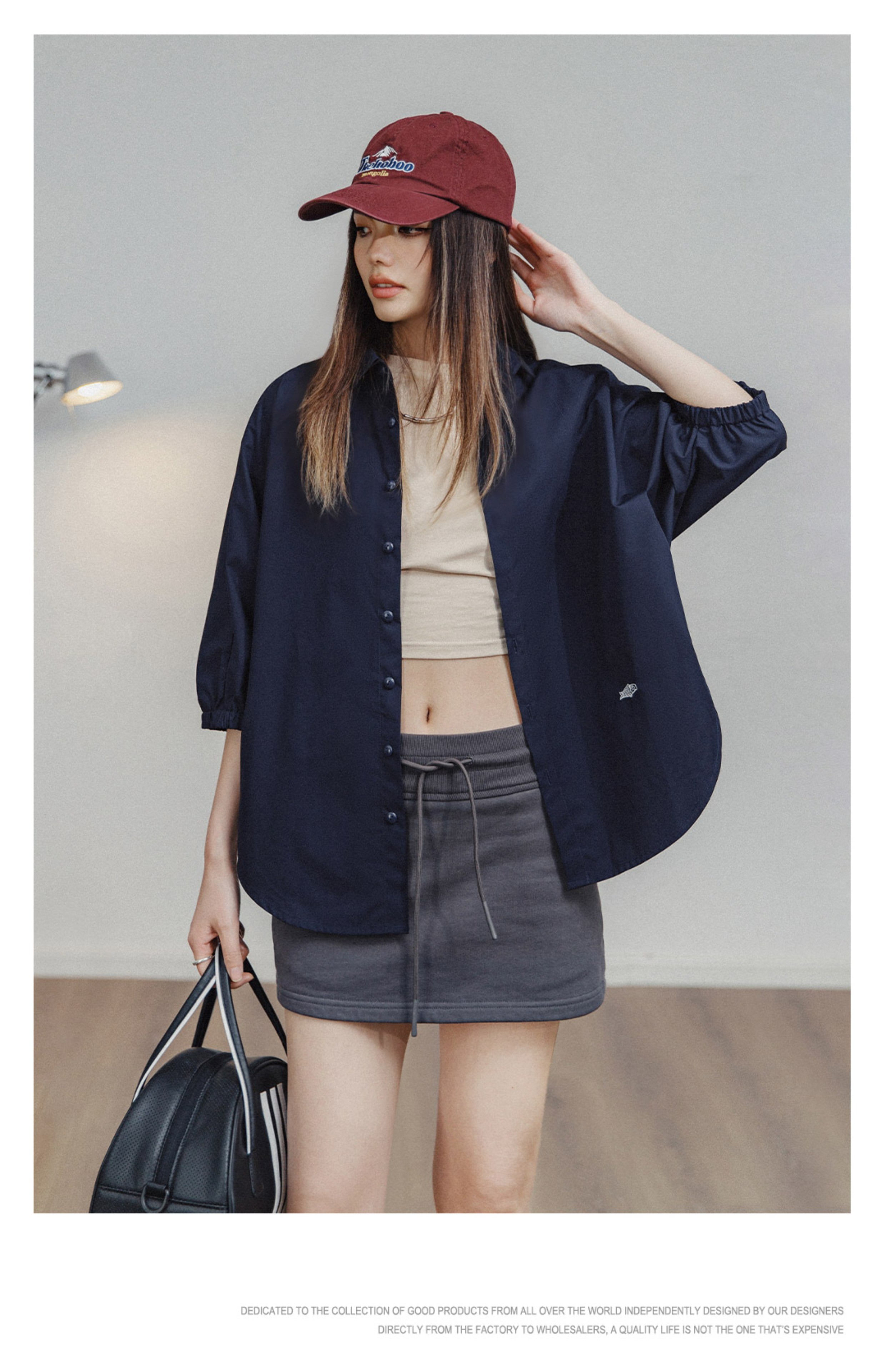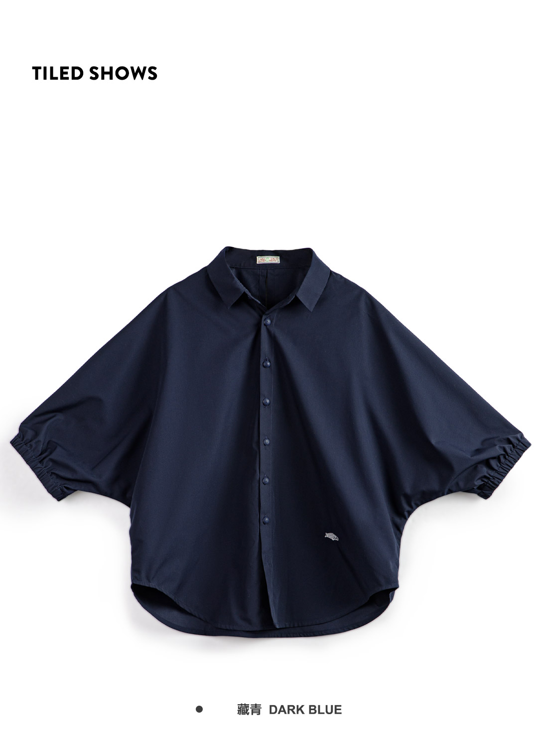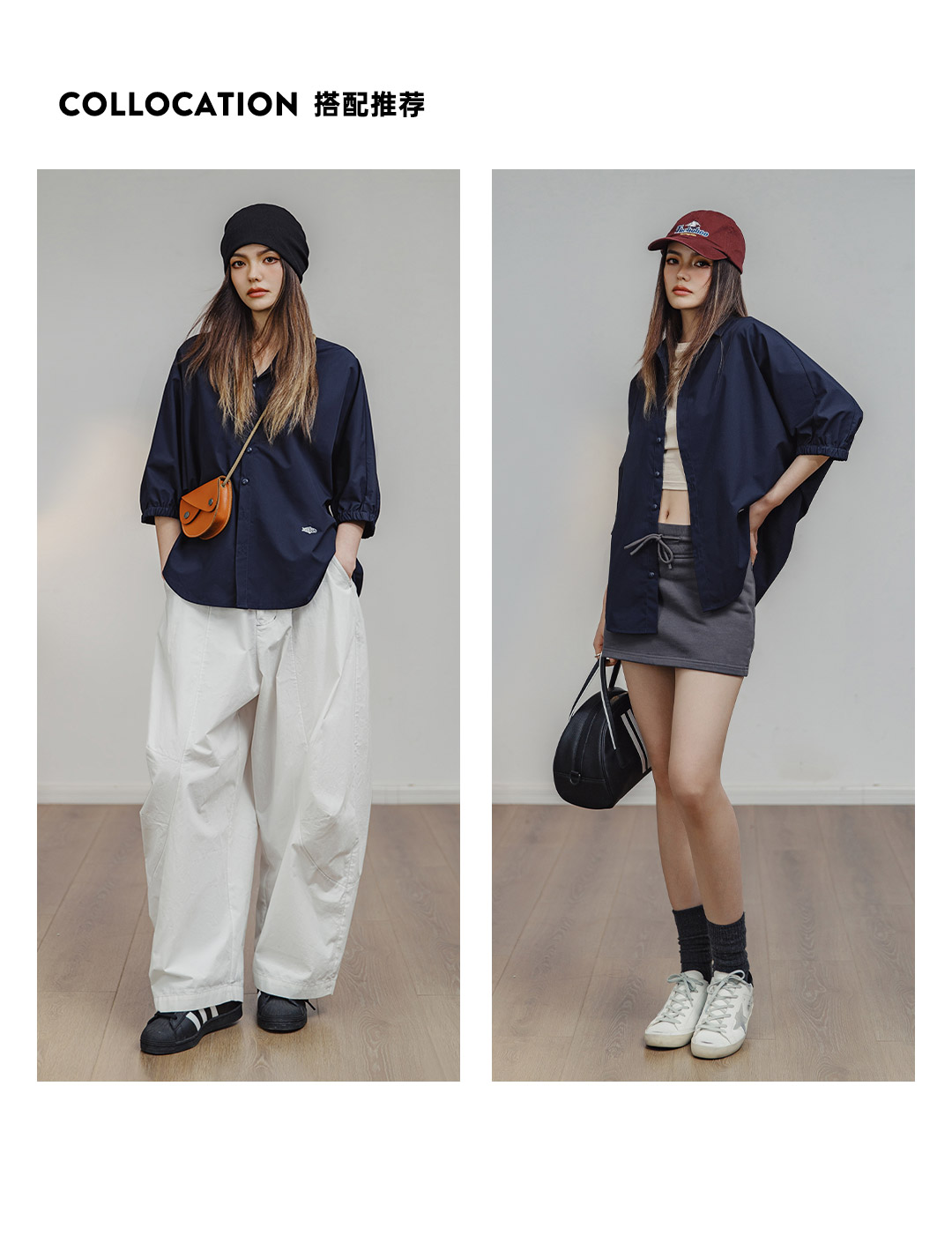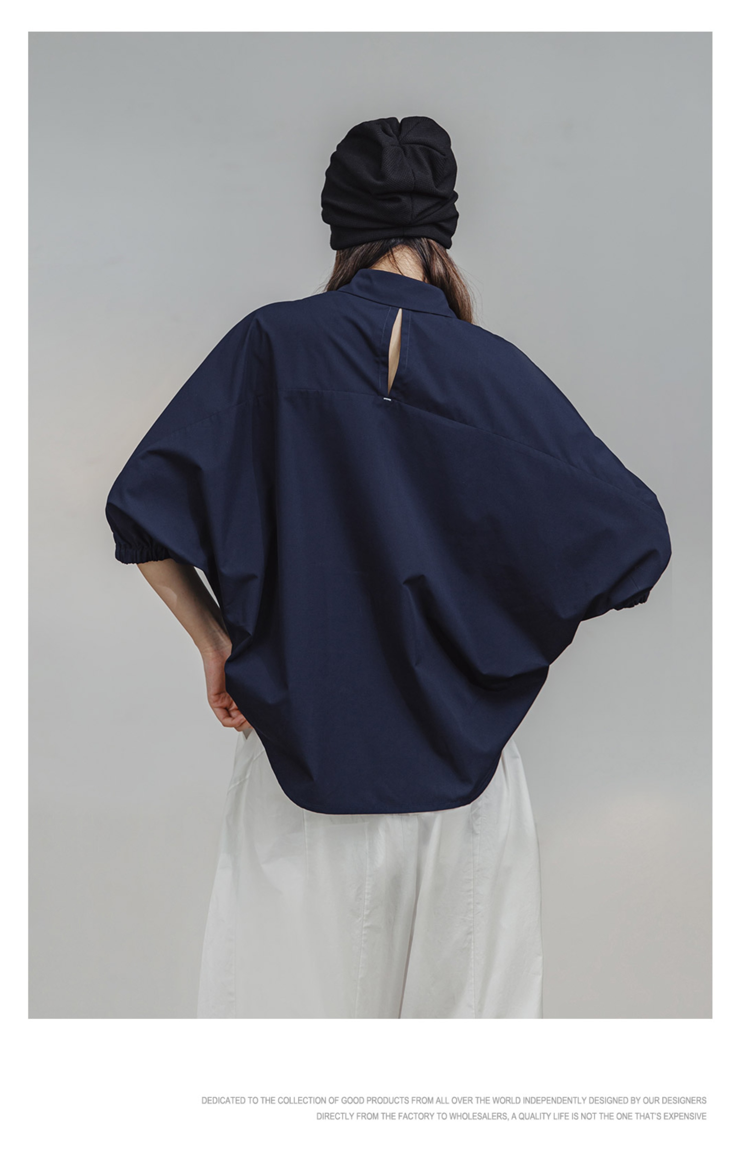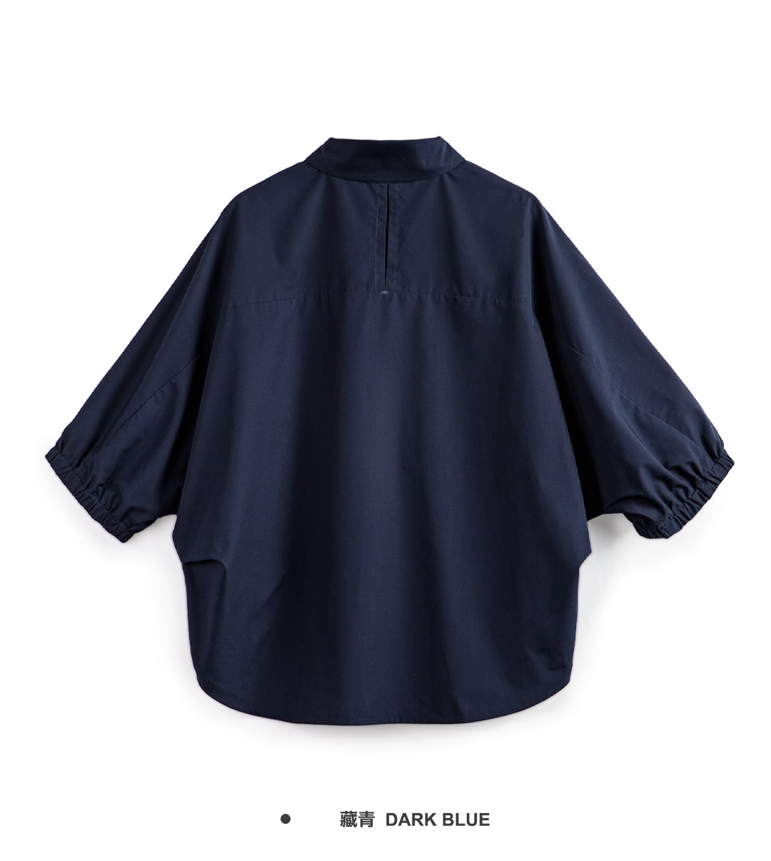 马登美式衬衫宽松上衣蝙蝠袖休闲透气立领外套可叠穿夏季女