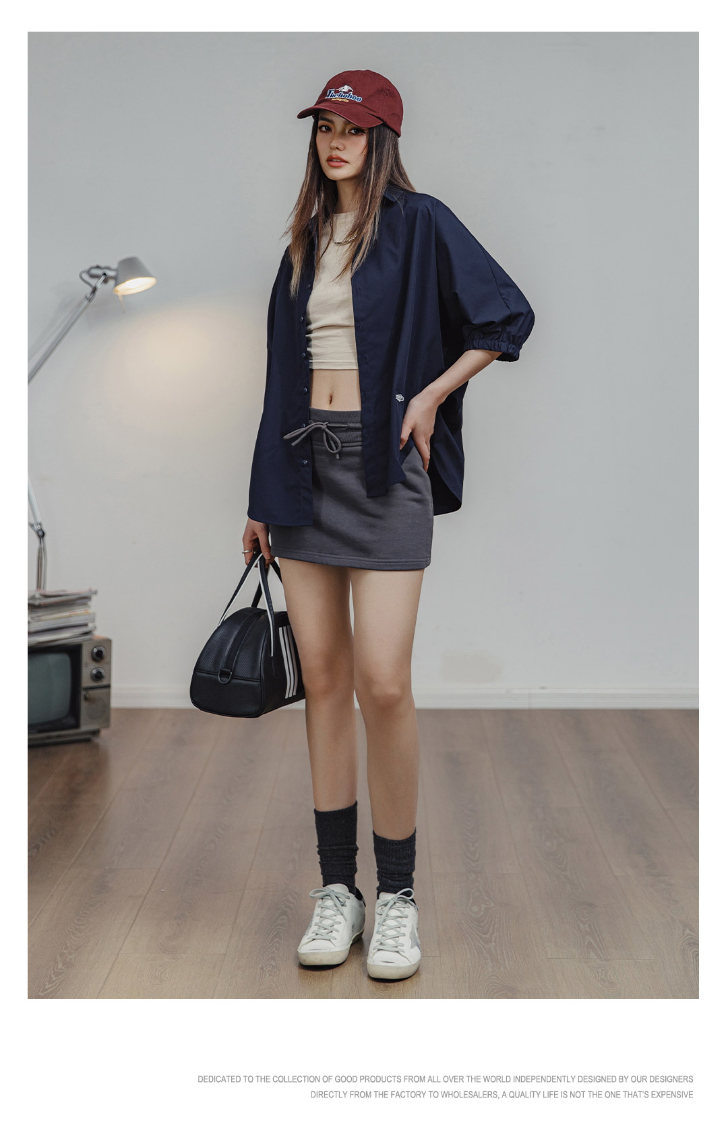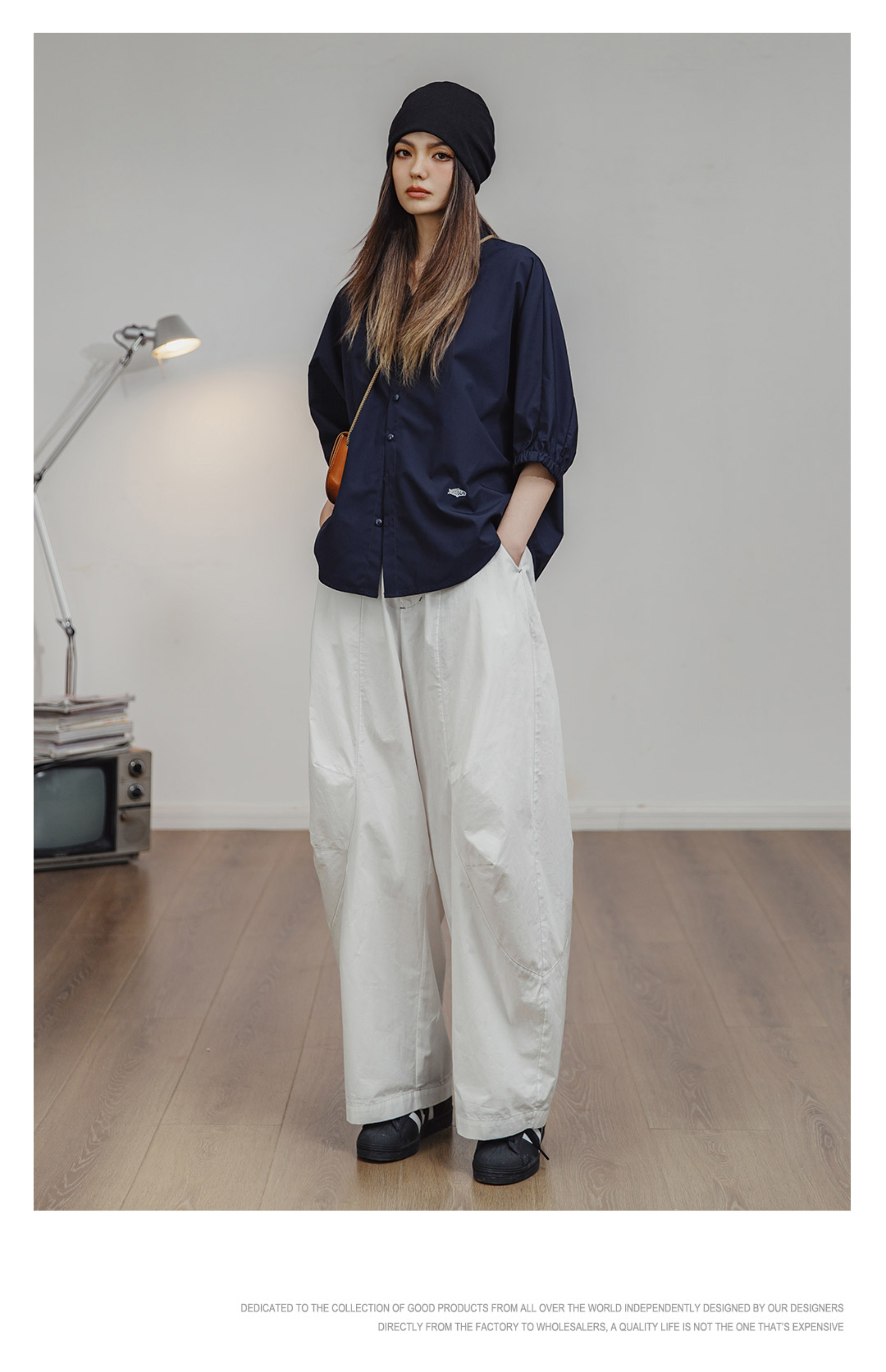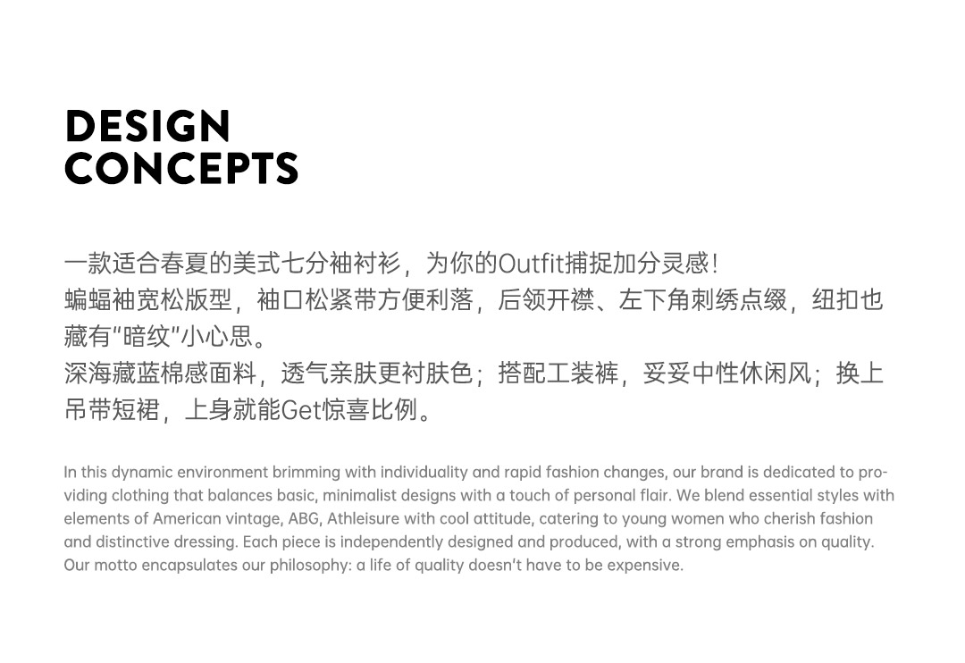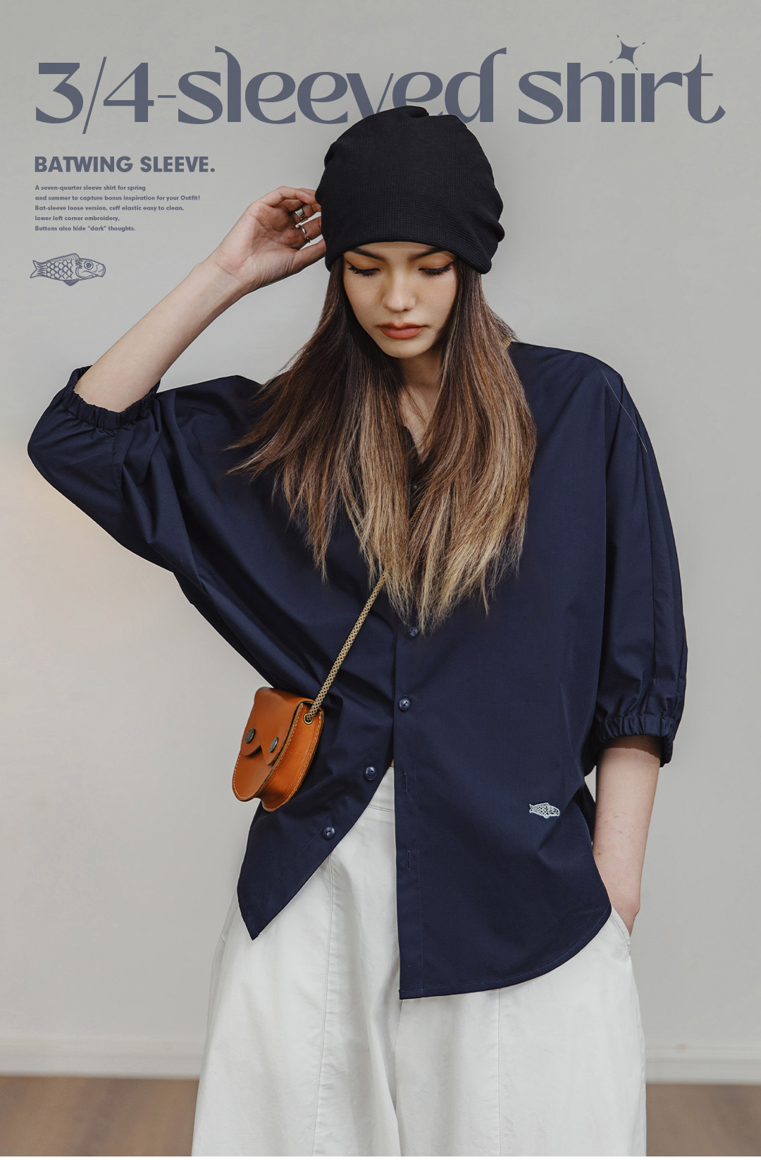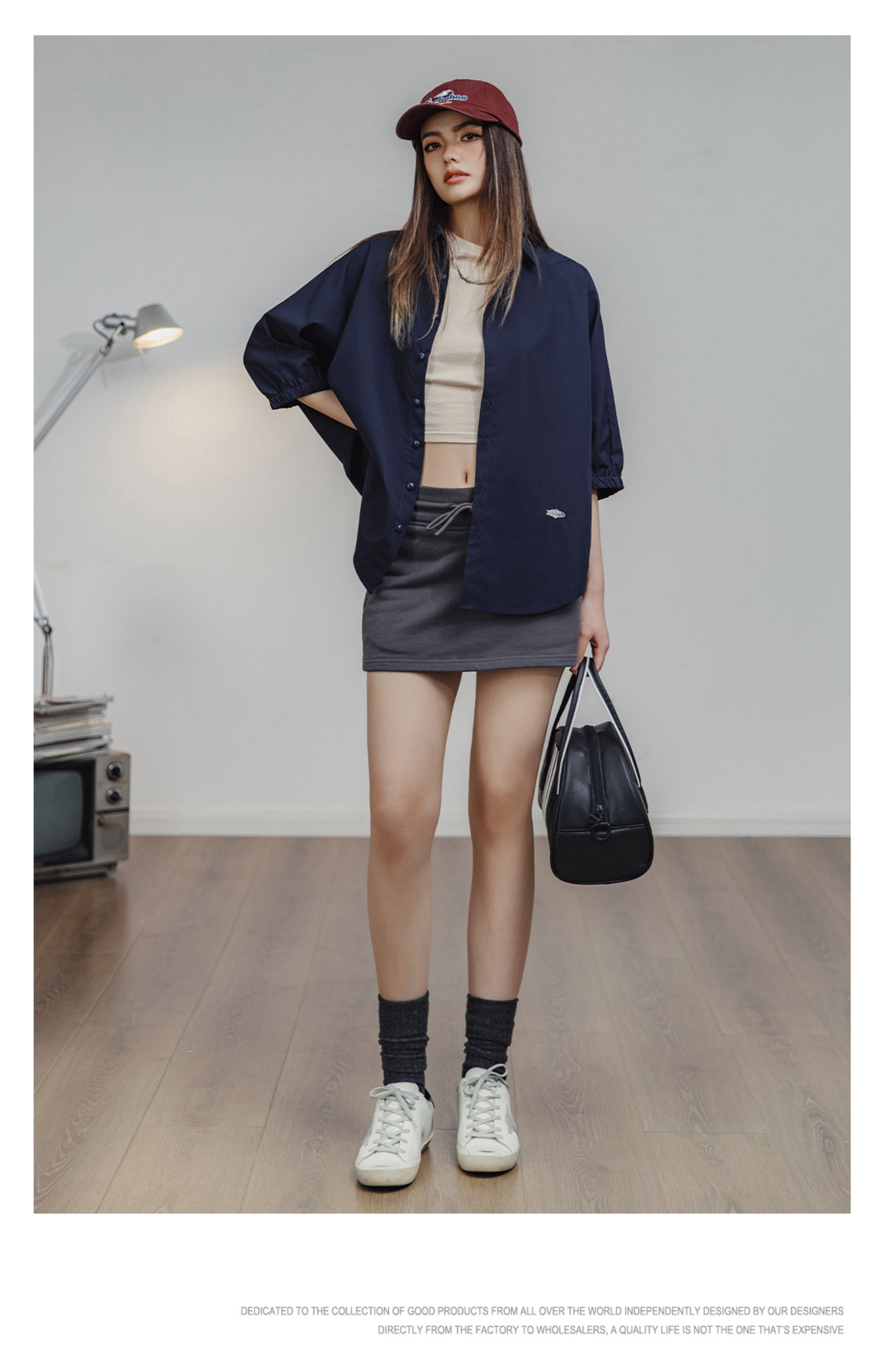 马登美式衬衫宽松上衣蝙蝠袖休闲透气立领外套可叠穿夏季女