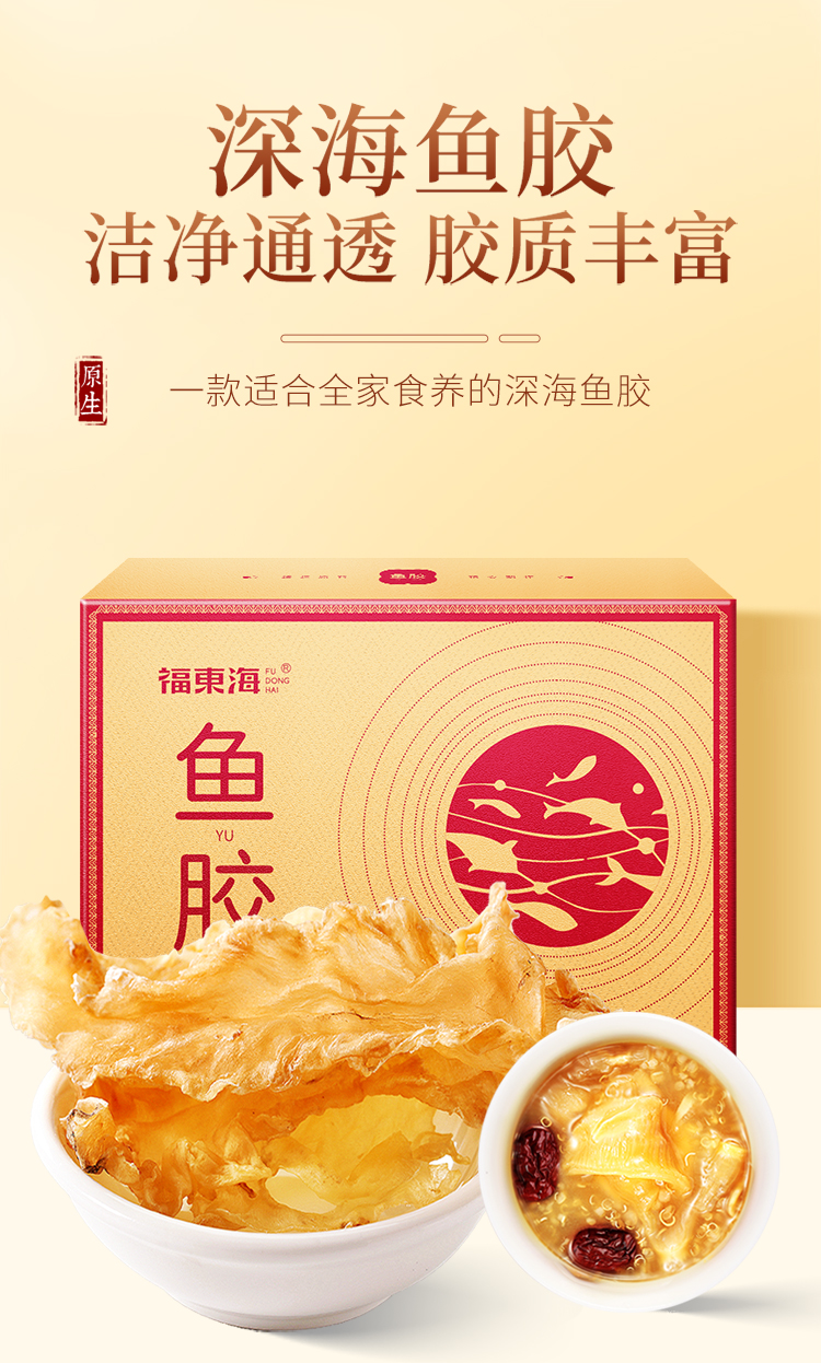 福东海 鳕鱼胶100克【200头】礼盒装 鳕鱼肚鱼鳔胶花胶鱼胶原蛋白煲汤材料 孕妇女人营养品送礼佳品