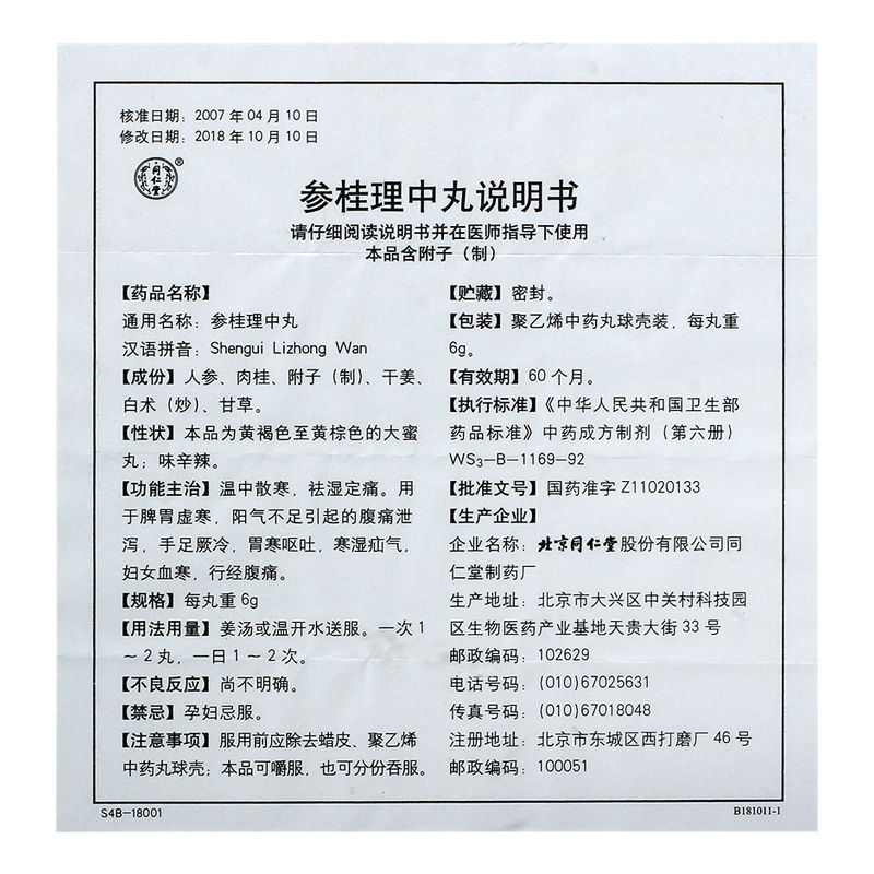 低至13.8/盒】同仁堂 参桂理中丸6g*10丸/盒 温中散寒祛湿去痛用于脾胃虚寒阳气不足引起的腹痛泄泻 妇女血寒行经腹痛