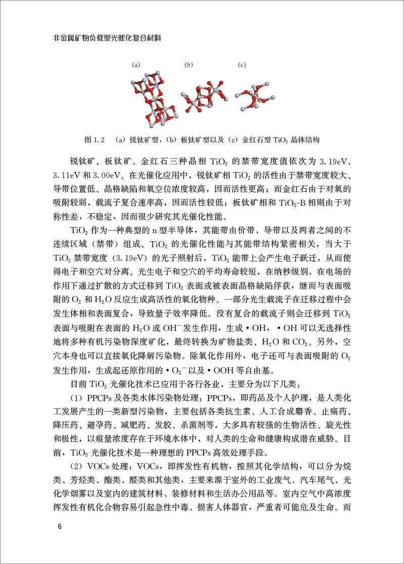 本书主要内容包括非金属矿物负载型光催化复合材料的制备工艺及原理,多孔、层状、纤维状或棒状非金属矿物负载型光催化复合材料的结构与性能及其在废水处理、室内空气污染等环境治理领域的应用基础。