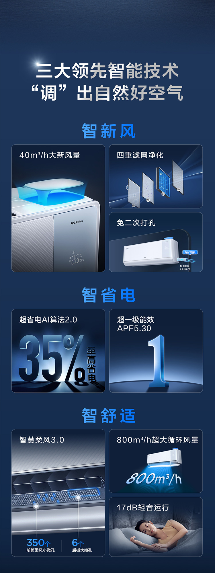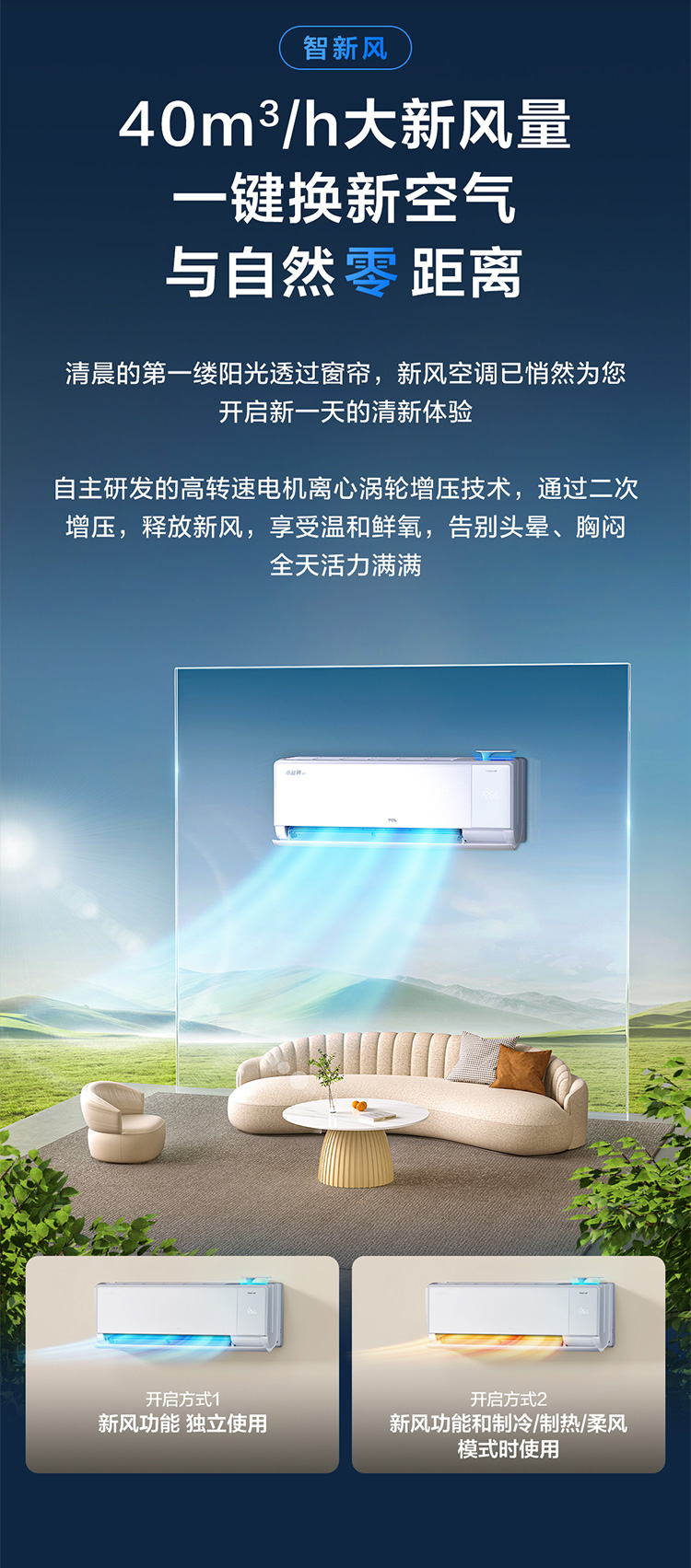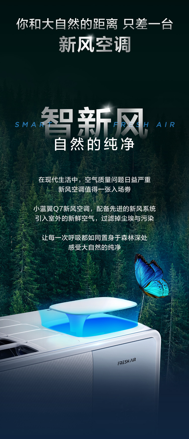 【新品上市】 1.5匹小蓝翼Q7 AI健康空调 40m³/h新风量节能冷暖新风KFR-35GW/YQ7Eb+B1